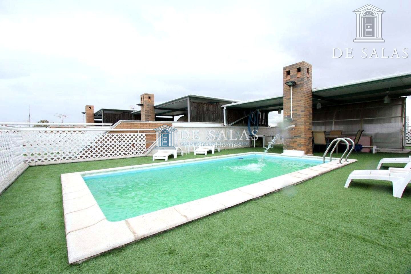 Arriba una magnifica terraza con piscina permite disfrutar de unas vistas únicas de todo Madrid.