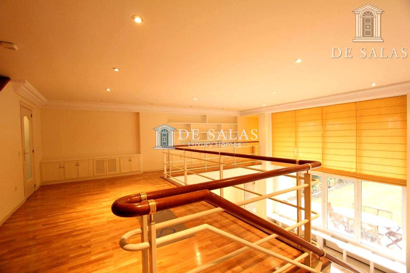 Destaca su gran salón de casi 60 metros con salida a un bonito jardín privado y su comedor a seis metros de altura que le otorga un carácter muy particular.