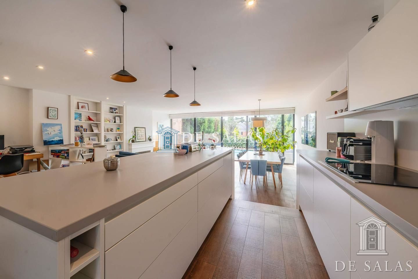 La vivienda destaca principalmente por su planta principal, ya que sus propietarios, con gran acierto, integraron la cocina con el Salón-Comedor, por lo que la luminosidad de toda la estancia y las vistas hacia el jardín y piscina, es maravillosa.