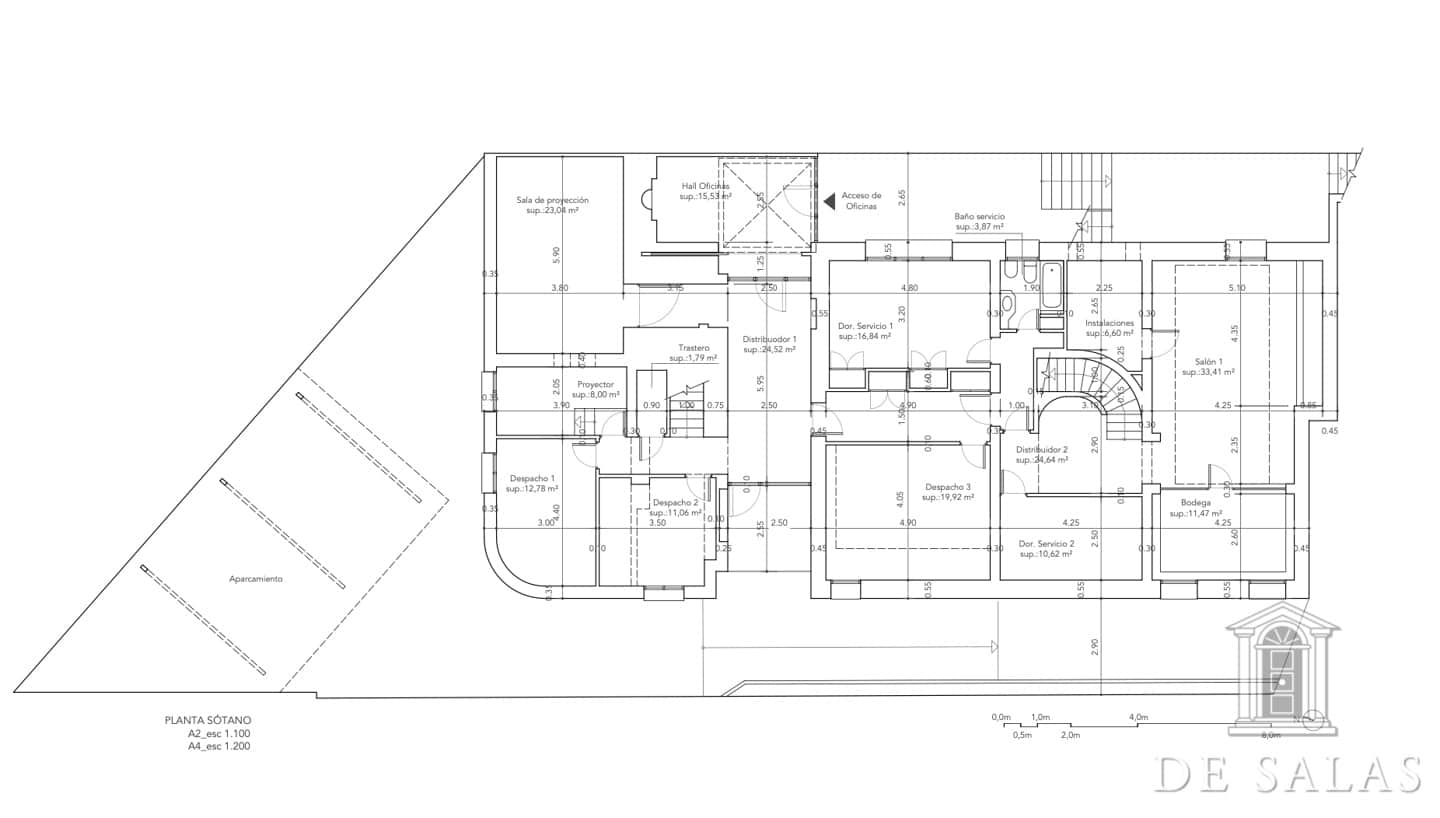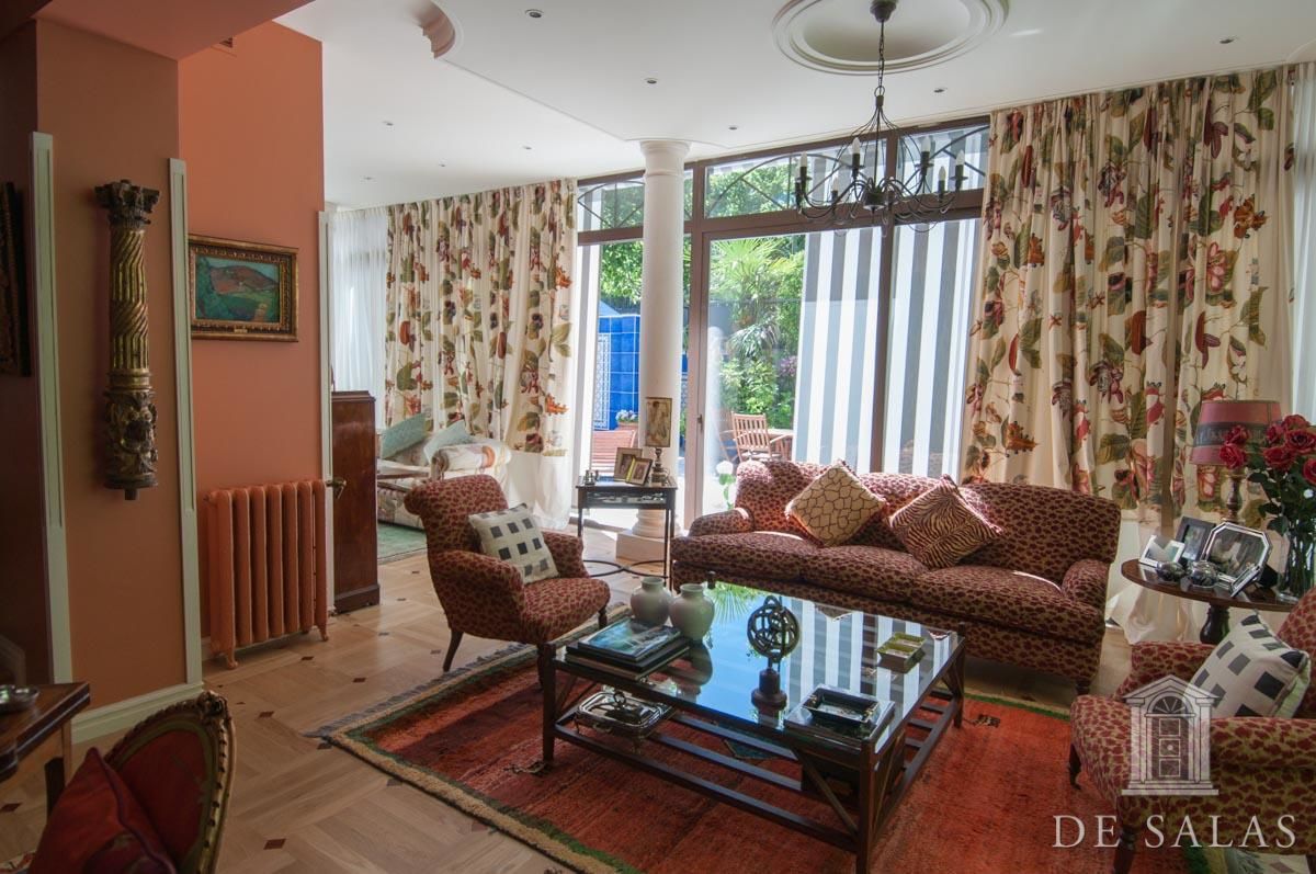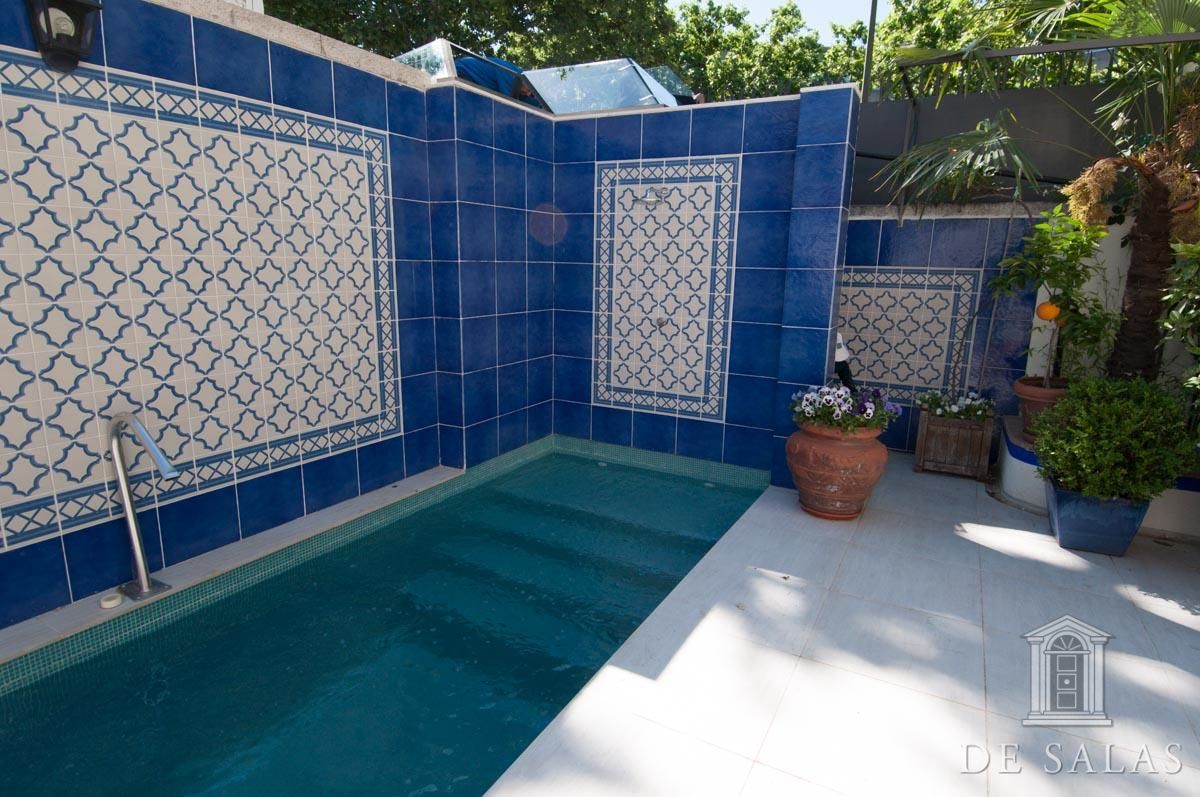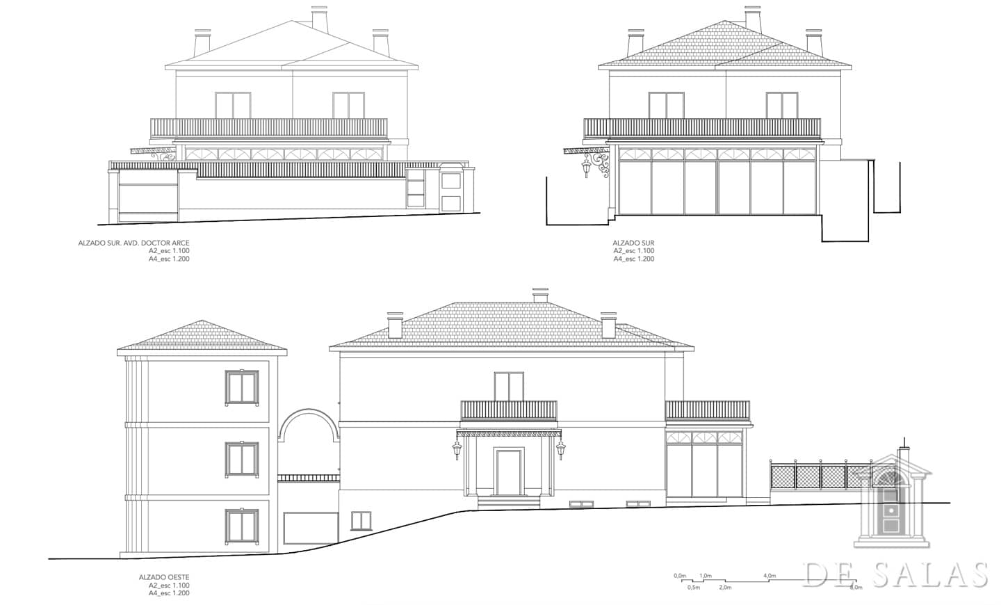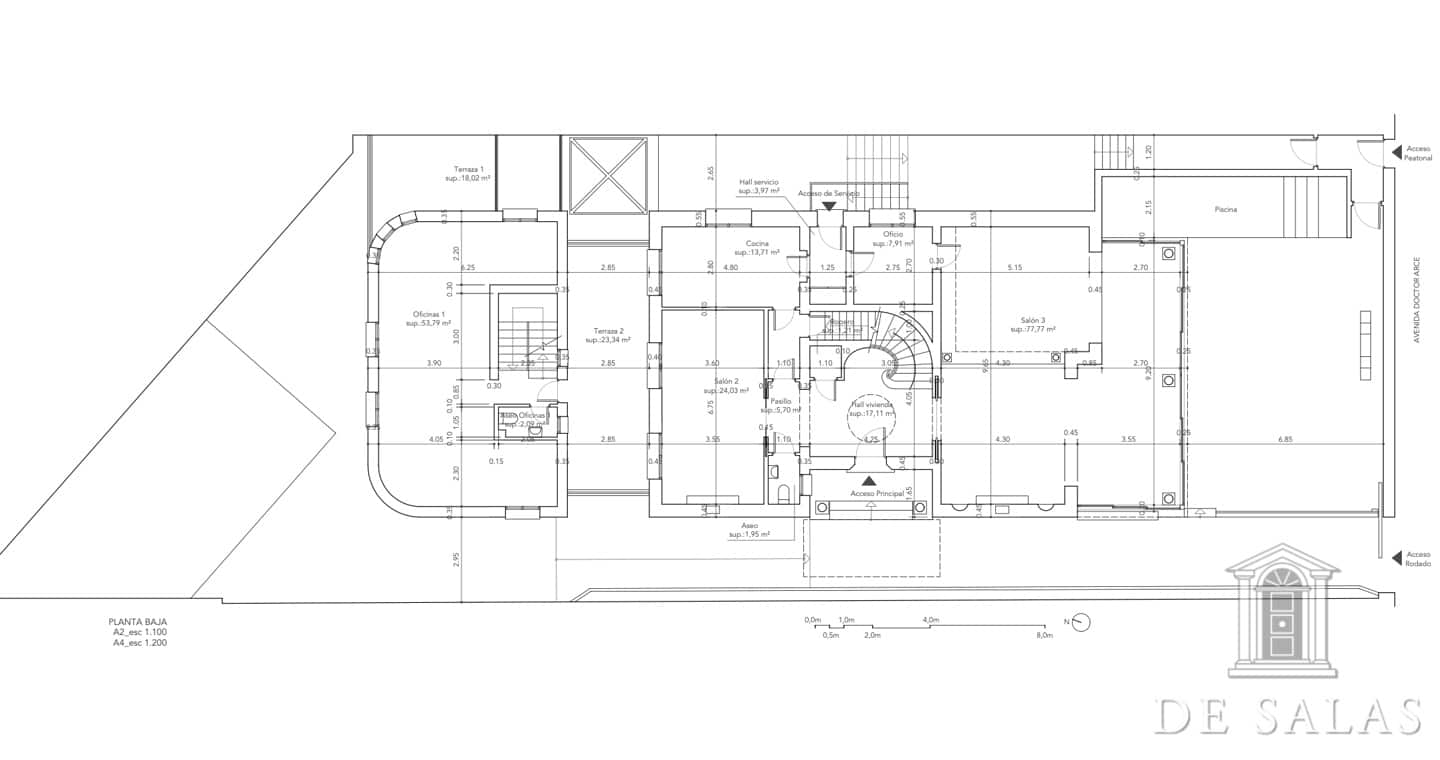 De Salas presenta este magnífico chalet en El Viso, antigua embajada, que consta de dos edificios de aproximadamente 550 m² + 300 m², unidos por una terraza interior y sótano. La parcela tiene aproximadamente 727 m2. El edificio de 550 m2 consta de 3 plantas: Planta baja, zona de servicio con dos habitaciones y un baño, lavadero y almacén trastero, bodega climatizada, gran salón de juegos y amplia habitación. La planta principal, antigua residencia del embajador, se accede por una puerta protegida con dos columnas de mármol, vestíbulo distribuidor, dónde nos encontramos una escalera señorial de grandes dimensiones que nos da acceso a la planta superior. Además, consta de baño de cortesía, despacho con salida a una amplia terraza, salón de grandes dimensiones, más de 100 m2, con salida a una terraza cubierta con comedor de verano y piscina. Además cuenta con un comedor principal y cocina con acceso por una escalera a la bodega climatizada. La planta superior se distribuye en un amplio distribuidor, dormitorio principal en suite con chimenea y vestidor con amplia terraza, además de otros tres dormitorios de grandes dimensiones. El segundo edificio de 300 m2 aproximadamente, está unido a la antigua residencia por una terraza y tiene acceso por el sótano. Dispone de tres plantas de oficinas totalmente acondicionadas, dos aseos y una sala cine profesional con aforo para veinte espectadores. Consta de preinstalación para el cambio de dichas oficinas por cuatro habitaciones con baños en suite, siendo la planta de abajo un gran salón y la sala de cine profesional. La propiedad, tiene chimeneas, varias terrazas, jardín, piscina, salón de juegos y amplia zona de garajes.