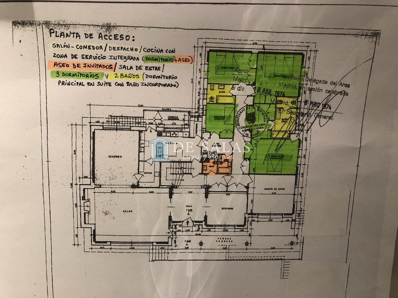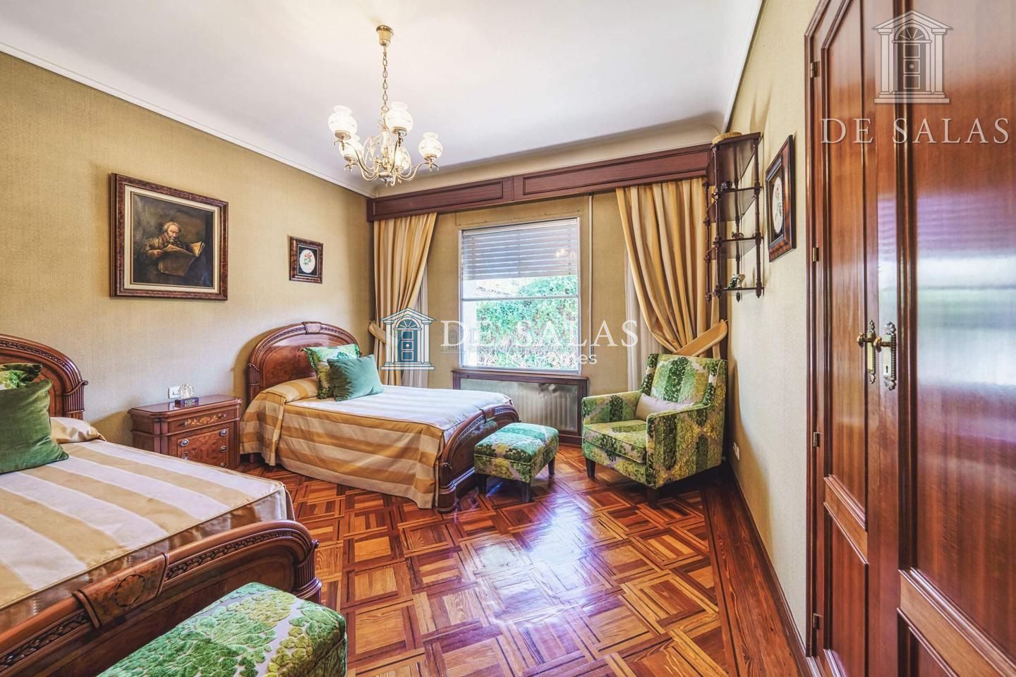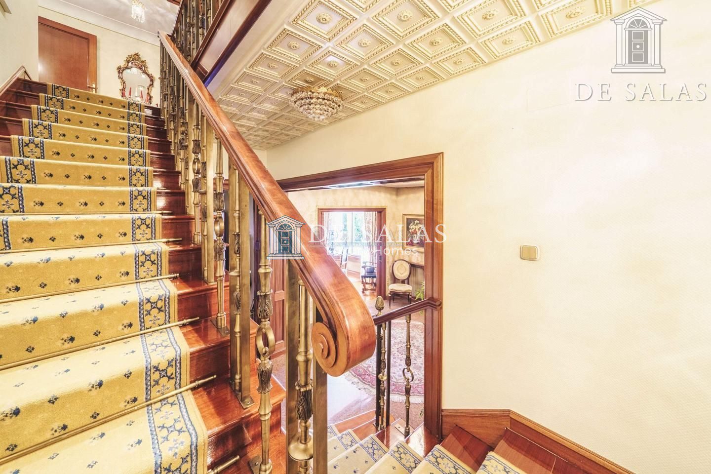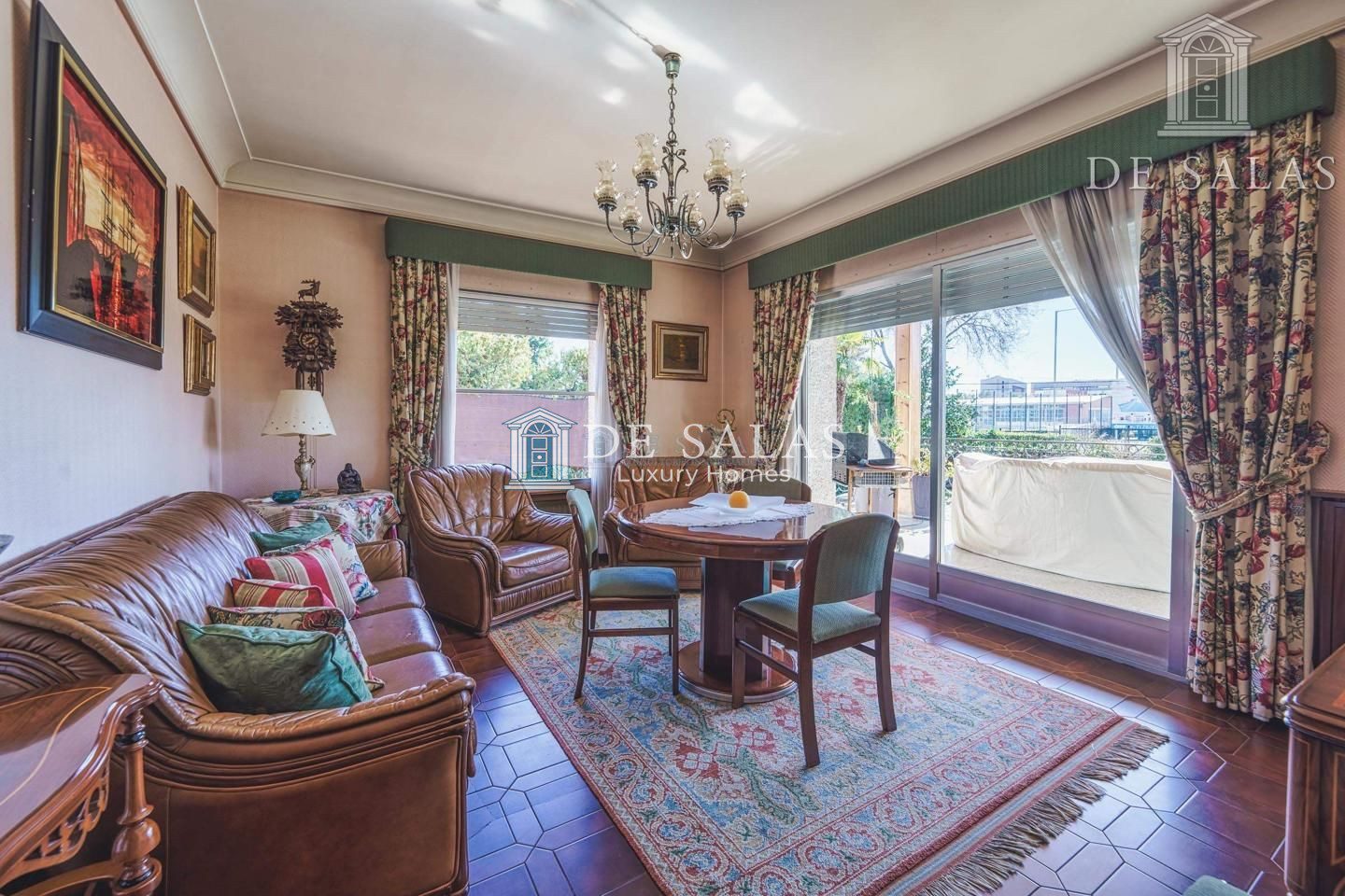 Un maravilloso despacho es lo primero que vemos al entrar a uno de los dos lados del recibidor. Al otro, un gran salón con chimenea que conduce a un comedor independiente con acceso directo a la cocina.