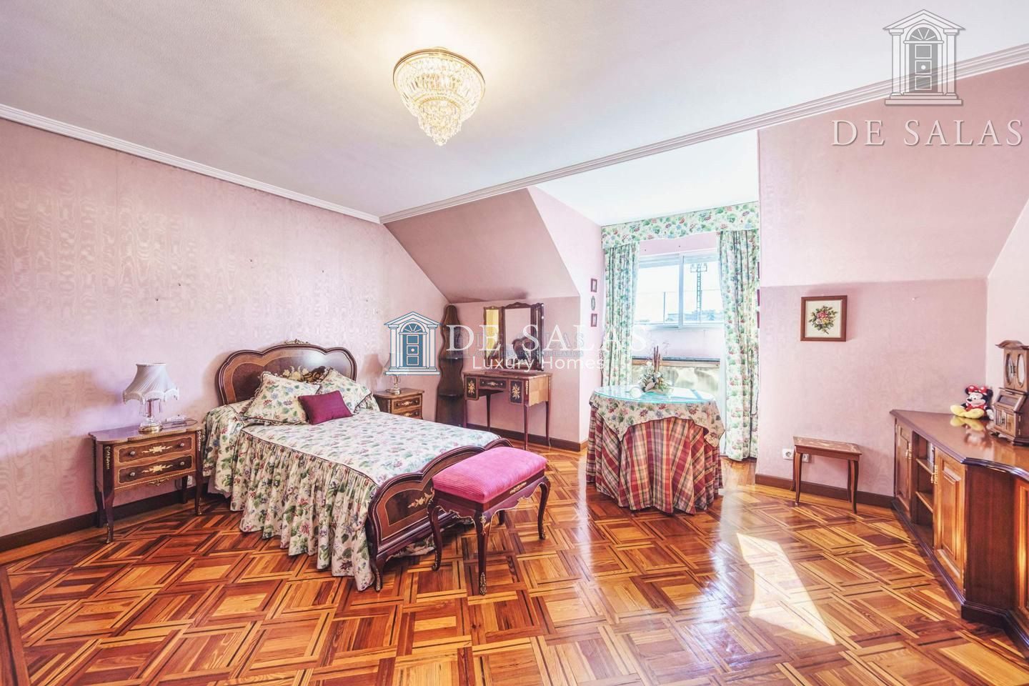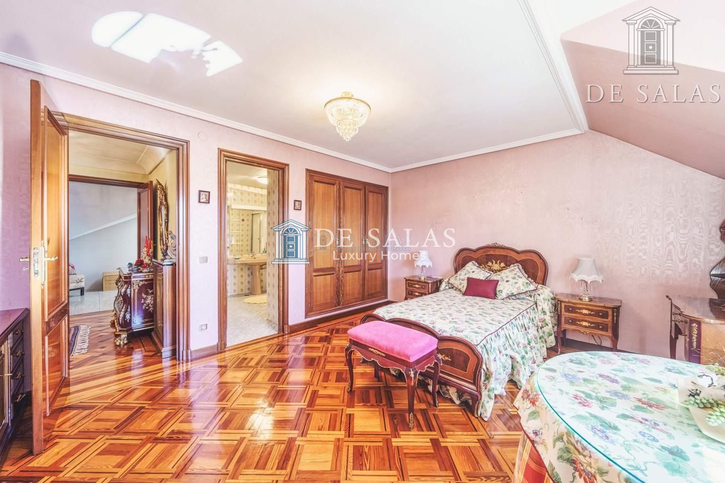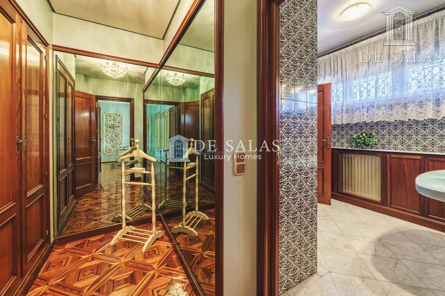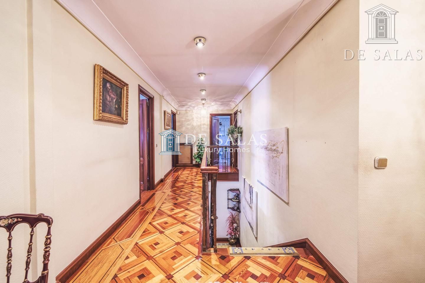 En el otro lado del hall se encuentra un gran pasillo con armarios empotrados por el que discurren los dormitorios. El principal tiene armarios empotrados y un vestidor, además del cuarto de baño en suite con lavabo de doble seno y wc separado del resto del baño.