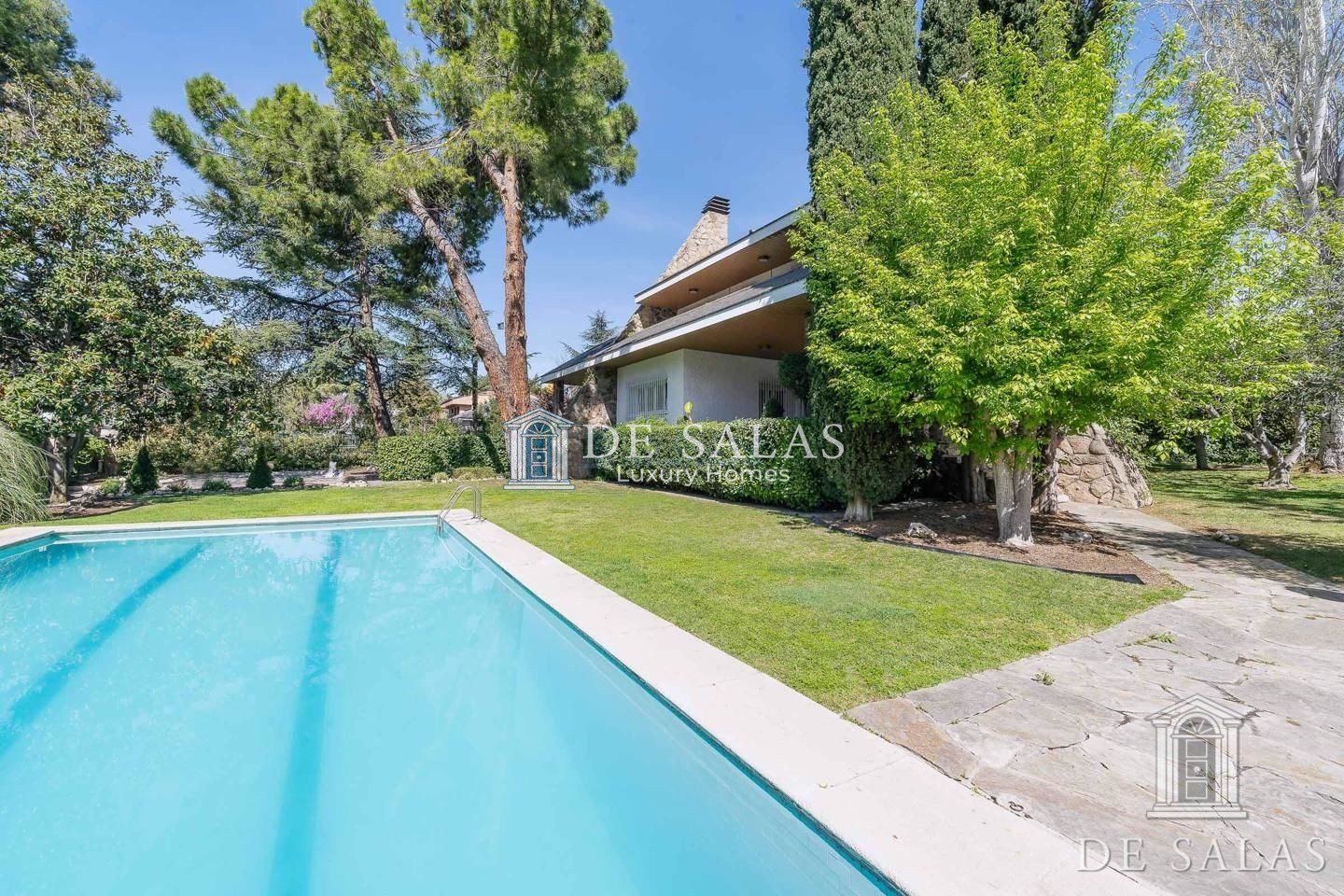 DE SALAS LUXURY HOMES Ref. MAV02612 presenta uno de los chalets más representativos del parque del conde de Orgaz, con una magnífica parcela de más de 1.600m2, muy llana, perfectamente cuidada y con una arboleda muy consolidada, además de una gran piscina y un espacio destinado a zona infantil. Es una construcción muy sólida, con grandes espacios y muy buena distribución: