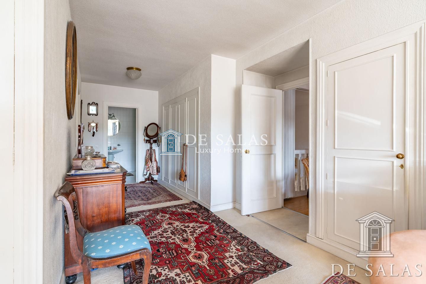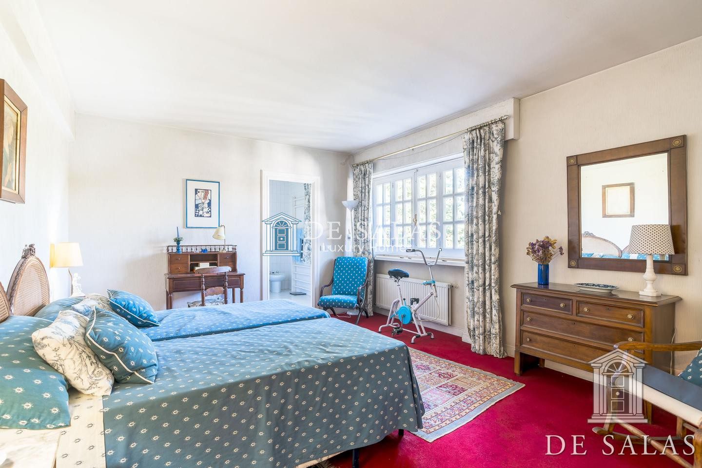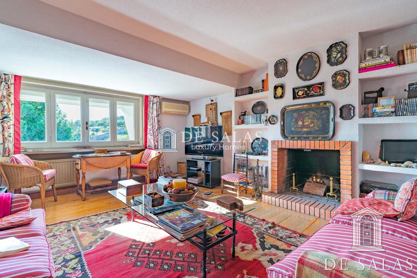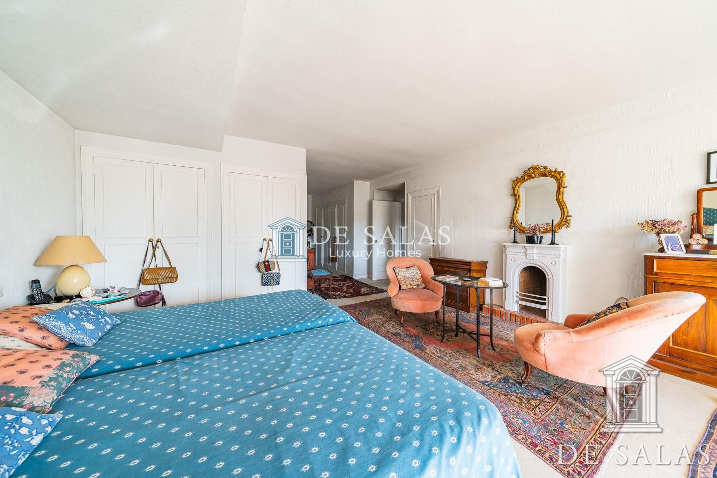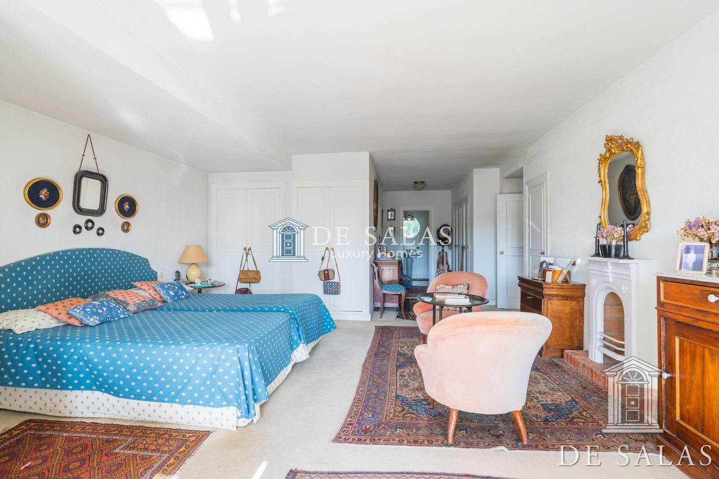 En la primera planta, una amplia zona de estar con chimenea da distribución a los 4 dormitorios, todos ellos con baños completos tipo suite y amplios armarios.