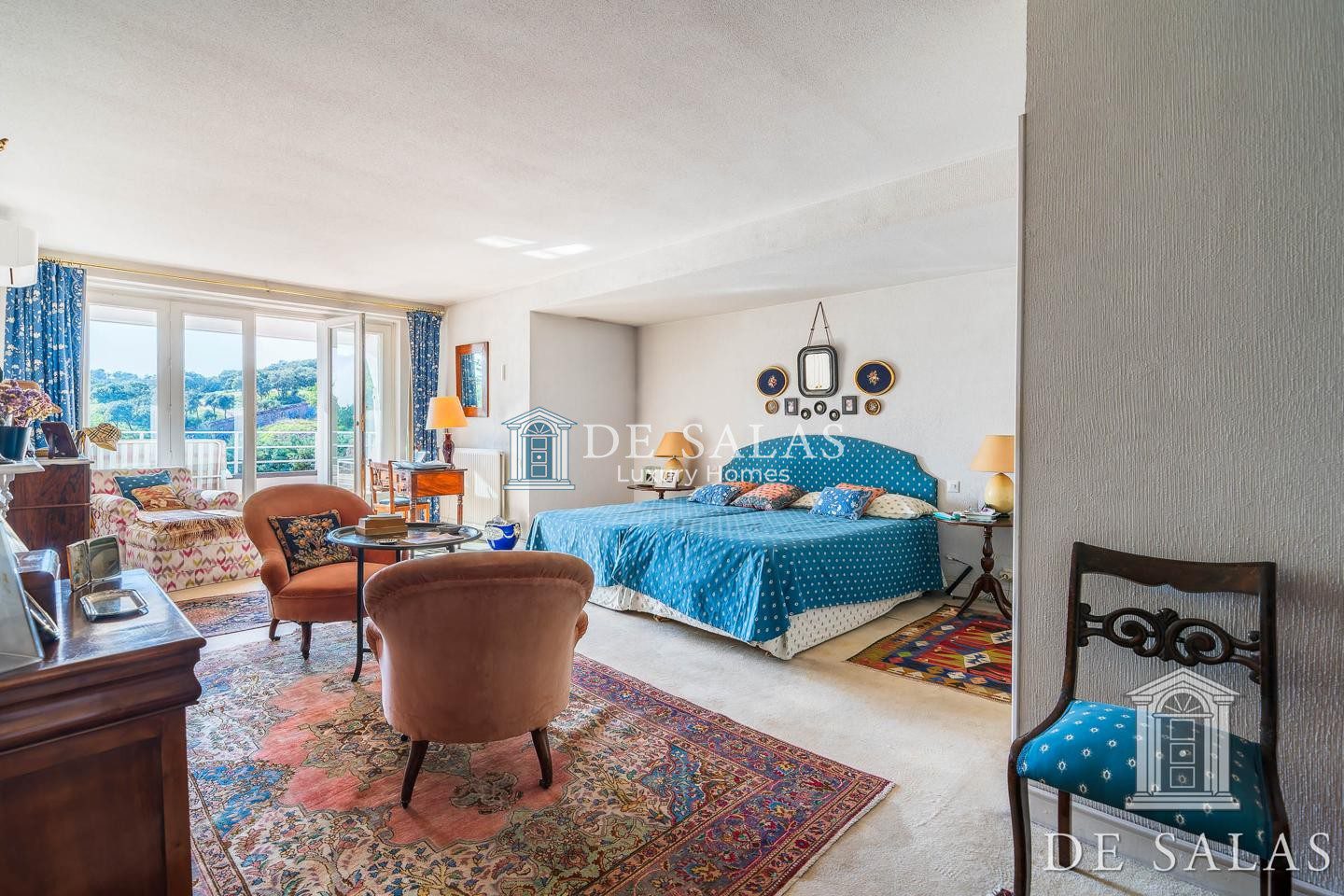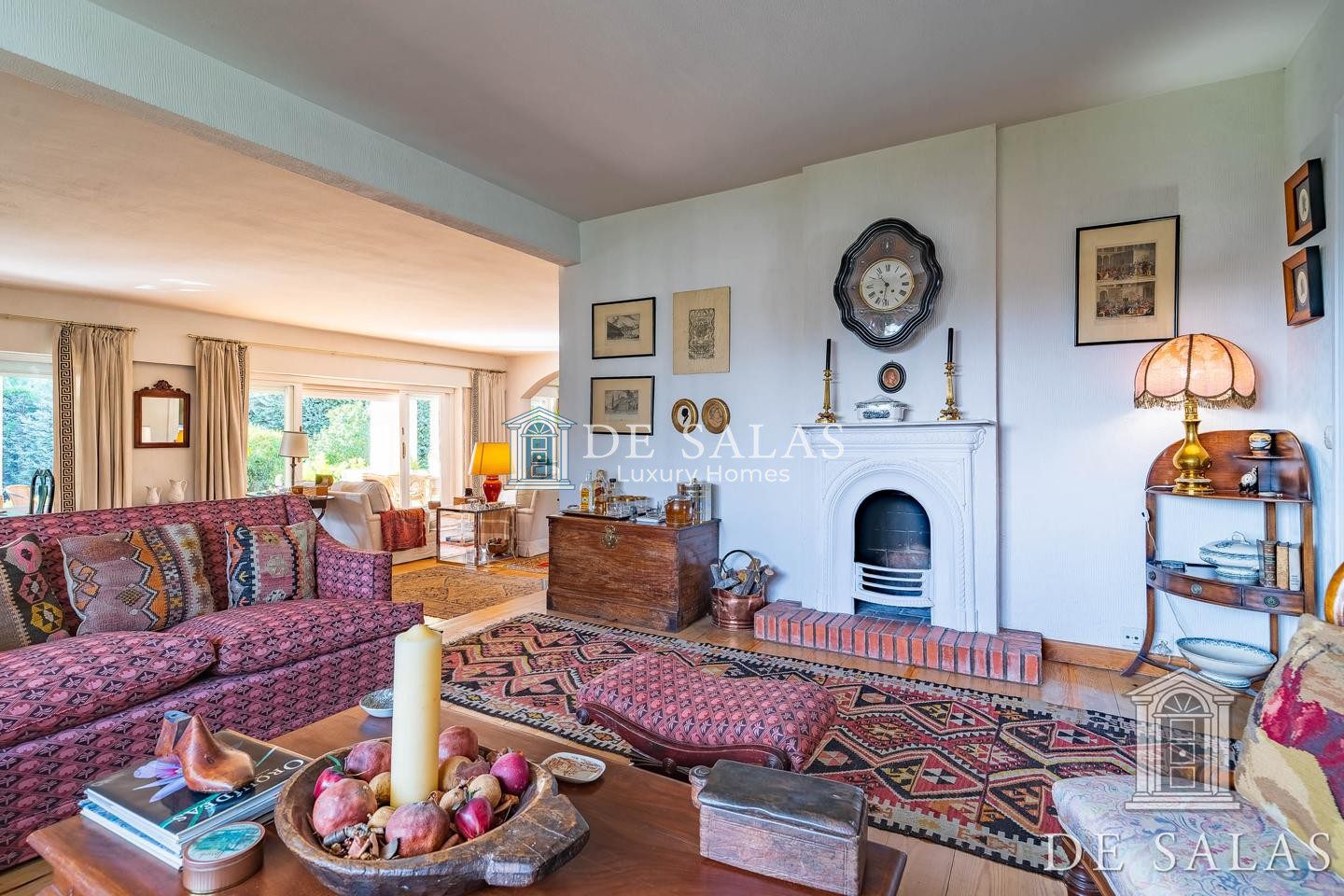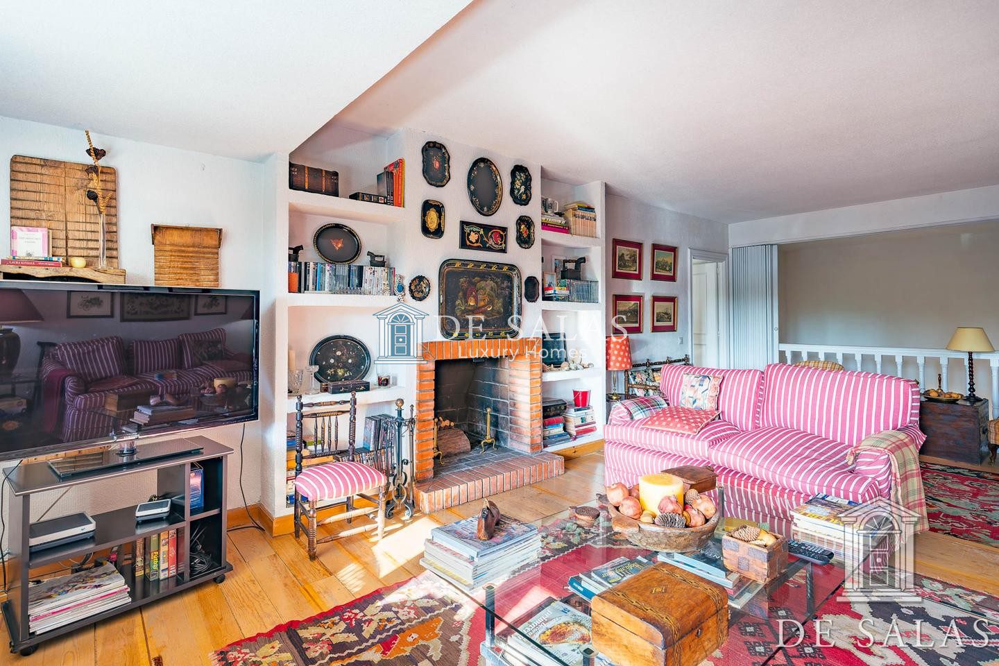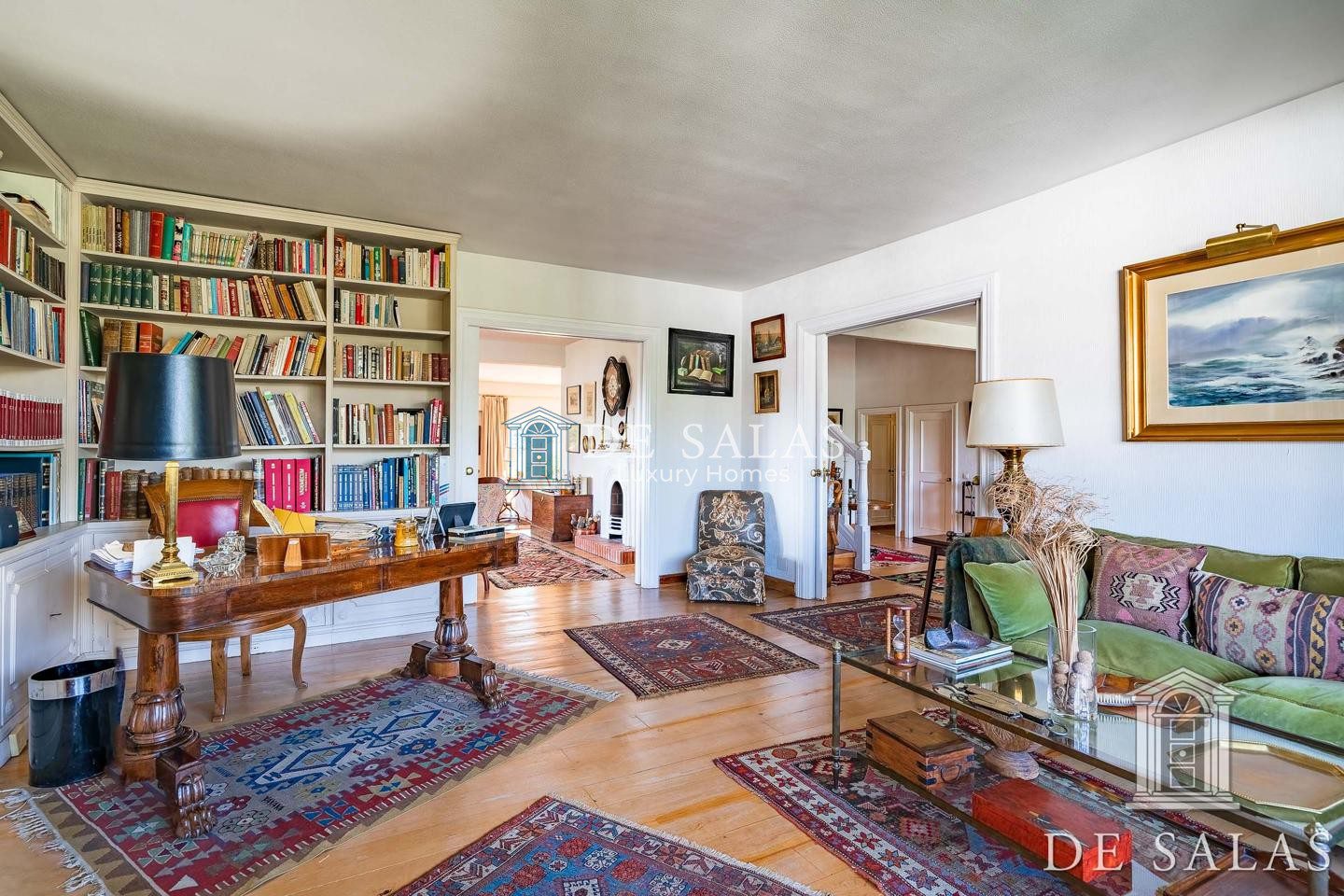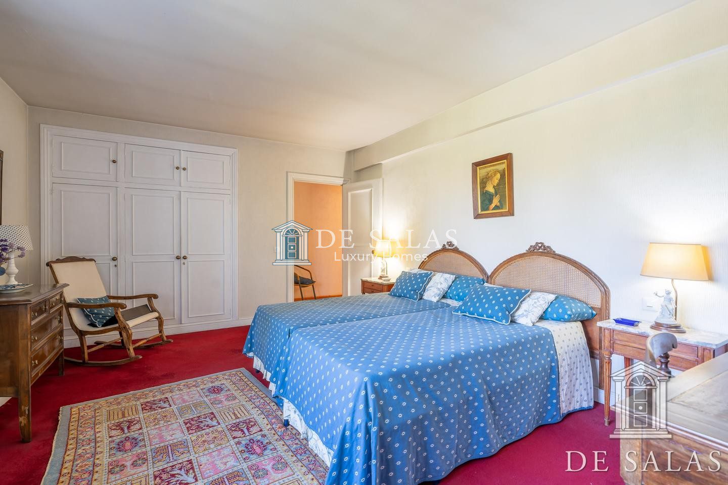 En la primera planta, una amplia zona de estar con chimenea da distribución a los 4 dormitorios, todos ellos con baños completos tipo suite y amplios armarios.