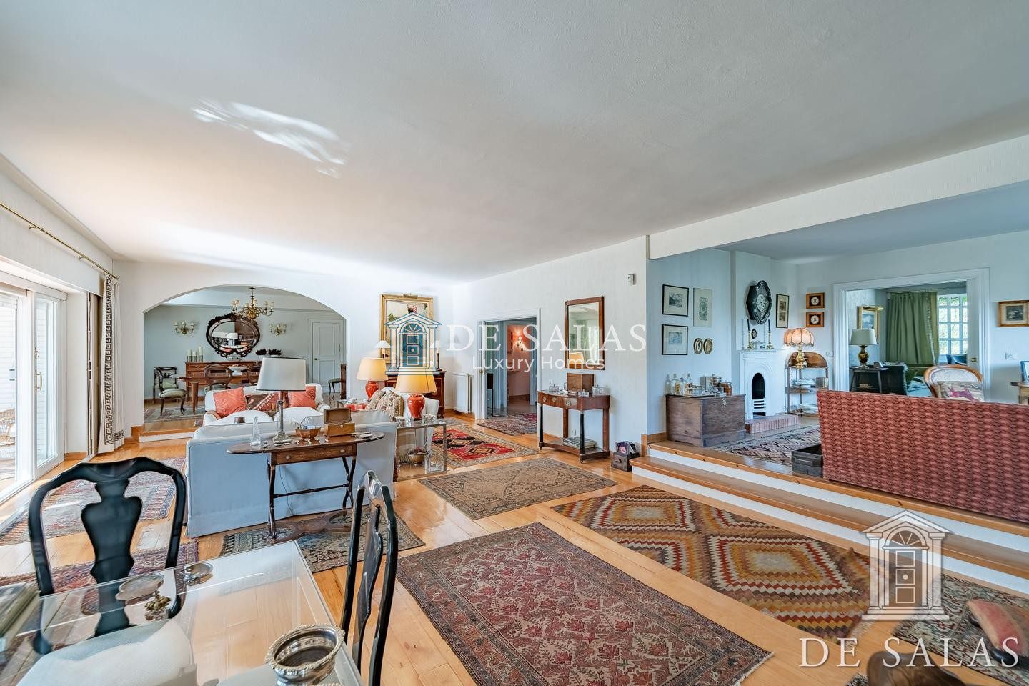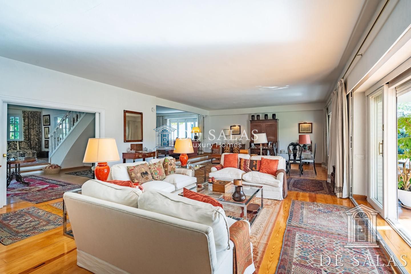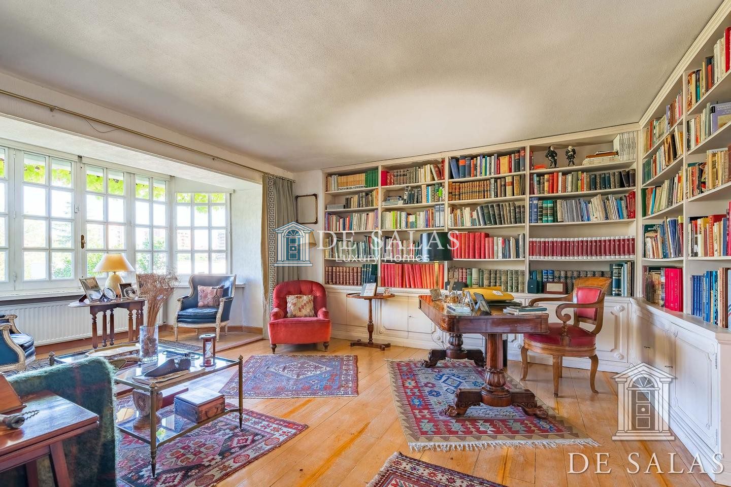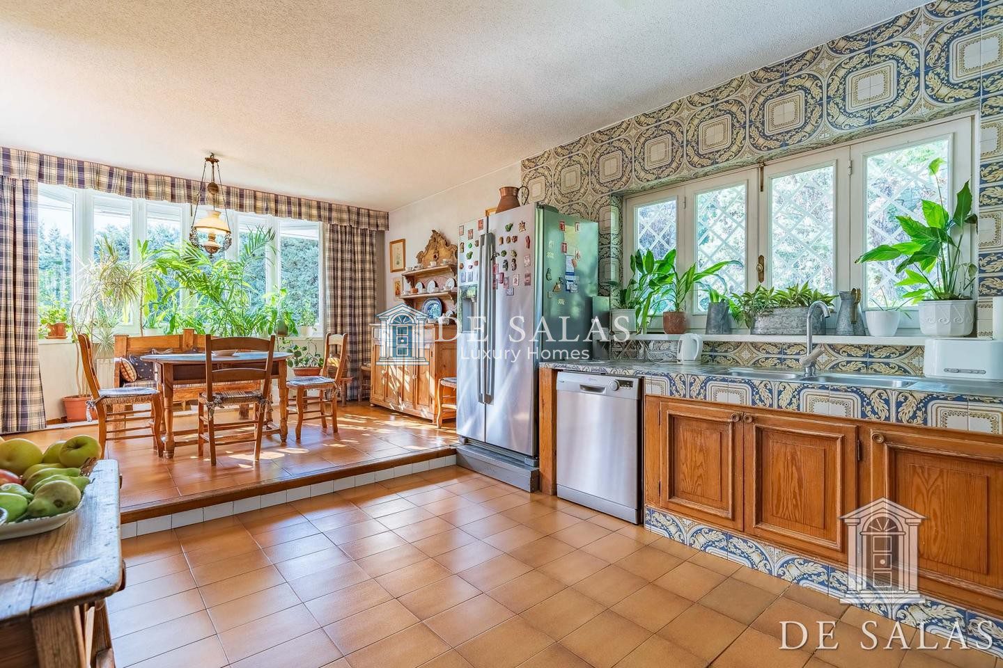 En la planta baja, accedemos a un gran hall de entrada completamente abierto al salón, que se distribuye en 3 ambientes diferenciados entre zonas de descanso y zona comedor, con chimenea, grandes ventanales y acceso directo al porche y al jardín. En la misma planta se dispone de un bonito despacho con biblioteca, aseo de cortesía, cocina y zona de servicio.