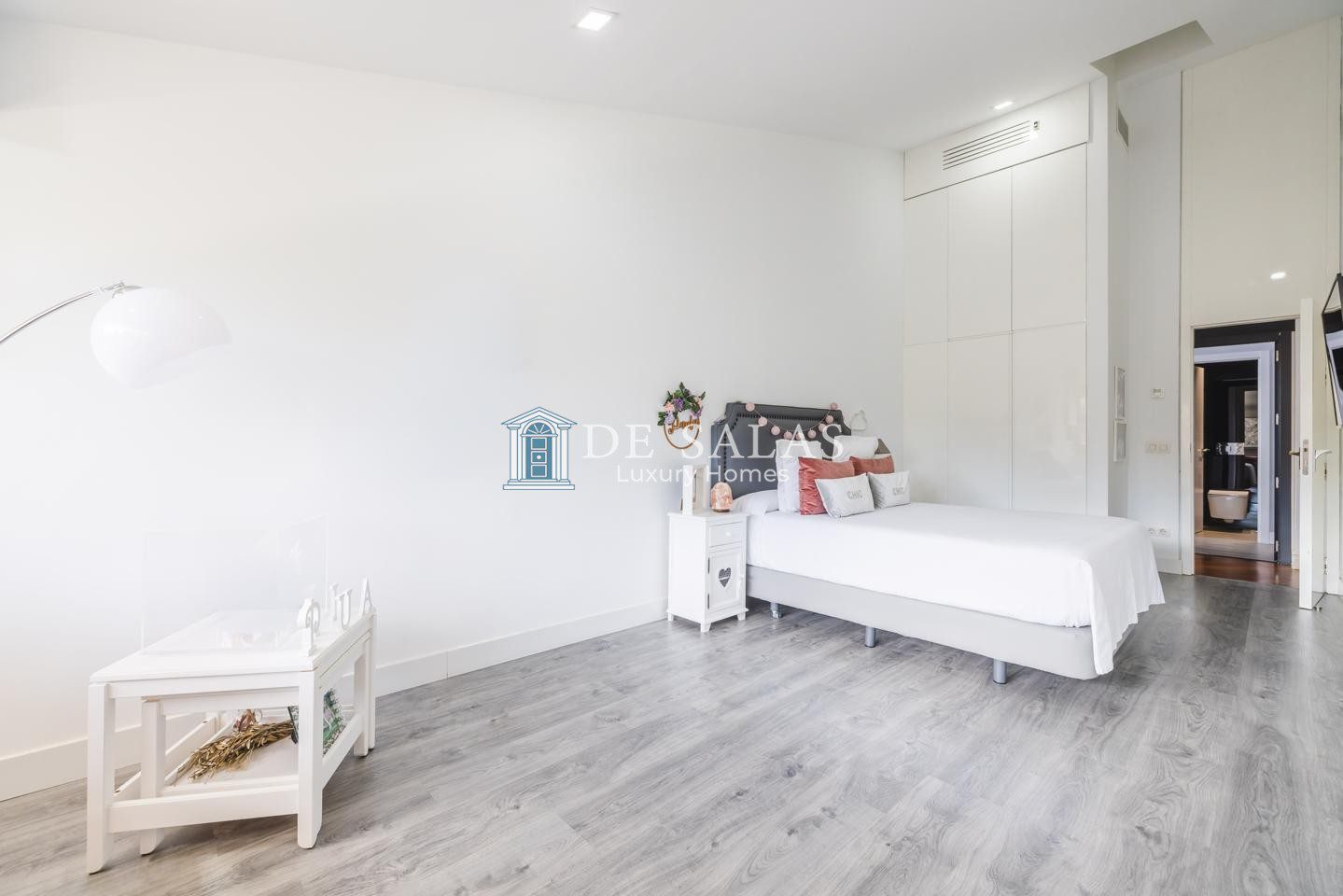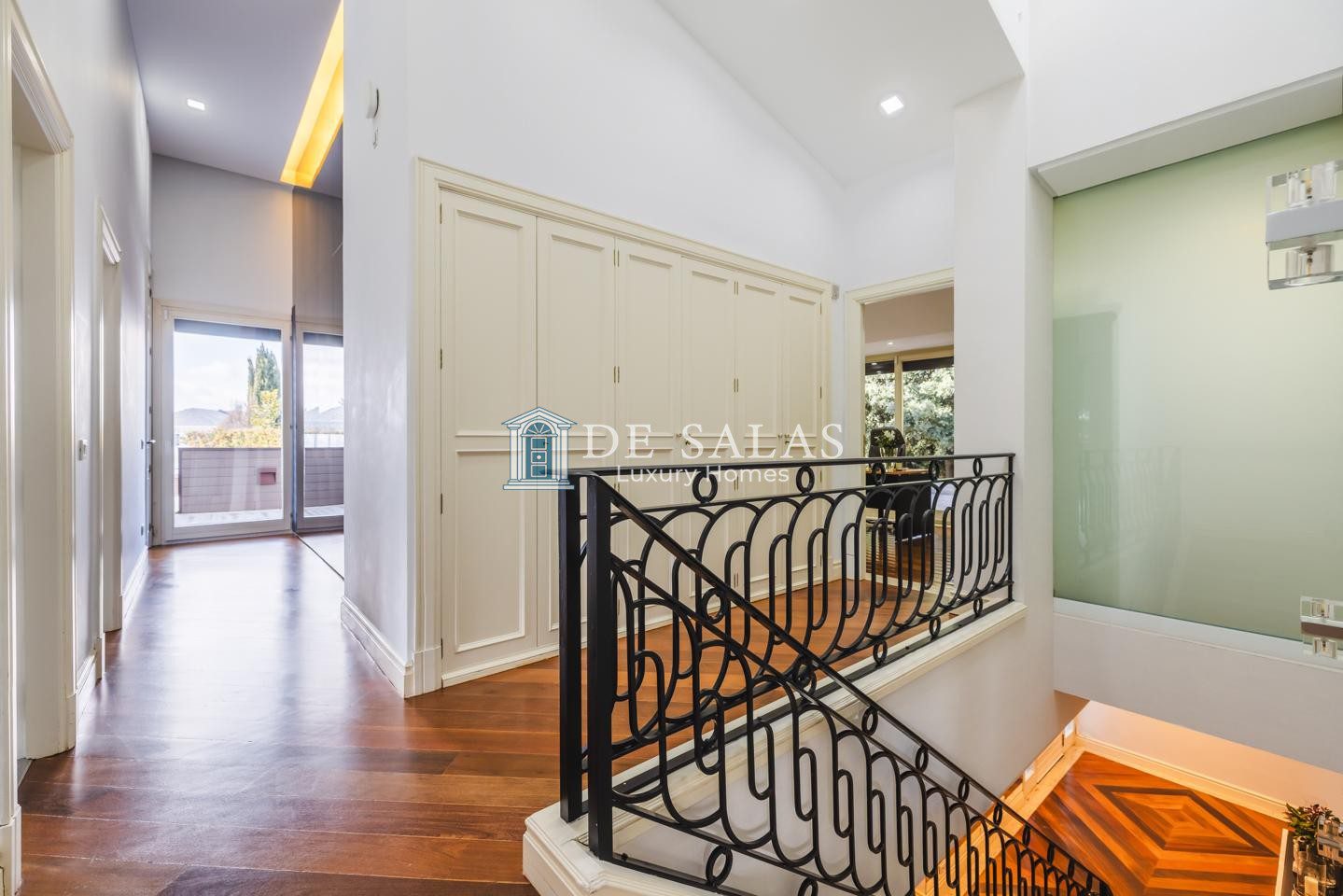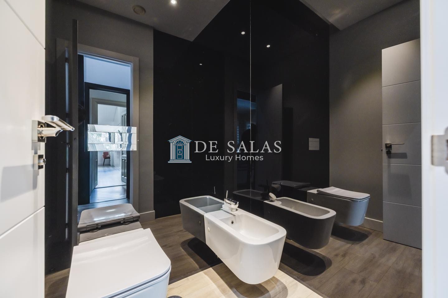 En la primera planta se encuentran tres dormitorios de ensueño con baño en suite, con una suite principal con chimenea de grandes dimensiones que deslumbra por su vestidor de gran formato y una capacidad de almacenaje perfecta, zona de estar y despacho.