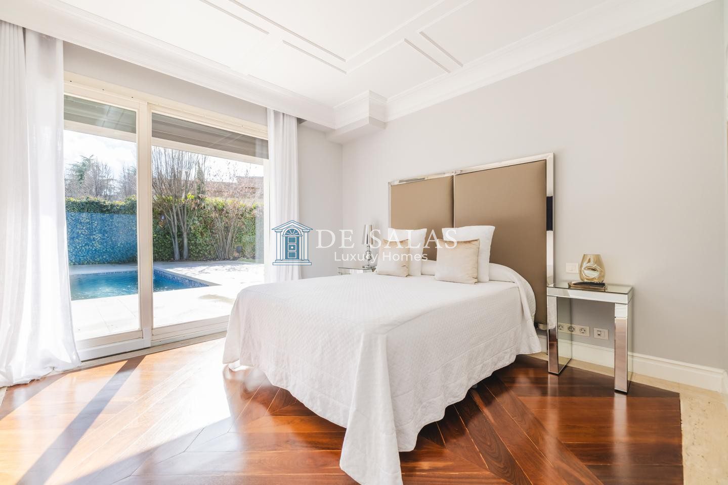 Se accede a la vivienda por un hall que da acceso al salón principal de doble altura,muy luminoso y abierto al jardín y zona de piscina. La cocina se presenta como un espacio de diseño puro, equipada con tecnología premium y acabados porcelánicos de última generación. Cuenta con dos dormitorios en planta baja con baño en suite con agradables vistas al exterior. Agradable sala de estar con salida al jardin ideal también para despacho o sala de juegos infantil.
