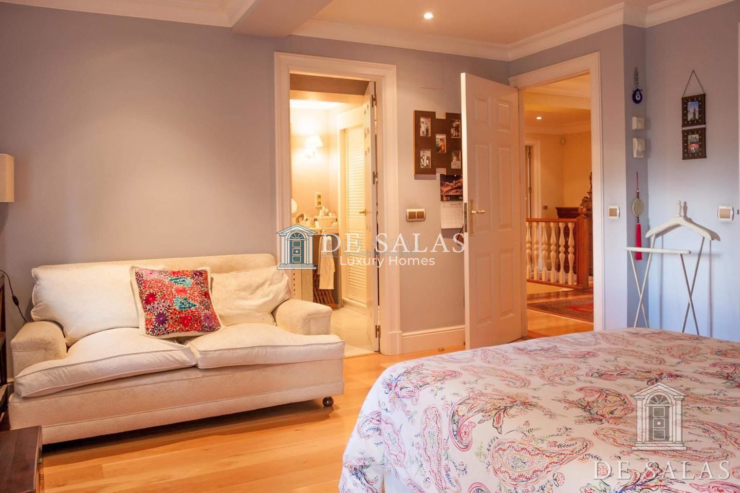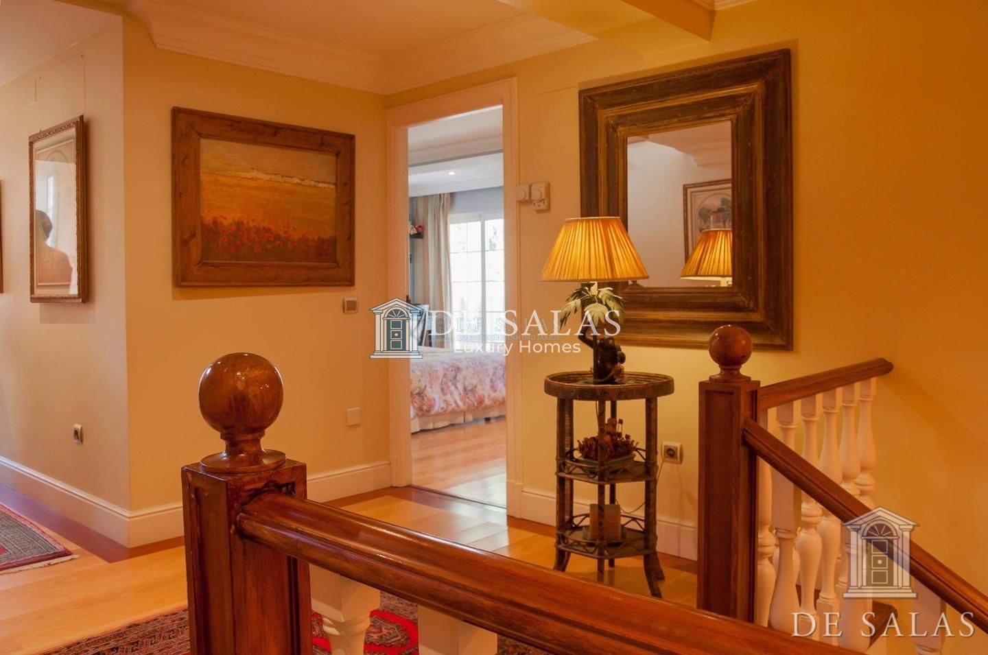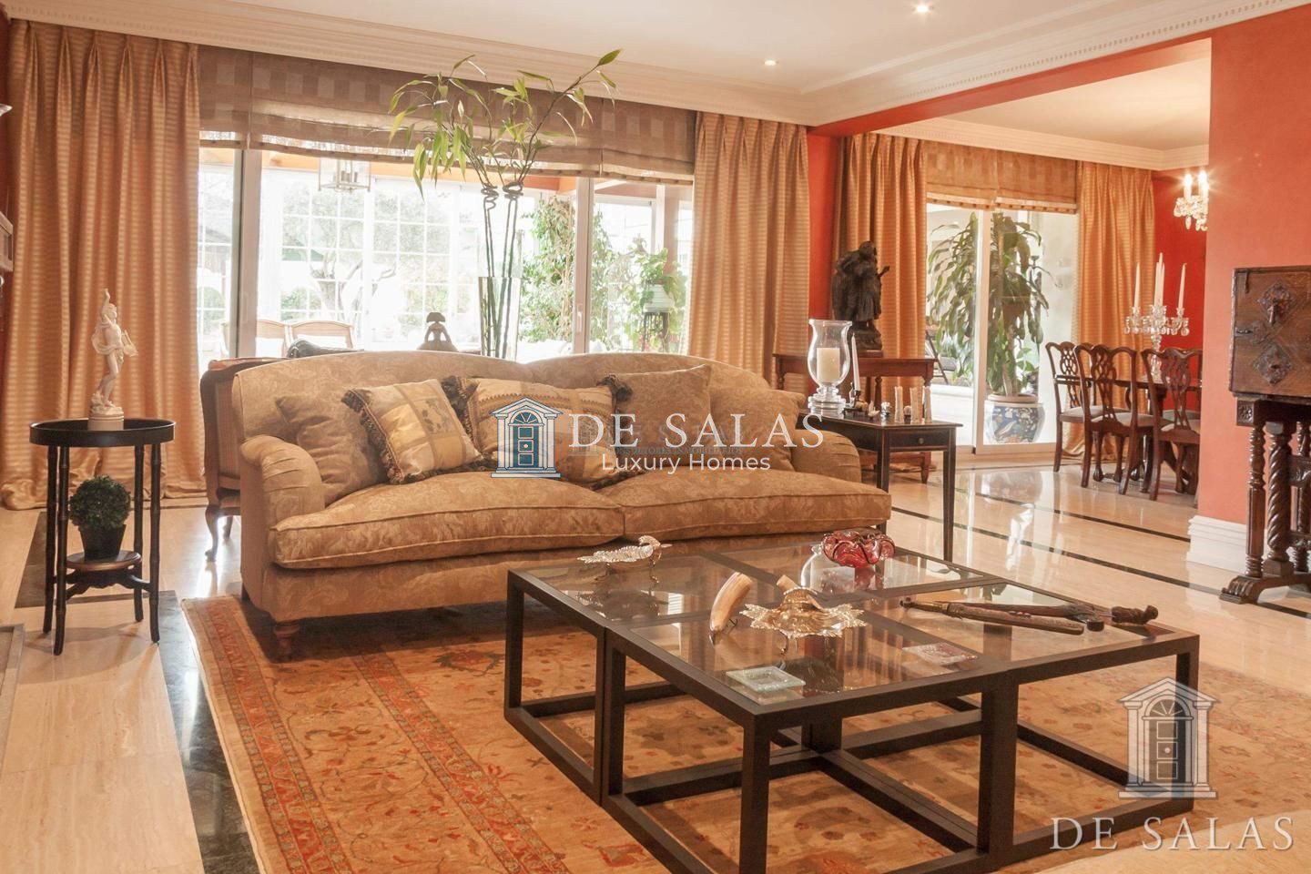 DE SALAS MAV01995 presenta en una espectacular parcela de 1.750 m2 se encuentra éste magnífico chalet independiente de 900 m2. El estilo de la casa mantiene un espíritu clásico y elegante, gracias a las grandes dimensiones de las estancias y a la esmerada decoración. El chalet fue totalmente reformado con unas calidades excepcionales: suelos de mármol y de madera maciza, buenos revestimientos y carpintería, paredes lisas… La distribución es clásica, con estancias amplias ricas en ambientes. El salón principal es una sala soberbia y distinguida con techos altos y atmósferas diferenciadas. Todos los dormitorios de la casa son en suite. La calefacción es la más eficiente: gas natural por suelo radiante.