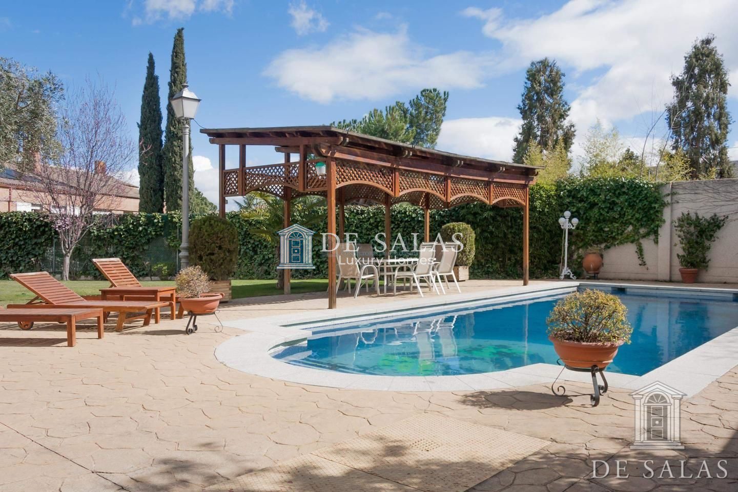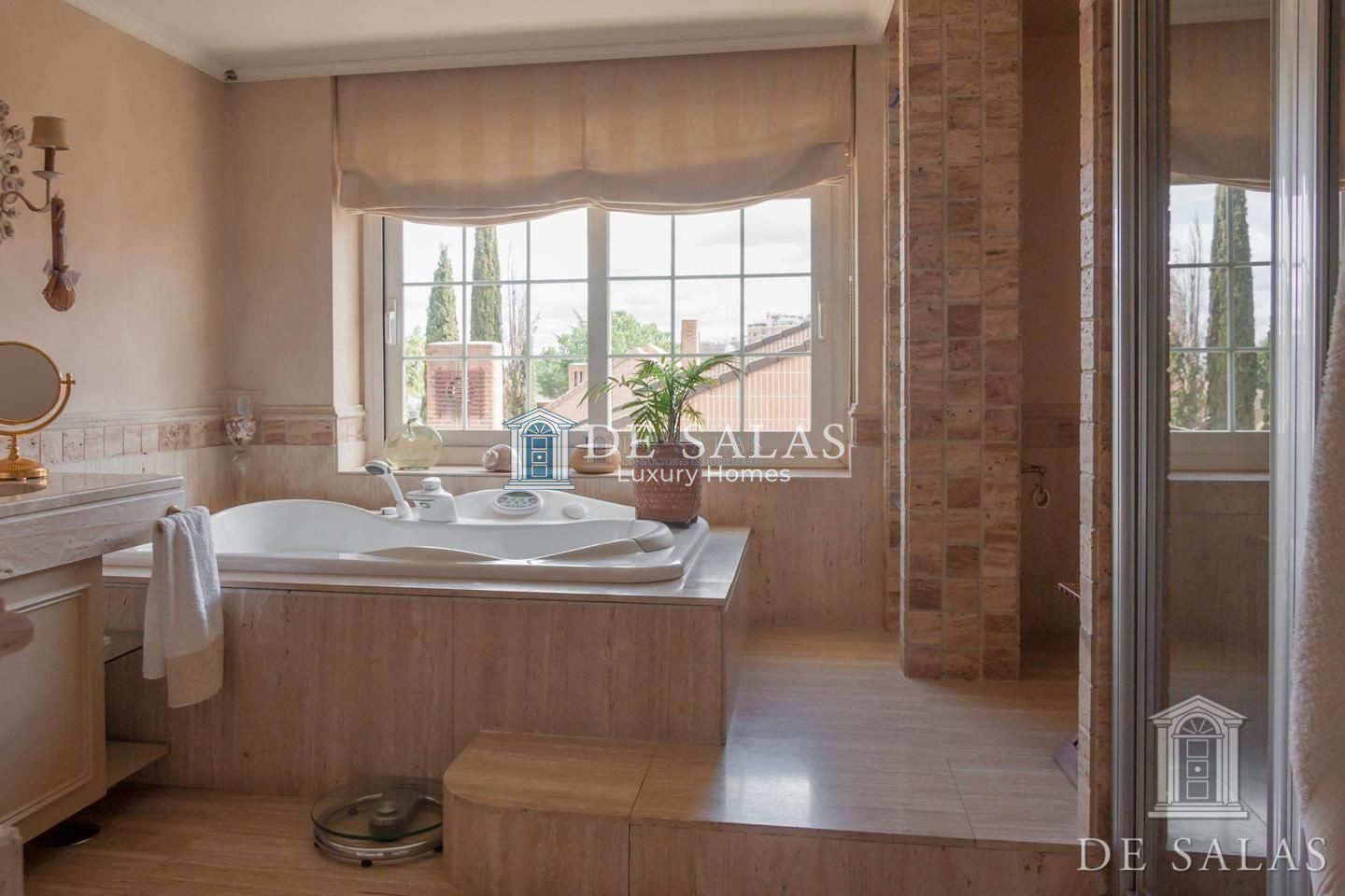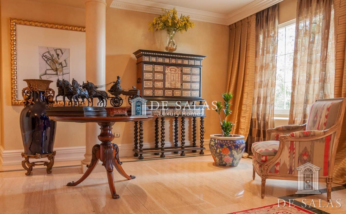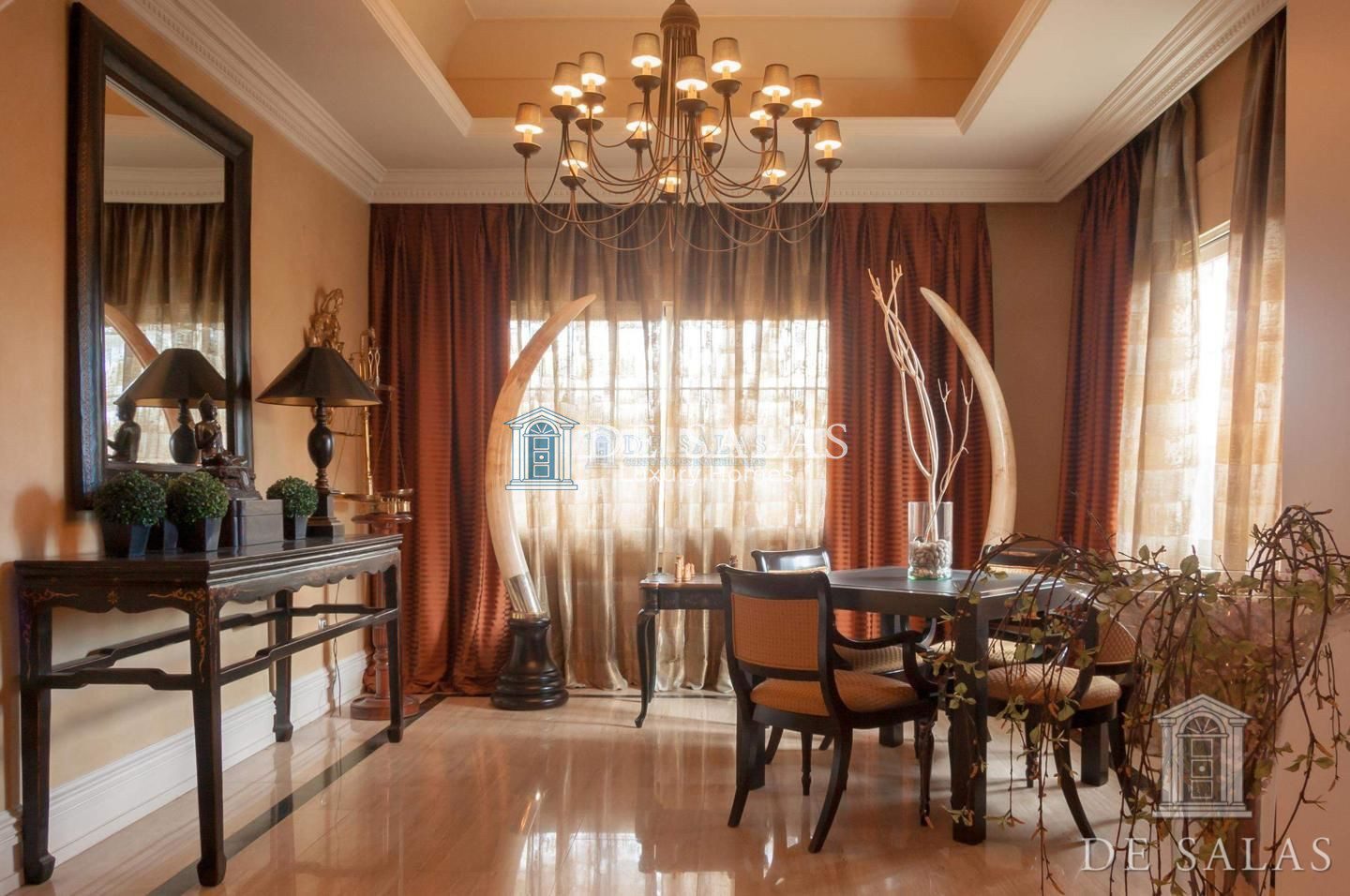 DE SALAS MAV01995 presenta en una espectacular parcela de 1.750 m2 se encuentra éste magnífico chalet independiente de 900 m2. El estilo de la casa mantiene un espíritu clásico y elegante, gracias a las grandes dimensiones de las estancias y a la esmerada decoración. El chalet fue totalmente reformado con unas calidades excepcionales: suelos de mármol y de madera maciza, buenos revestimientos y carpintería, paredes lisas… La distribución es clásica, con estancias amplias ricas en ambientes. El salón principal es una sala soberbia y distinguida con techos altos y atmósferas diferenciadas. Todos los dormitorios de la casa son en suite. La calefacción es la más eficiente: gas natural por suelo radiante.