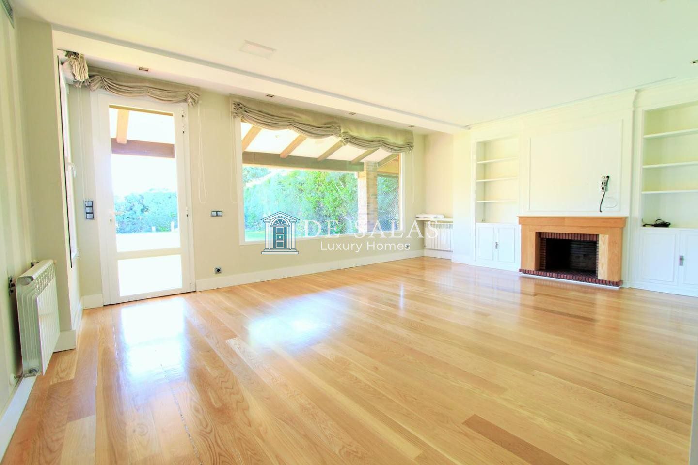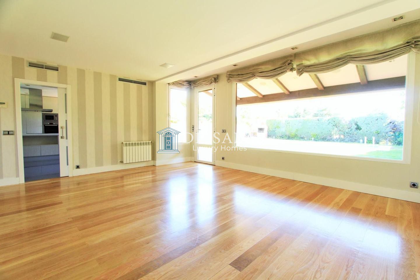 Planta de entrada reparte el hall, aseo de visitas, el salón, sala de estar y comedor independiente con chimenea con salida al porche y jardín. La cocina office con electrodomésticos, un gran cuarto de juegos y la zona para el servicio ( dormitorio de servicio con su baño y zona de lavandería / tendedero)