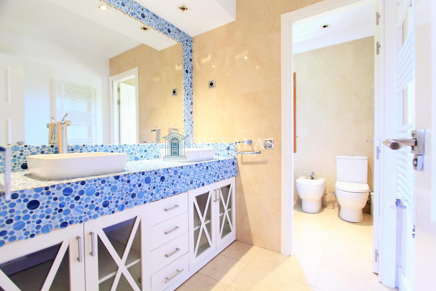 En la planta superior encontramos cuatro magníficos dormitorios, un despacho y tres baños. El principal con baño incorporado en suite y su propio vestidor.