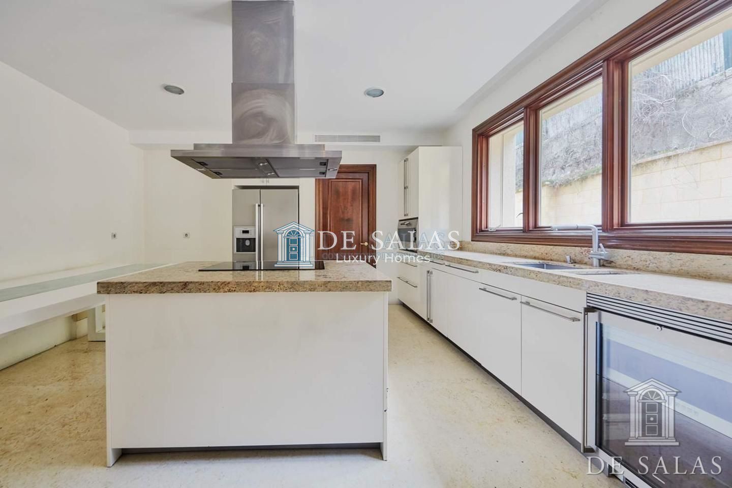 PLANTA PRINCIPAL: Hall 16m2. Salón con chimenea y salida al jardín con terraza 76 m2. Despacho 16 m2. Dormitorio de invitados en suite 11m2. Comedor 27m2 conecta con el jardín. Baño. Cocina con isla y electrodomésticos 25m2 con salida al jardín a través de la despensa.