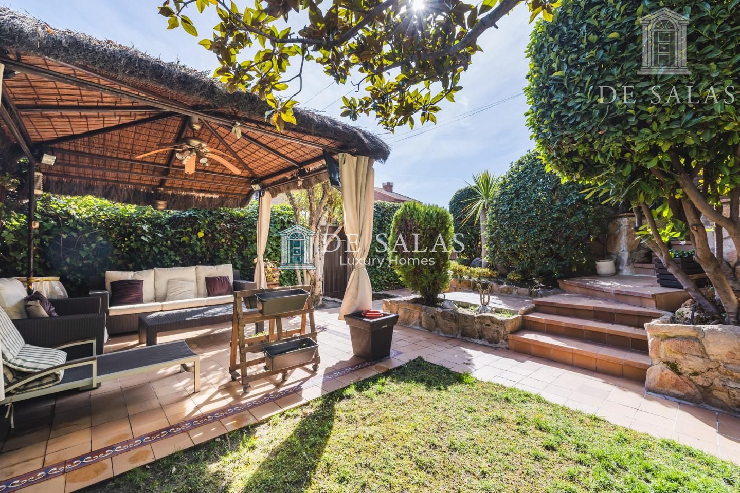 Pero la verdadera joya de este chalet es sin duda el magnífico jardín con una vegetación consolidada que da unas maravillosas sombras tan necesarias en los calurosos meses de verano.