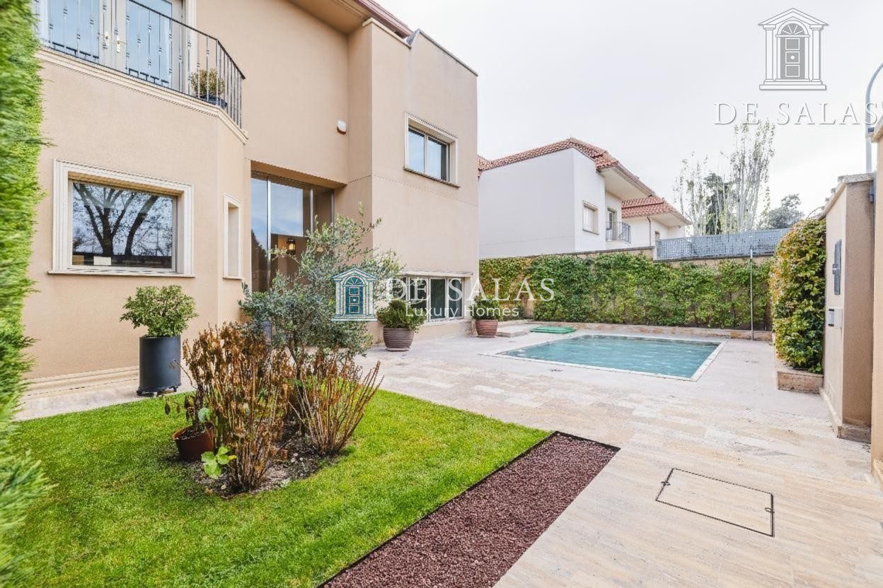 Magnífico Chalet Pareado de Lujo en Fuentelarreina. Presentamos un espléndido chalet pareado situado en la exclusiva zona residencial de Fuentelarreina, una ubicación que combina tranquilidad y una excelente comunicación con el centro de Madrid. Esta residencia ha sido construida con excelentes calidades y se mantiene en un estado de conservación impecable. La vivienda cuenta con una superficie de 540 metros cuadrados, según catastro, distribuidos elegantemente en cuatro plantas, de las cuales tres están comunicadas por un ascensor interior, garantizando la máxima comodidad.