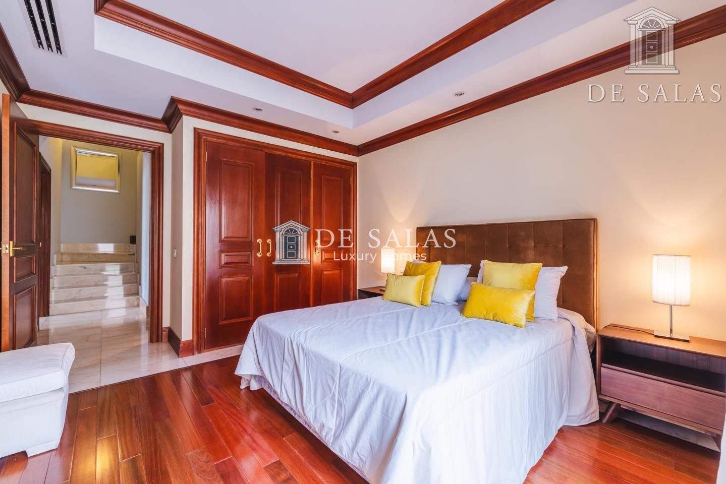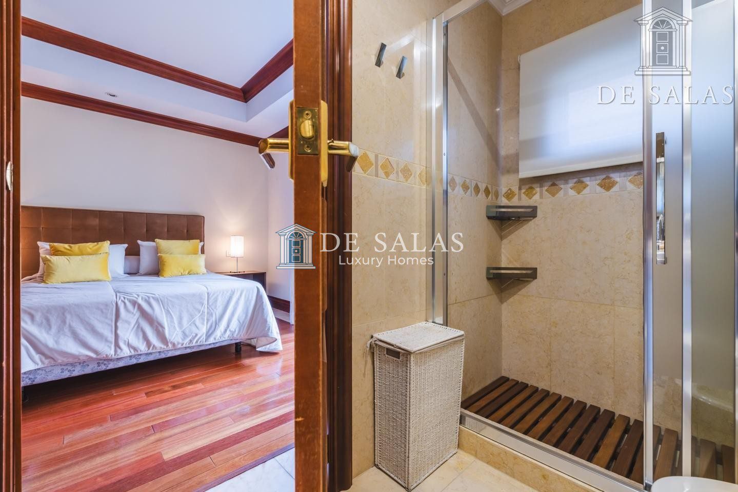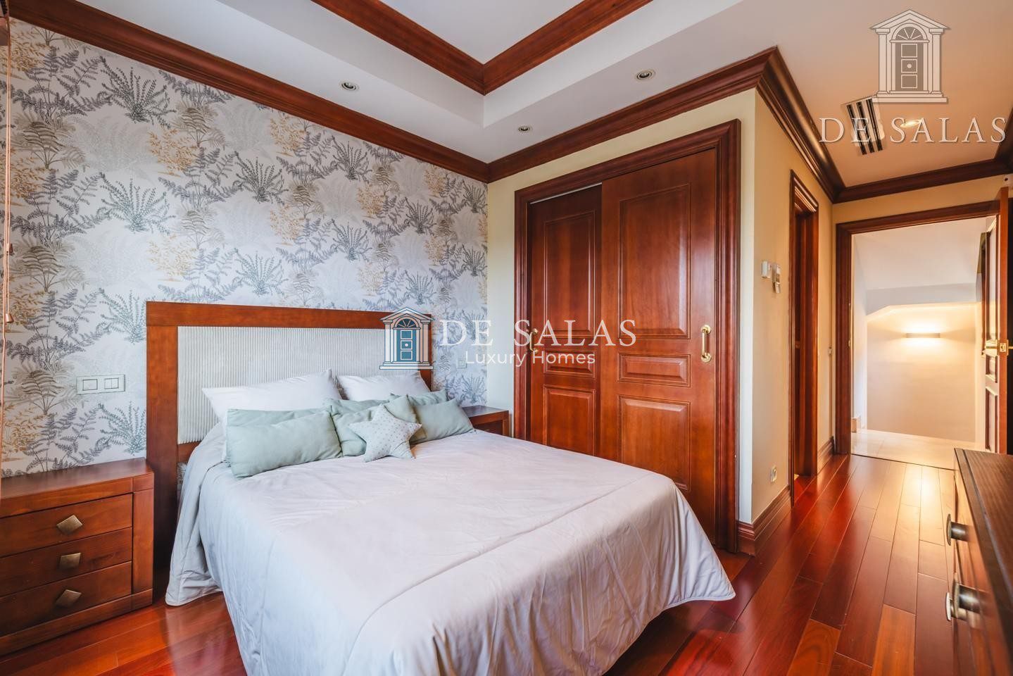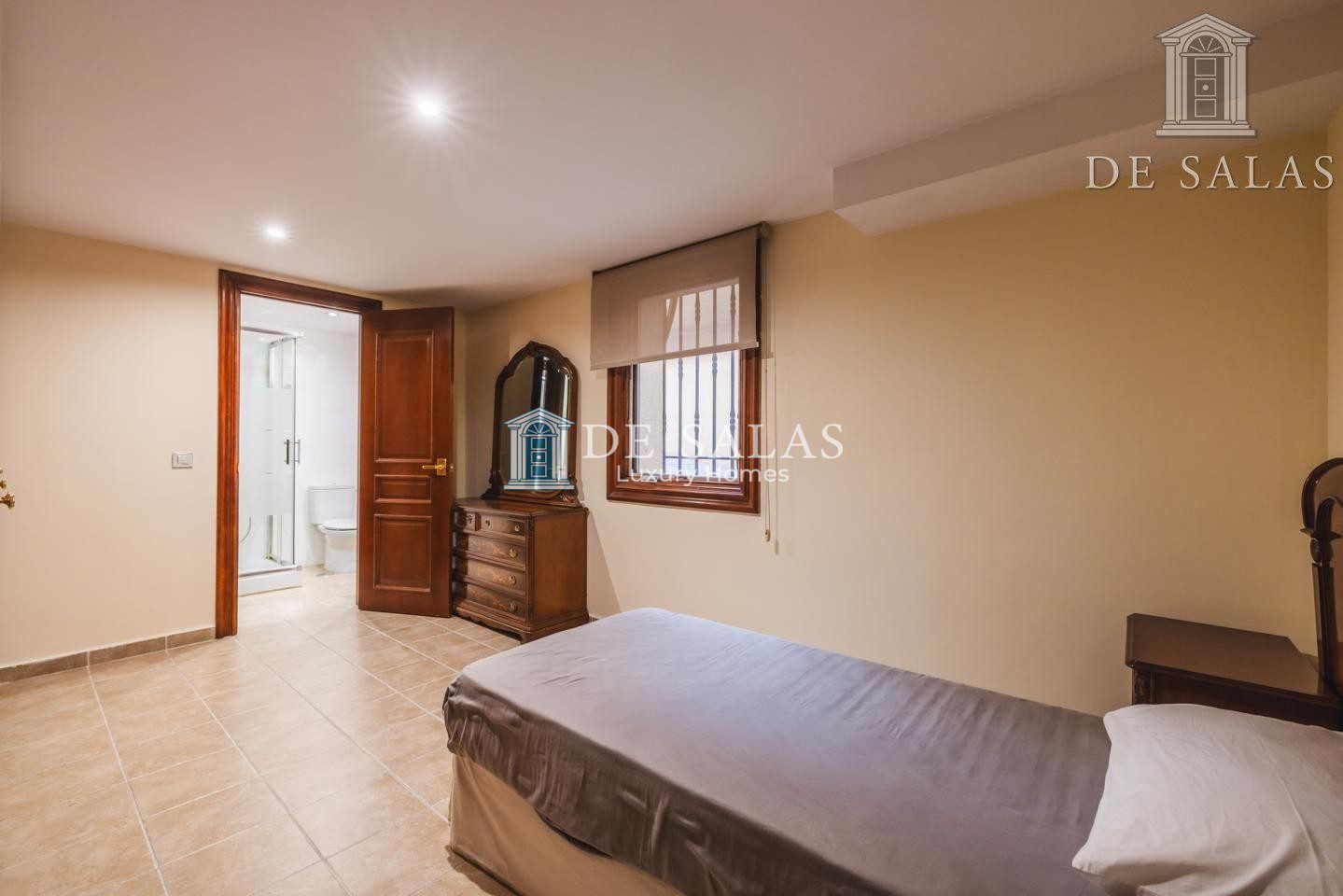 La distribución inteligente de la vivienda incluye dos entreplantas que conectan con el nivel principal, cada una dedicada a un dormitorio con su respectivo baño en suite. Estos espacios son perfectos para ofrecer privacidad y comodidad a invitados o familiares. En la primera planta se sitúan los dormitorios principales: tres amplios dormitorios, todos ellos con baño en suite. Dos de estas estancias superiores incorporan vestidor y tienen acceso a terrazas privadas, constituyendo verdaderos santuarios de descanso.