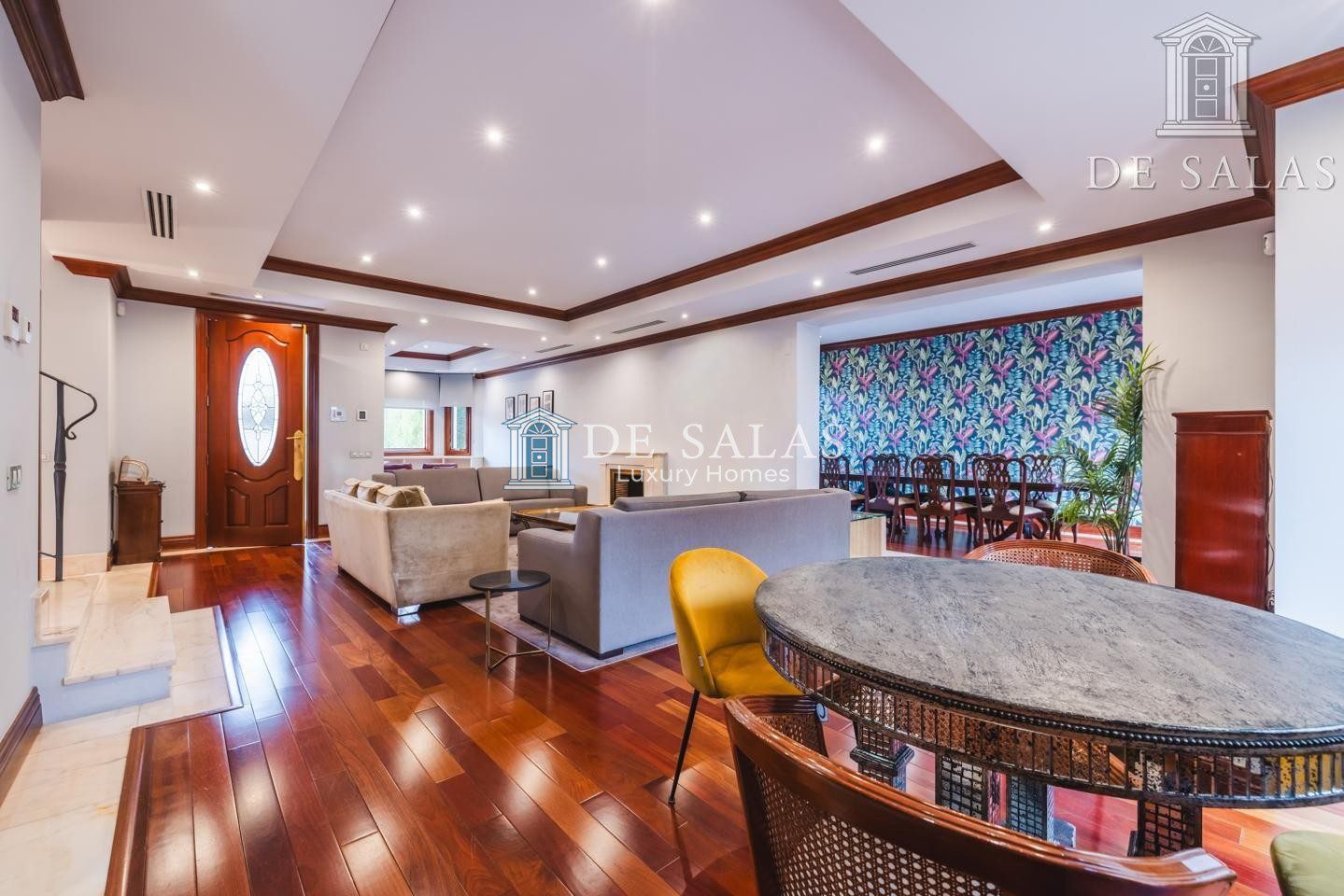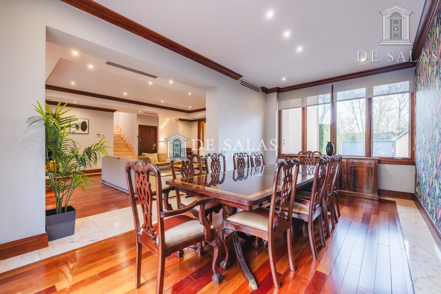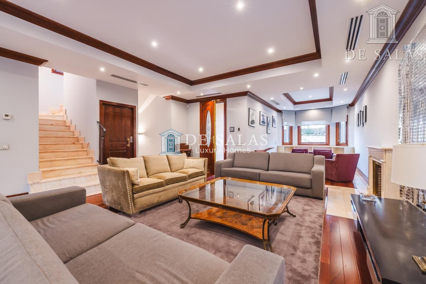 La planta principal, a la que se accede a través de un distinguido hall, alberga un amplio salón que integra varios ambientes y está presidido por una cálida chimenea. De manera independiente, se encuentra la zona de comedor con salida directa a un agradable porche exterior, equipado con toldos eléctricos. Esta planta se completa con una moderna cocina con office, totalmente equipada para los amantes de la gastronomía.