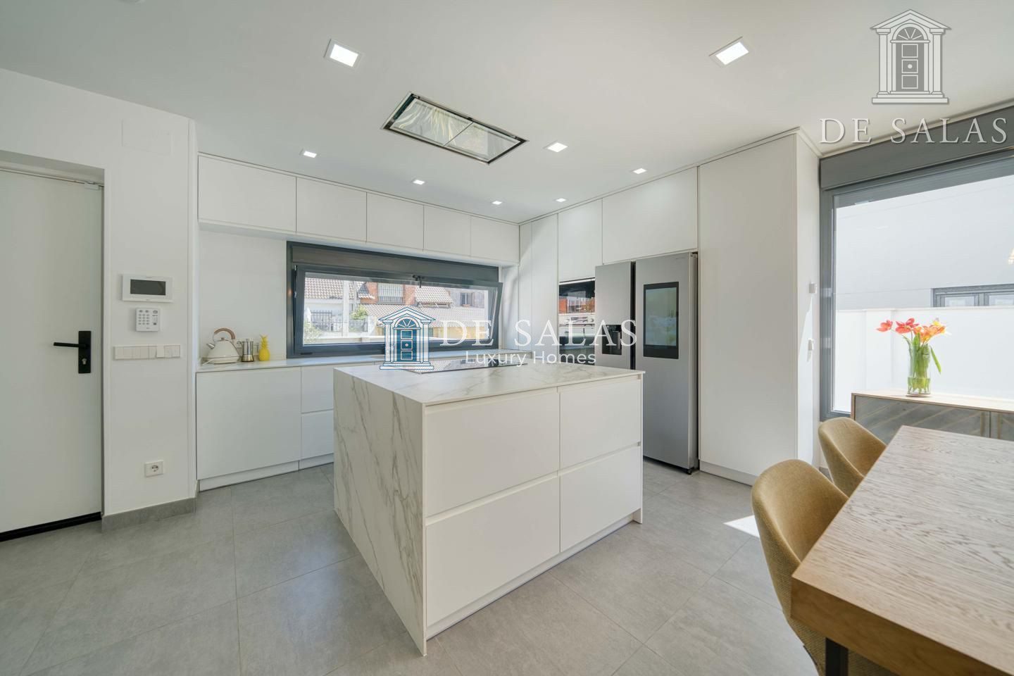 La vivienda cuenta con un sistema de climatización por suelo radiante y refrigerante, que ofrece máximo confort durante todo el año, además de splits de aire acondicionado en diferentes estancias para un control más inmediato de la temperatura.
