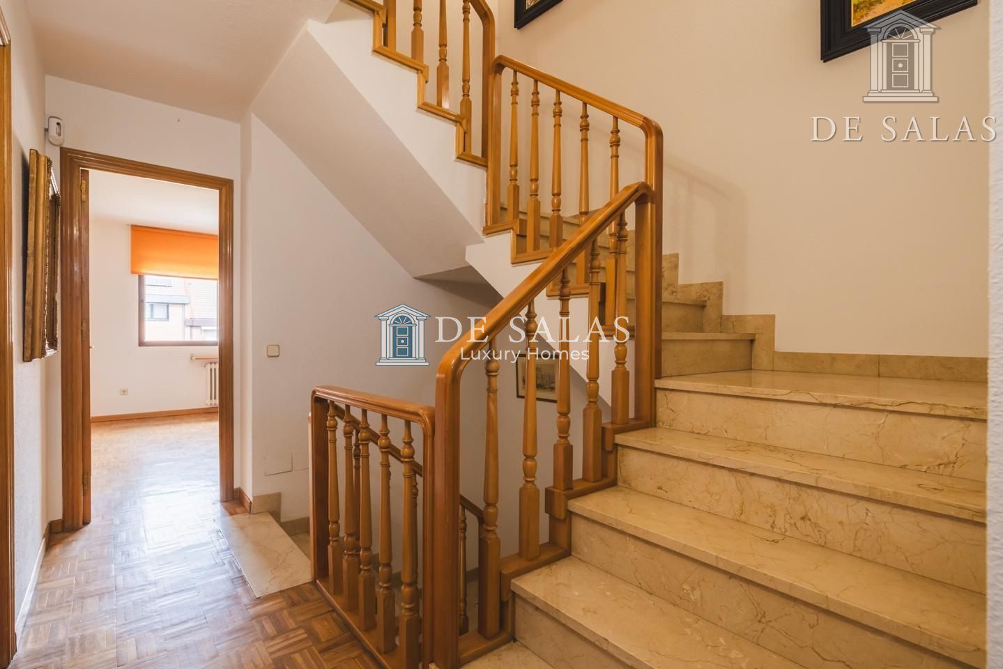 Este encantador chalet pareado, situado en una tranquila y arbolada calle del barrio de Peñagrande, ofrece un entorno ideal para familias que buscan calidad de vida, privacidad y espacios amplios. Rodeado de vegetación y muy próximo al Club de Golf de la Real Federación, forma parte de una urbanización con piscina comunitaria y una zona bastante amplia con jardines y solárium, que aportan un valor añadido al día a día y ofrecen un lugar perfecto para el esparcimiento y la vida social.