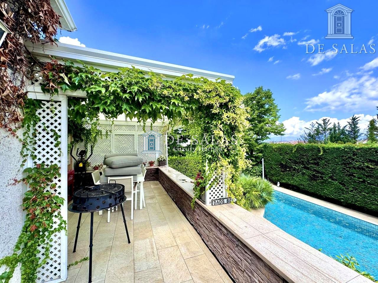 El exterior nos sorprende con un porche cubierto y abierto para poder disfrutar todo el año y vivir allí momentos inolvidables y respirar aire puro junto a la familia y amigos. A todo ello se añade la estupenda piscina con solarium y mucha privacidad.