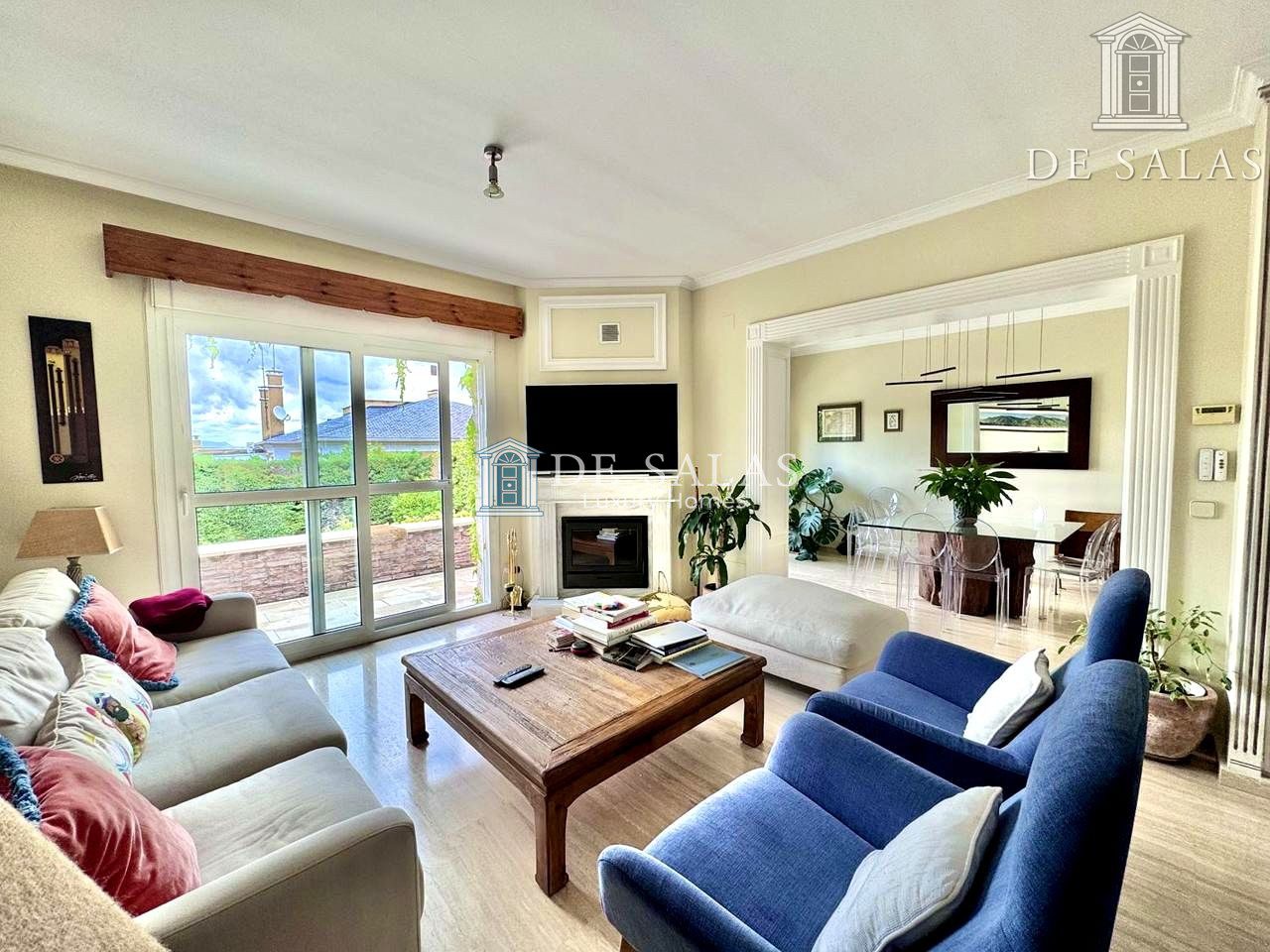 – Salón con chimenea y comedor independiente
