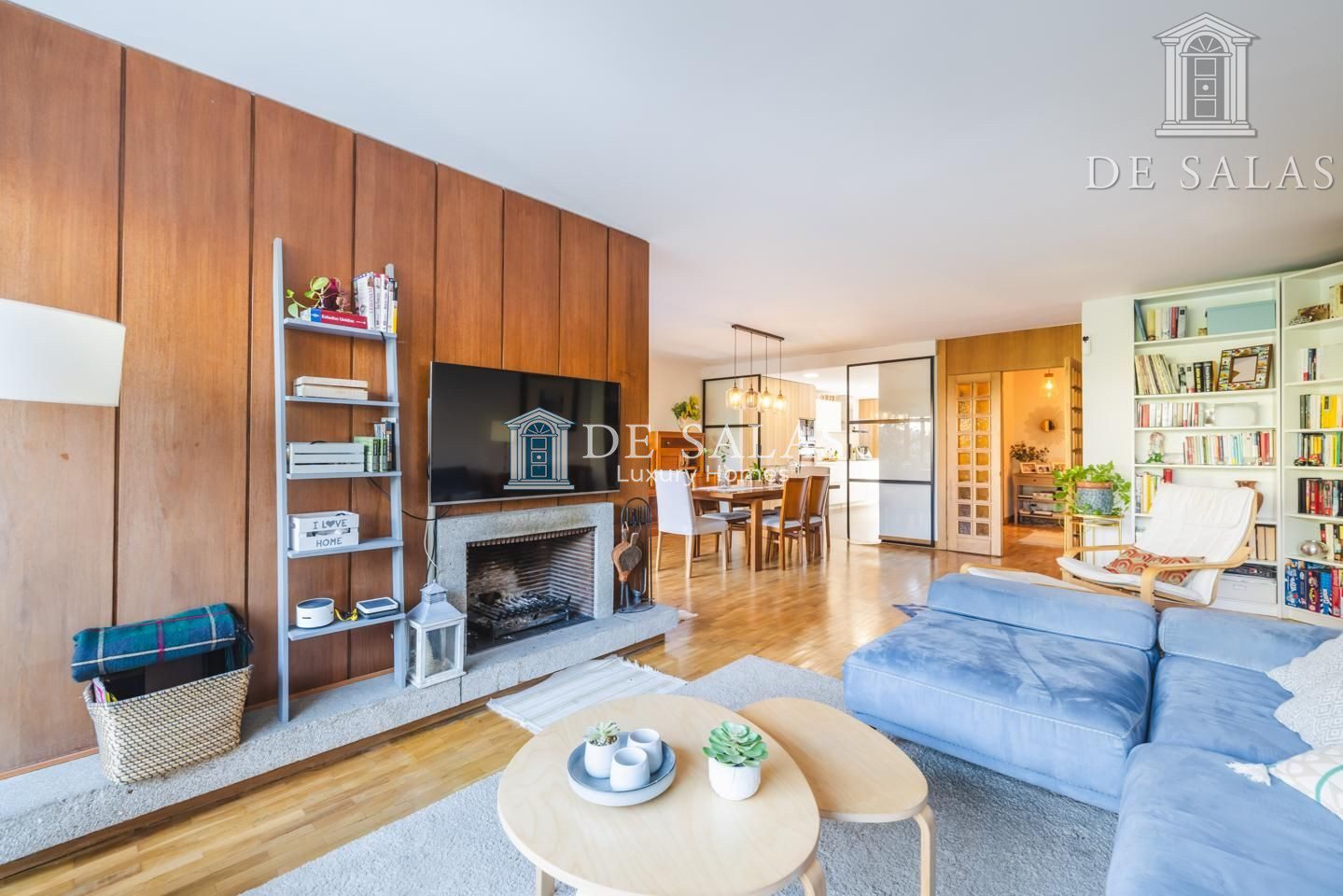 En el salón-comedor (40m2) la entrada de luz natural es protagonista absoluta, generando una atmósfera cálida y elegante durante todo el día. Destaca su amplitud y luminosidad gracias a dos impresionantes ventanales de suelo a techo y de pared a pared. La chimenea aporta calidez a la estancia que conecta directamente con el jardín con césped natural y dos áreas claramente diferenciadas, ideales para zona de comedor exterior y de espacio chillout o relax