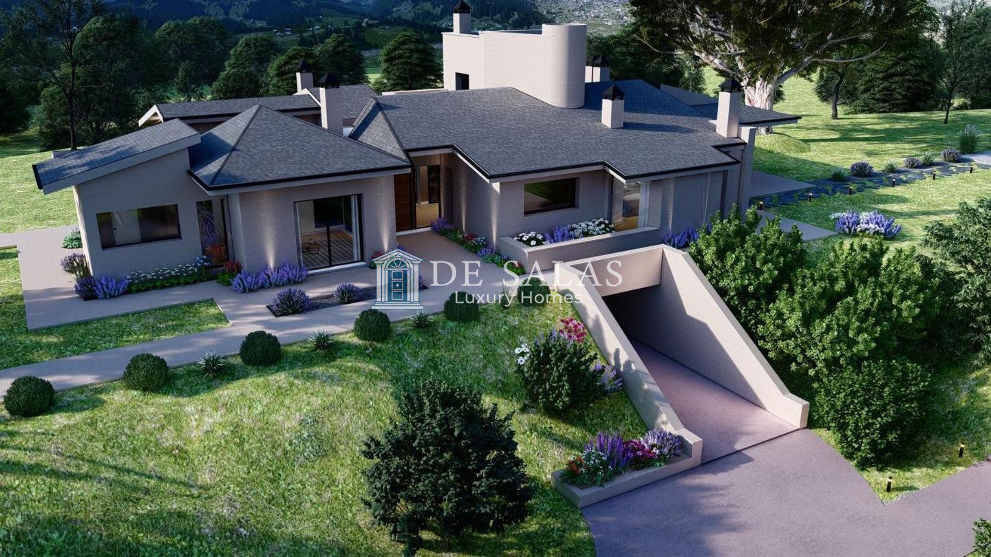 Sobre una magnífica parcela de 3.900 m² se asientan más de 600 m² construidos, desarrollados principalmente en una cómoda planta principal. La vivienda gira en torno a un elegante patio interior acristalado que aporta carácter y luminosidad a todos los espacios. El amplio salón-comedor, con techos altos y grandes ventanales de suelo a techo, se abre al jardín y ofrece agradables vistas despejadas al golf.