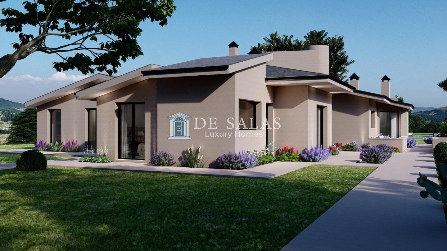 La zona familiar alberga dos dormitorios con baño en suite y una acogedora sala de estar polivalente. La suite principal destaca por sus generosas dimensiones e incluye vestidor, despacho privado, chimenea, baño con ducha doble y bañera exenta, además de salida directa al jardín. En la planta superior, un singular torreón acoge otro dormitorio en suite con vistas privilegiadas. La planta inferior dispone de garaje cerrado y sala de instalaciones.