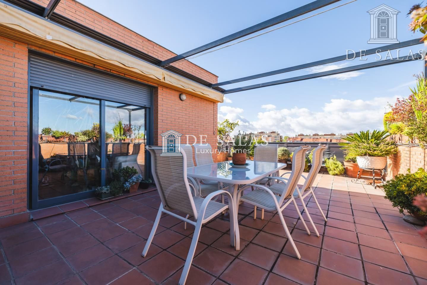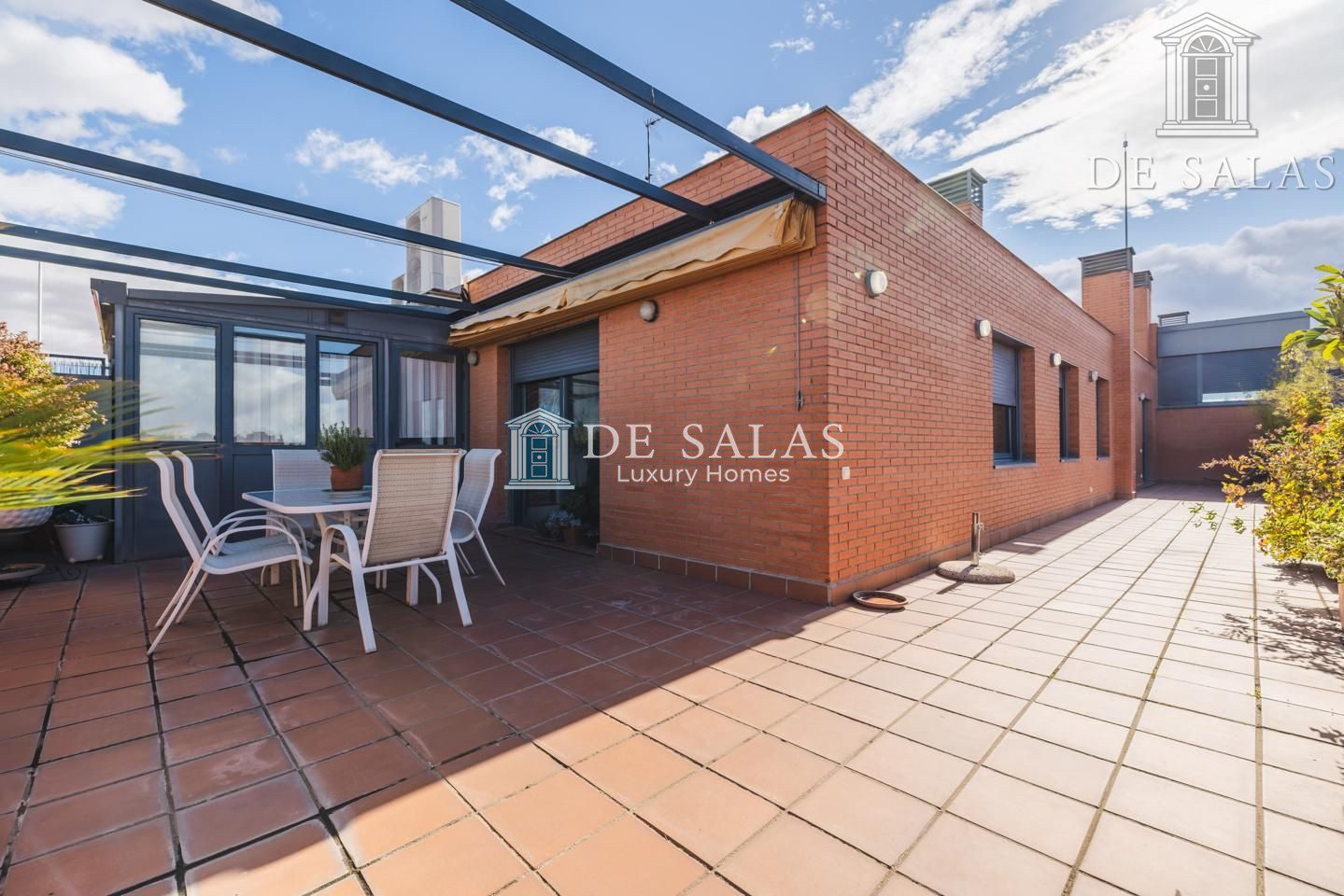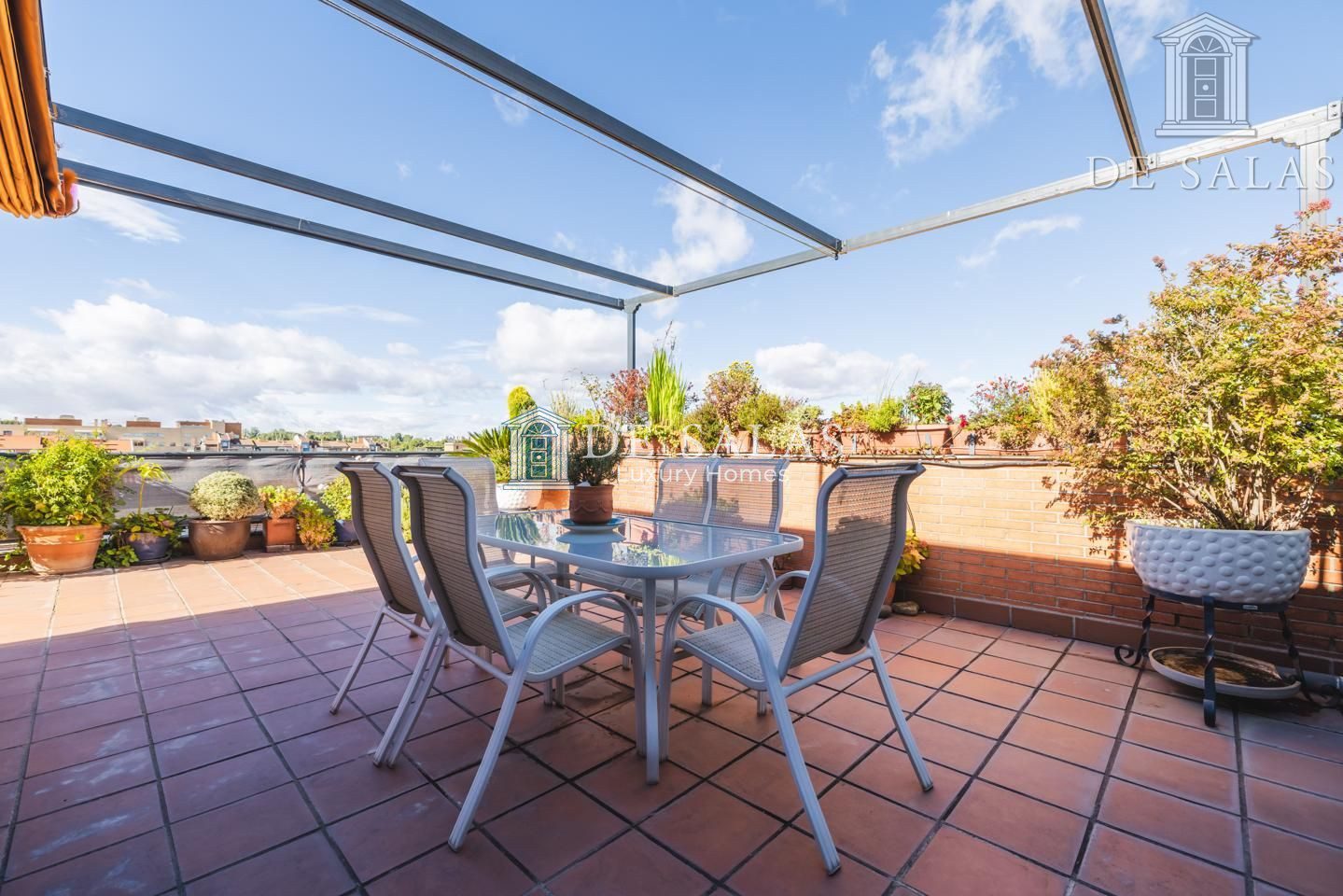La terraza con una cómoda y práctica pérgola, es sin duda alguna, la joya de este espectacular piso. Sus casi 100m2 la convierten en el lugar ideal para pasar largas horas leyendo, tomando un café con amigos bajo el bonito cielo azul de Madrid, un desayuno bañado por el sol, o una cena en familia durante los meses más cálidos del año. Un elemento sin duda diferencial a la hora de elegir un hogar.