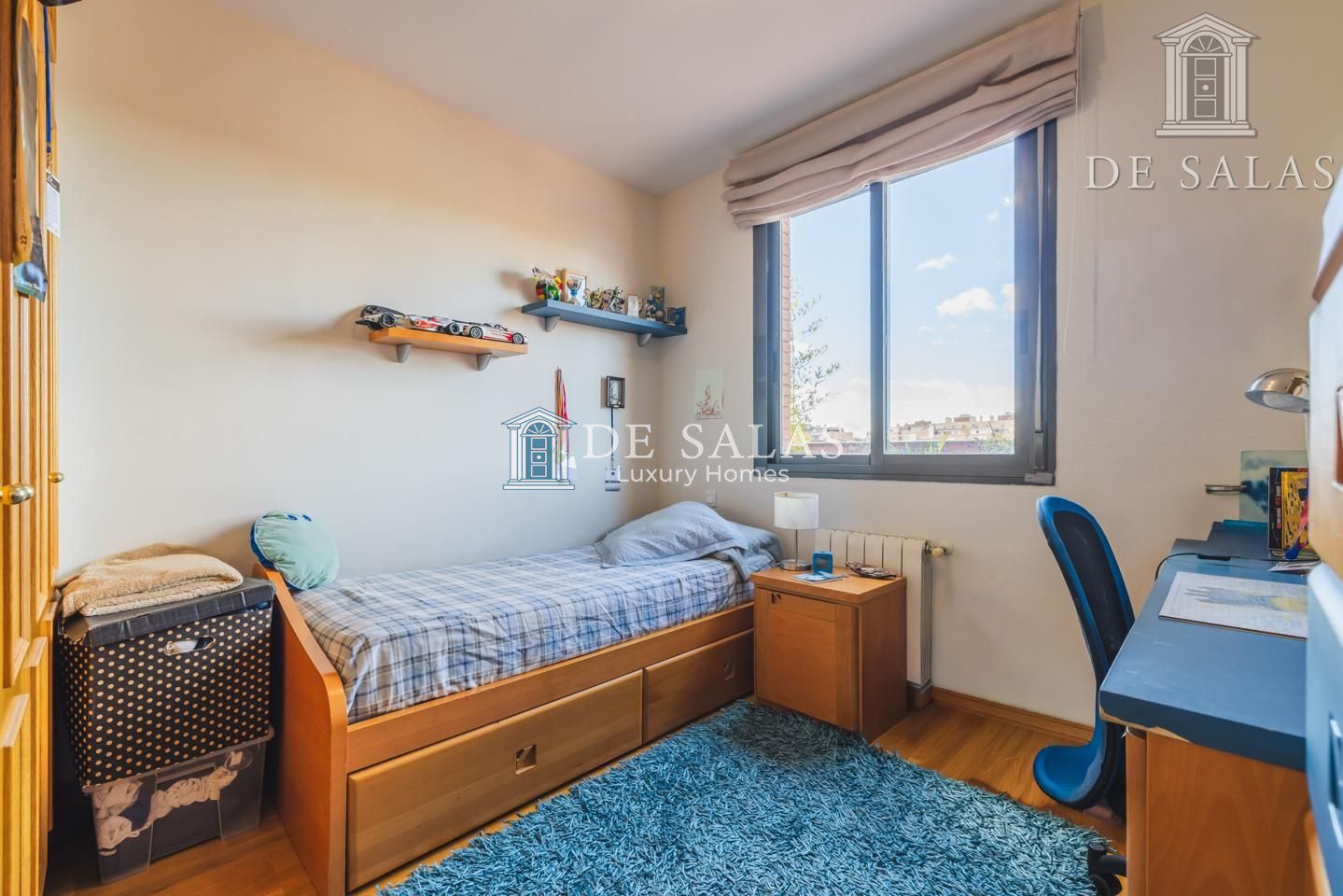 Junto al salón encontramos un dormitorio que puede destinarse también a despacho.