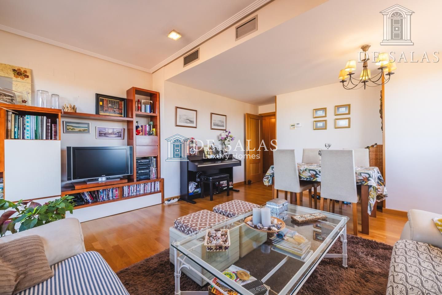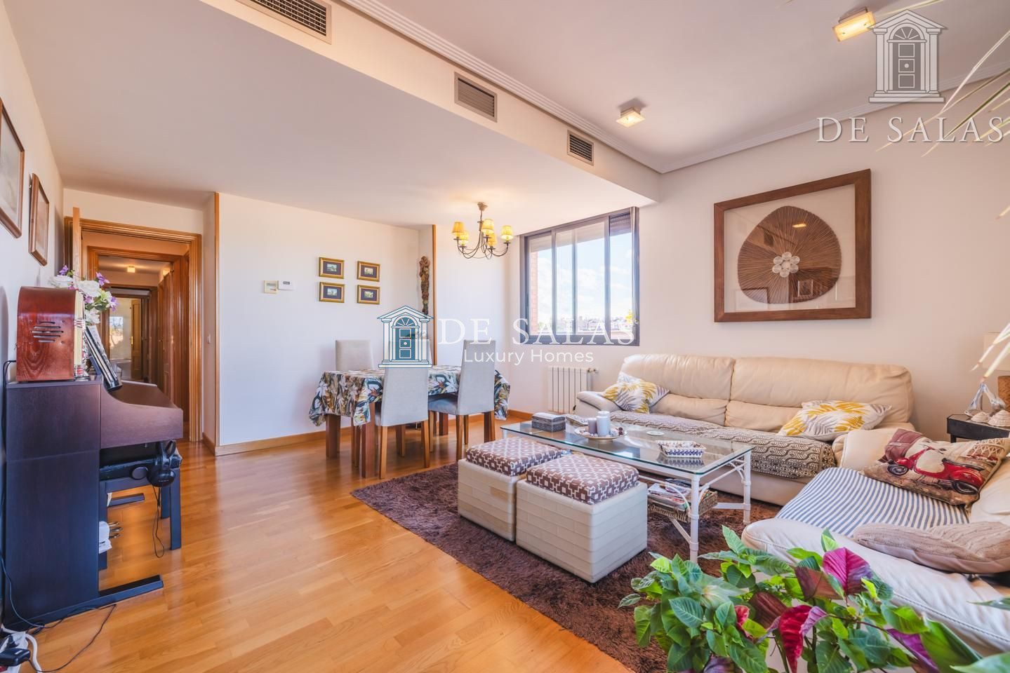 Calefacción por gas natural, aire acondicionado por conductos internos, paredes lisas, suelo de tarima de madera. y carpintería exterior climalit.