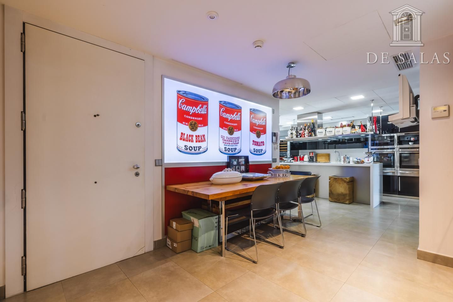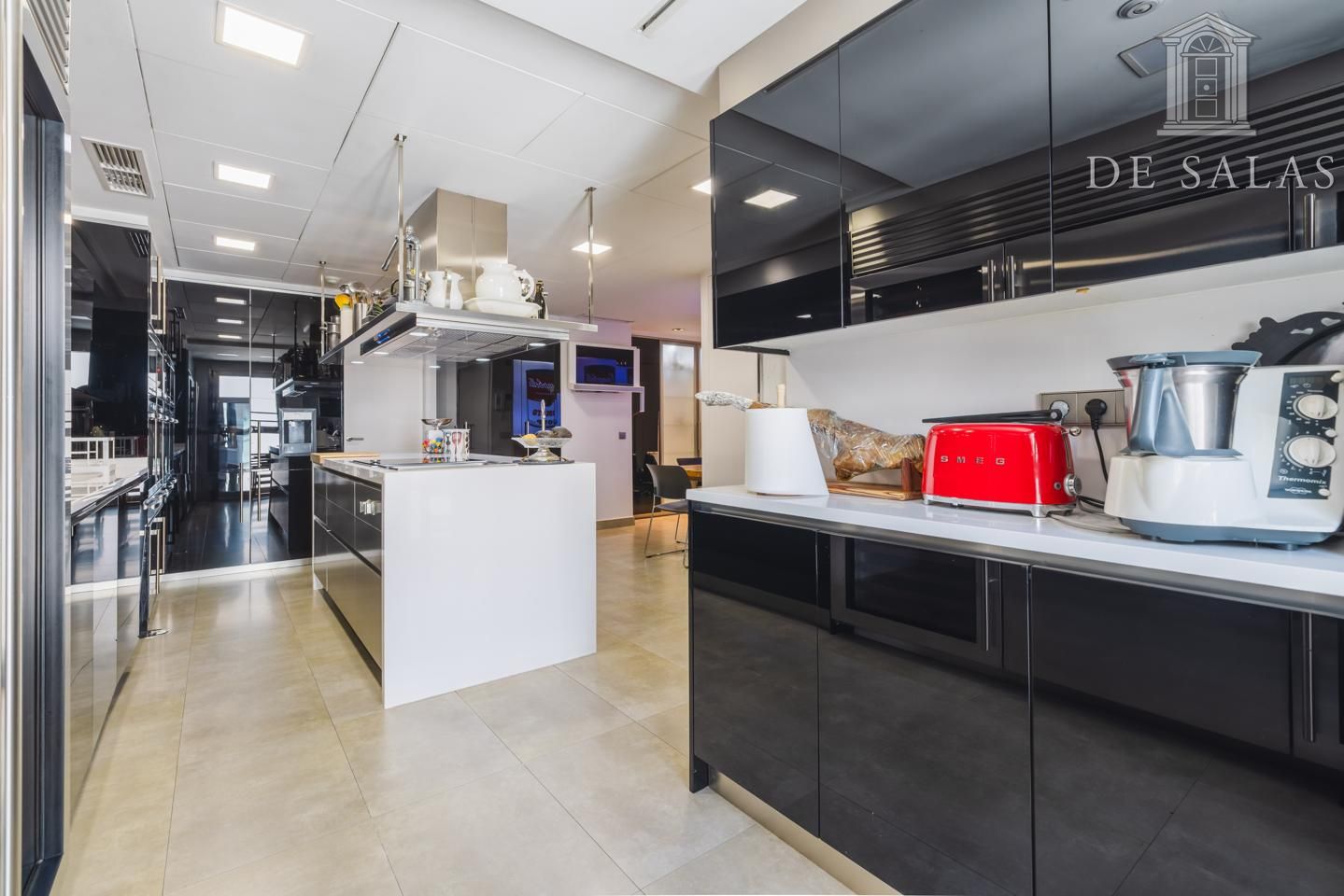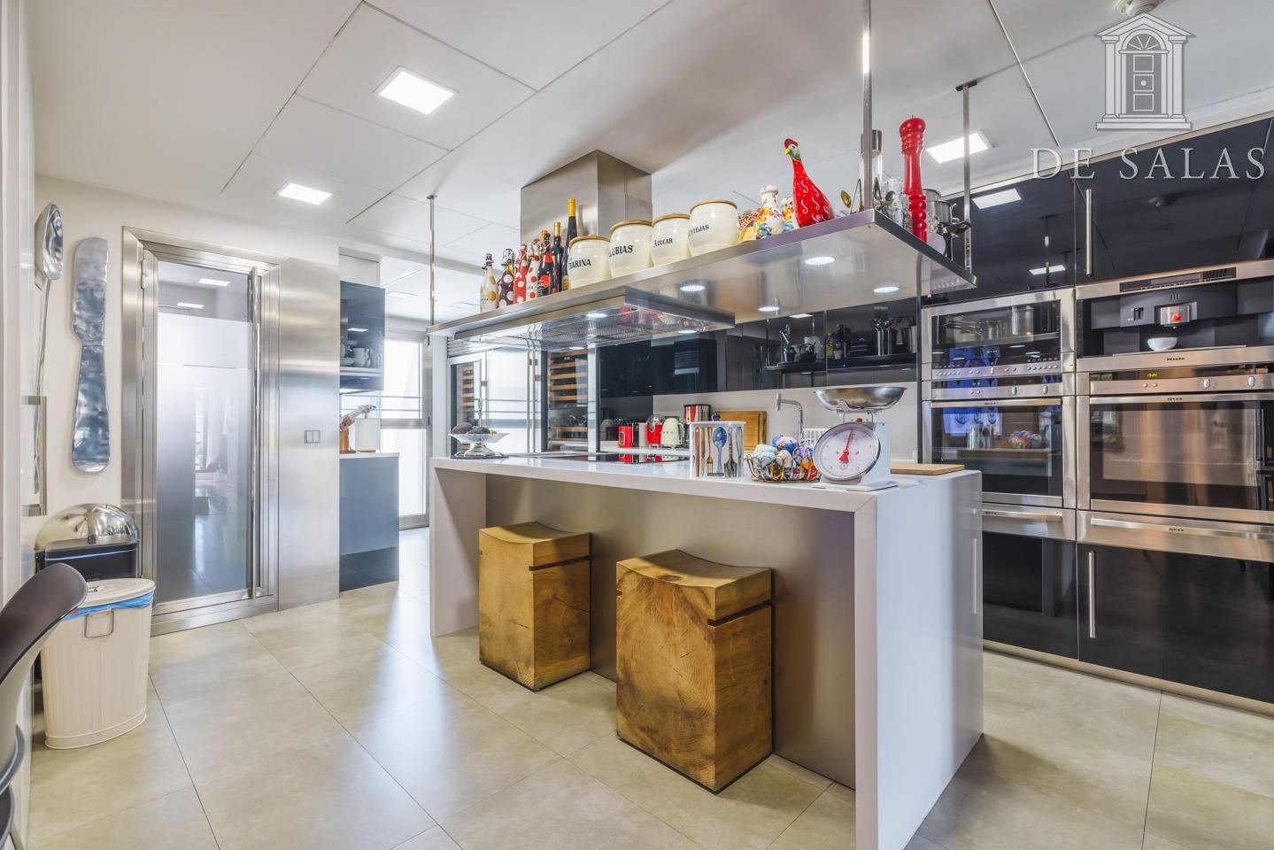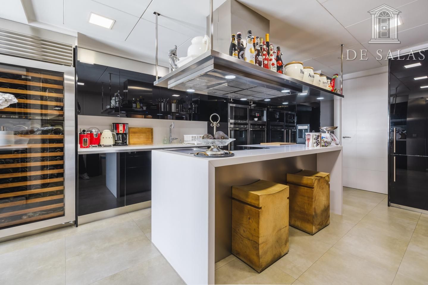 La cocina dispone de isla central para cocinar y zona de office para comer a diario. Además, cuenta con un gran número de armarios para almacenaje. Destacan sus electrodomésticos de alta gama, que hace de esta cocina, el lugar ideal para los amantes del arte culinario.