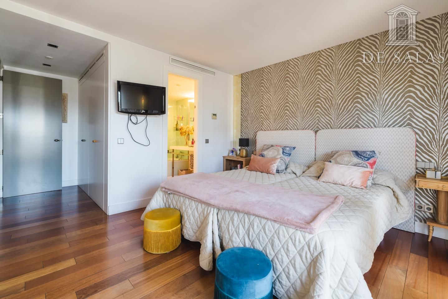El dormitorio principal dispone también de 2 amplios vestidores, además de otro entre ambos, junto a 2 cuartos de baño en suite. Todo un lujo para la comodidad más exquisita.