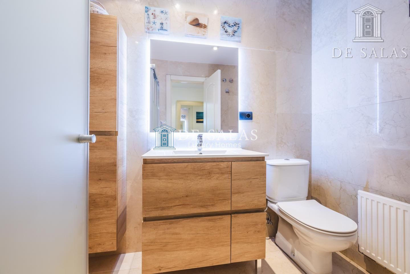 Desde el hall, con armario gabanero y aseo para invitados, divisamos el salón-comedor de generoso tamaño y con unas preciosas y despejadas vistas. La luz inunda la estancia gracias a sus bonitos ventanales de suelo a techo.