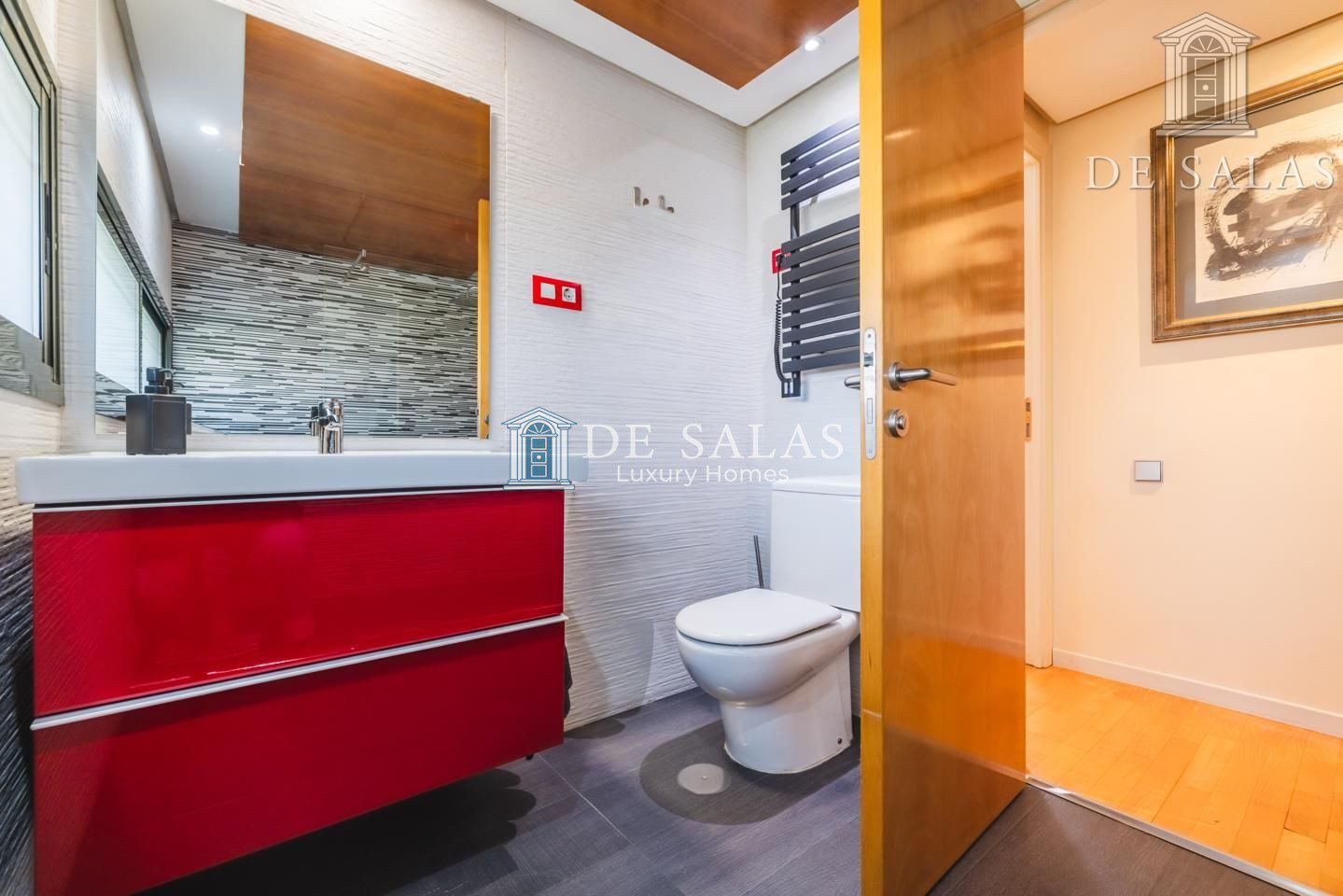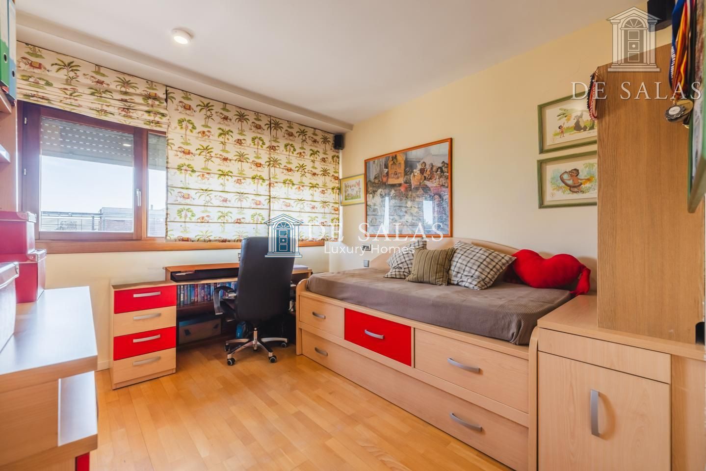 Un pasillo distribuidor, nos da paso a la zona de noche, destacando el dormitorio principal por sus destacadas dimensiones (23m²; 2 habitaciones de origen), con amplio vestidor y baño completo en suite. Una segunda habitación doble, con armarios empotrados y otro baño con plato de ducha, completan la zona de descanso en esta planta.