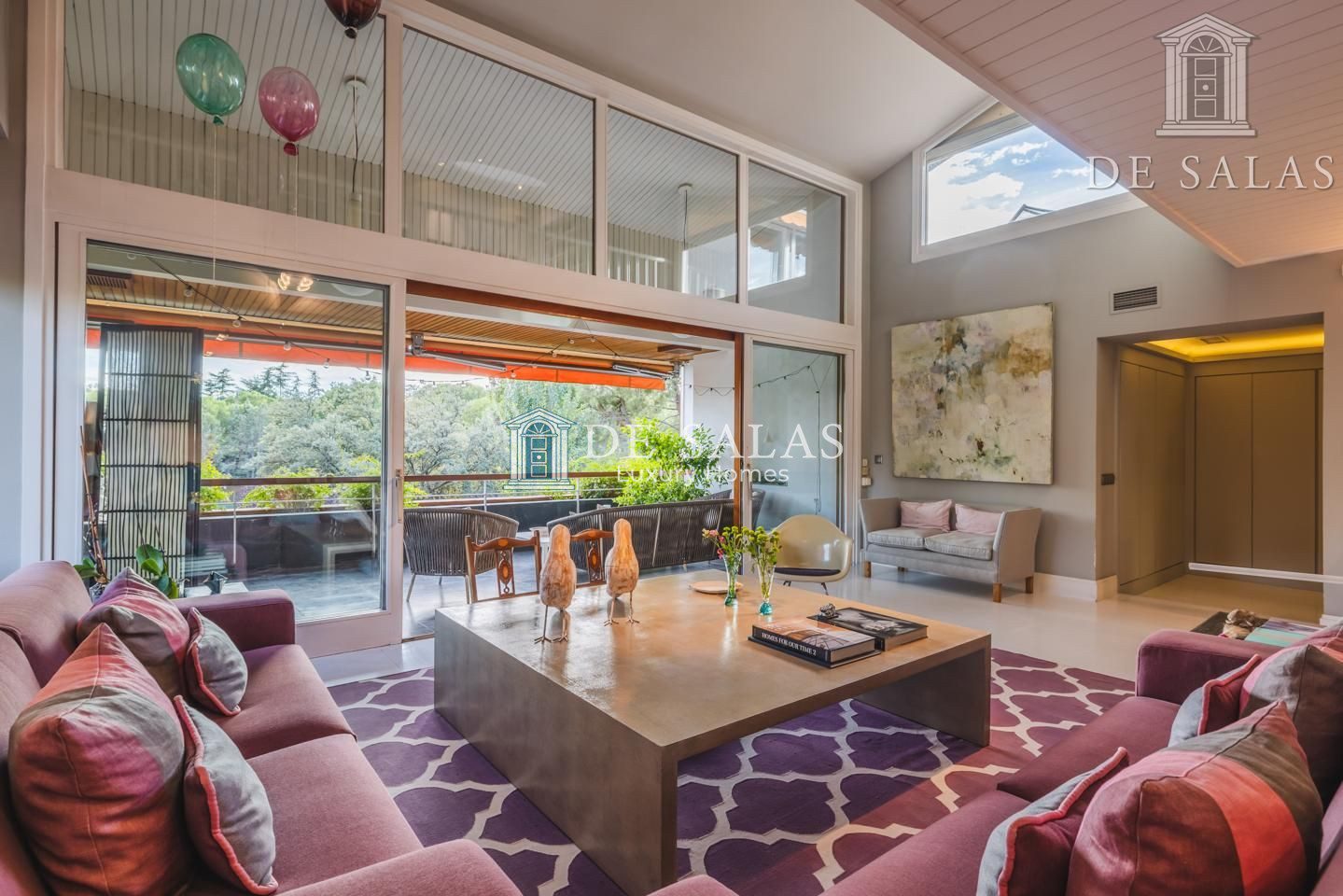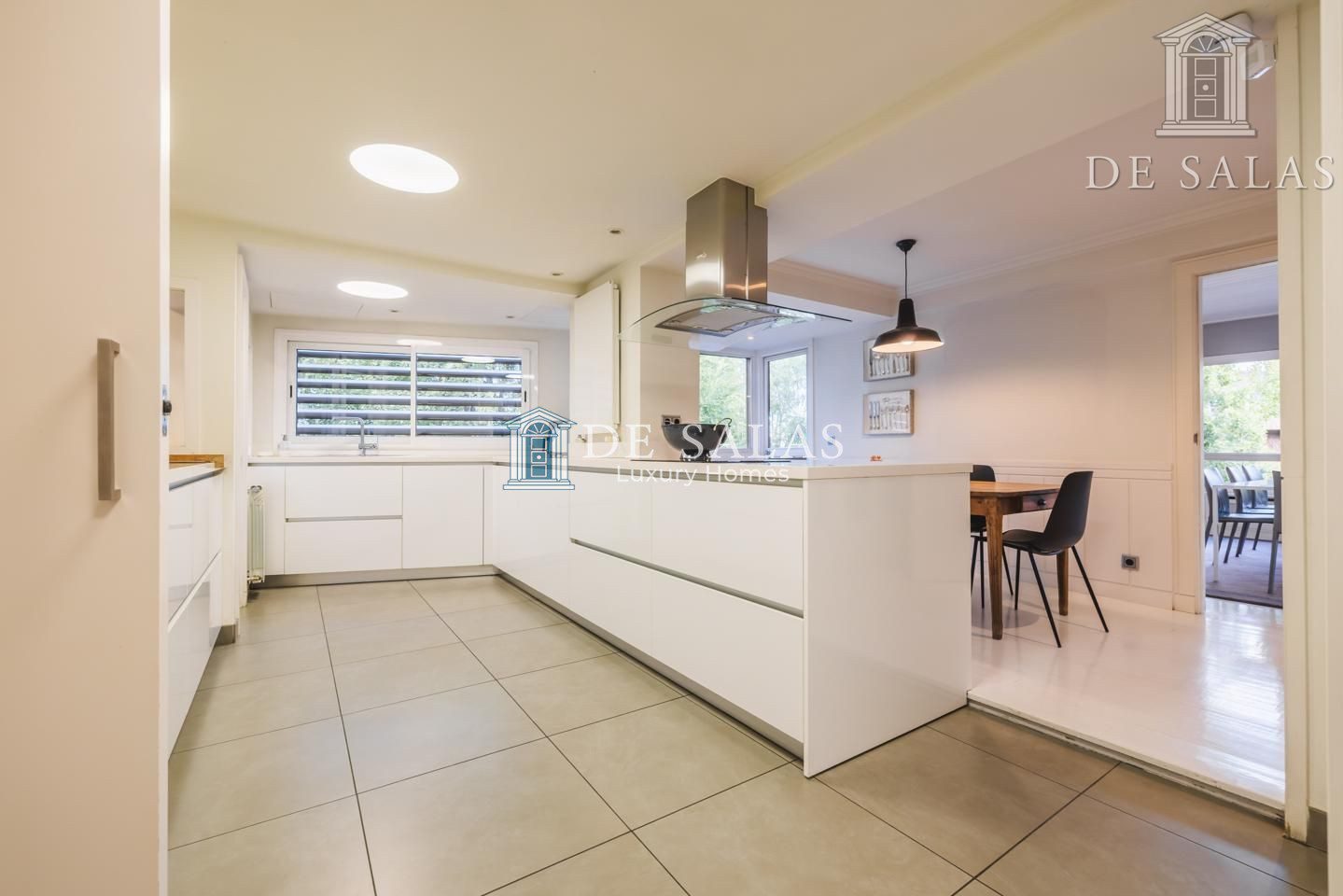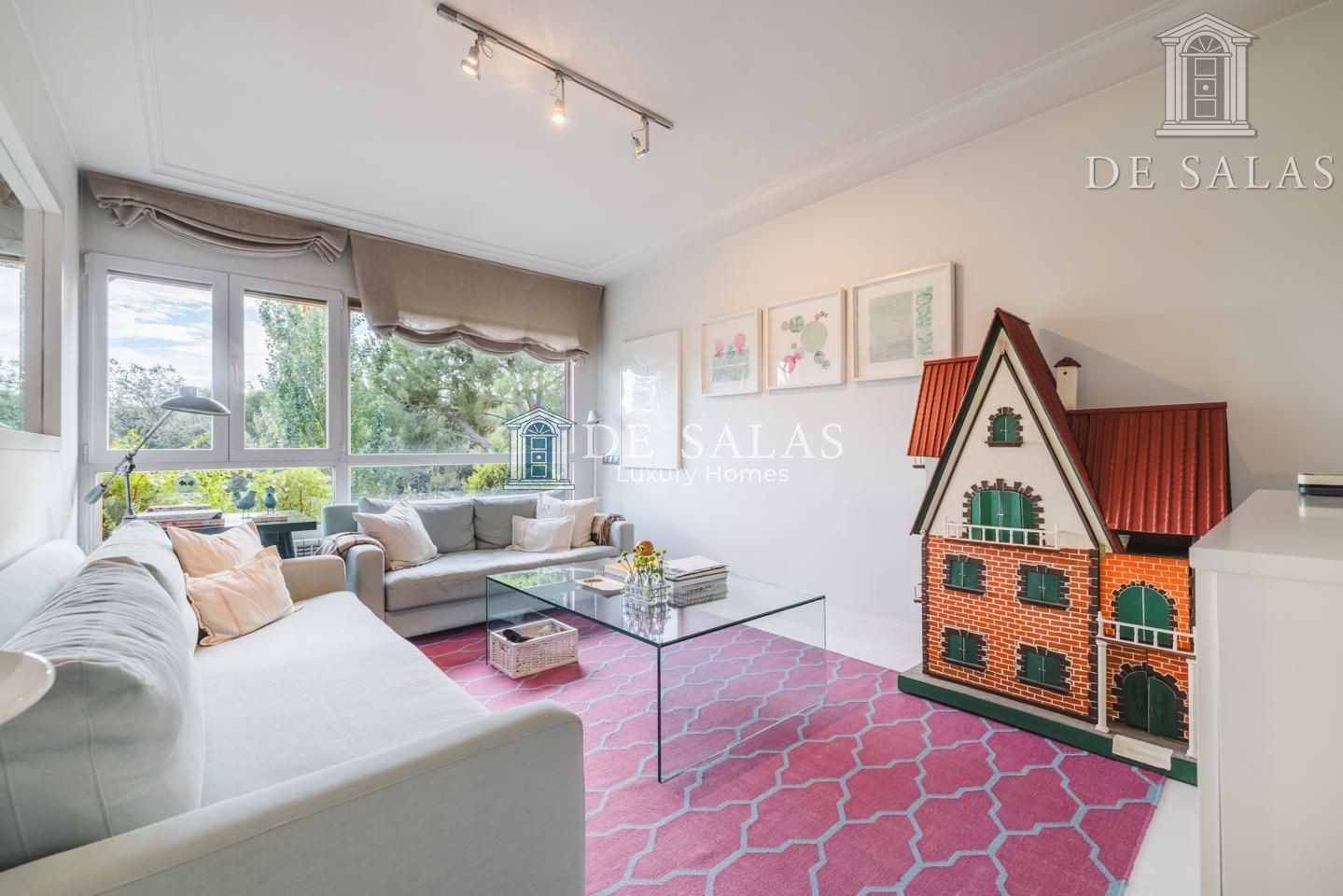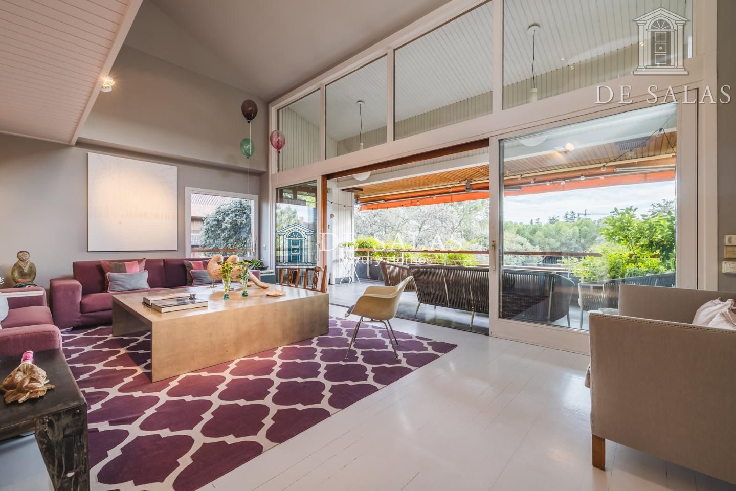 Representativo hall de entrada, que se abre a un amplio salón dividido en dos zonas, comunicadas con un comedor independiente. Amplia cocina de diseño actual con office, dispone de zona de servicio (dormitorio de servicio con baño completo). Existe una habitación de juegos-estar, un despacho señorial, un aseo de cortesía y una fabulosa terraza que se asoma sobre los jardines de la urbanización y vistas sobre La Moraleja.