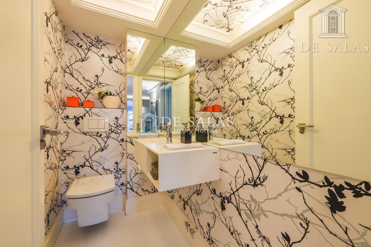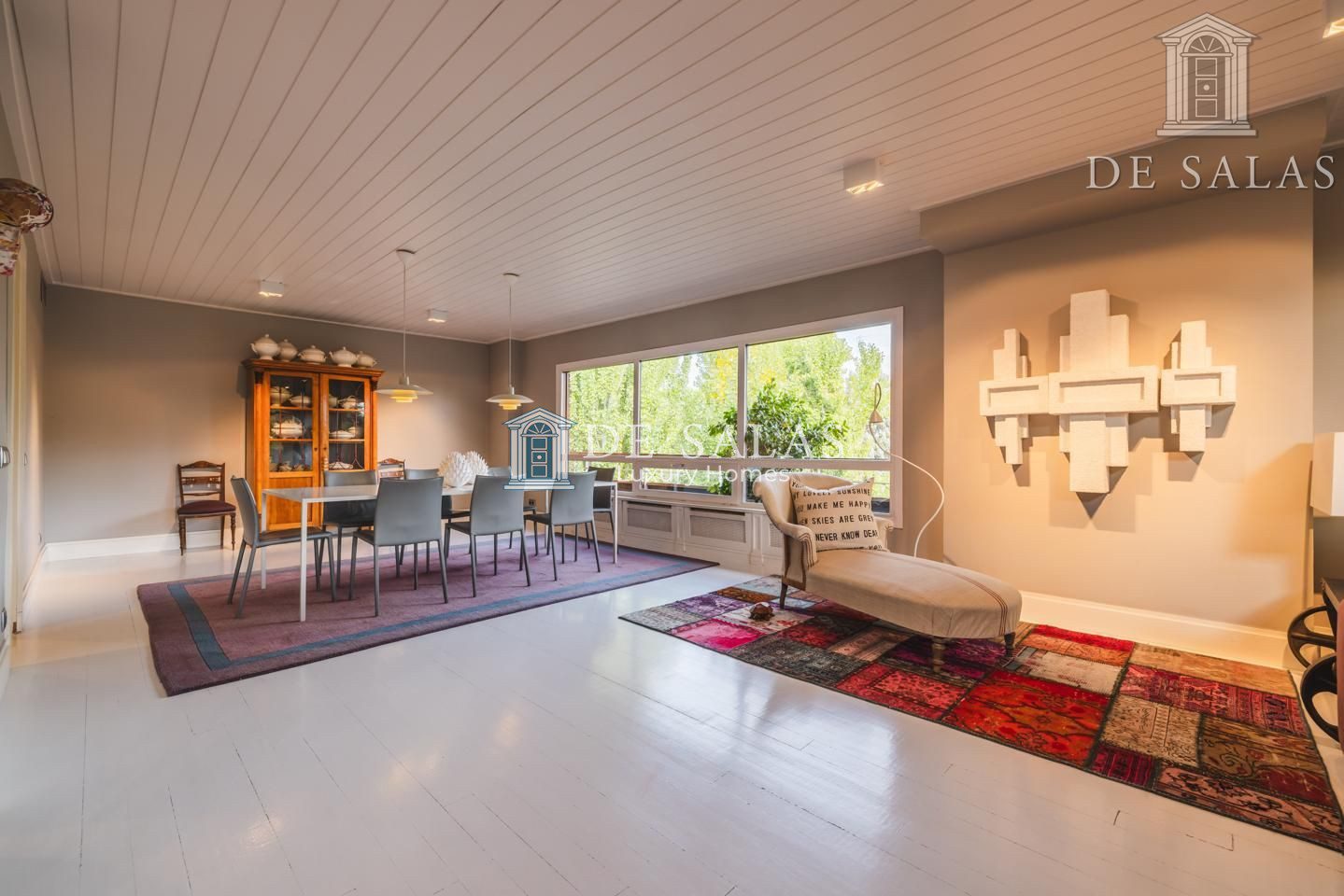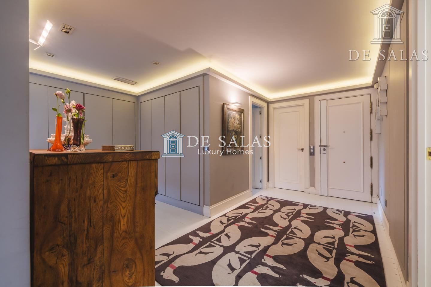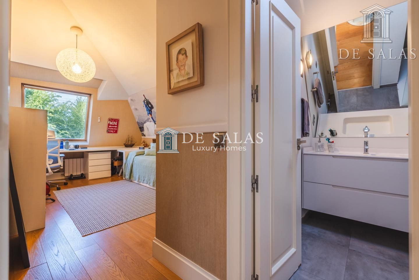 Representativo hall de entrada, que se abre a un amplio salón dividido en dos zonas, comunicadas con un comedor independiente. Amplia cocina de diseño actual con office, dispone de zona de servicio (dormitorio de servicio con baño completo). Existe una habitación de juegos-estar, un despacho señorial, un aseo de cortesía y una fabulosa terraza que se asoma sobre los jardines de la urbanización y vistas sobre La Moraleja.