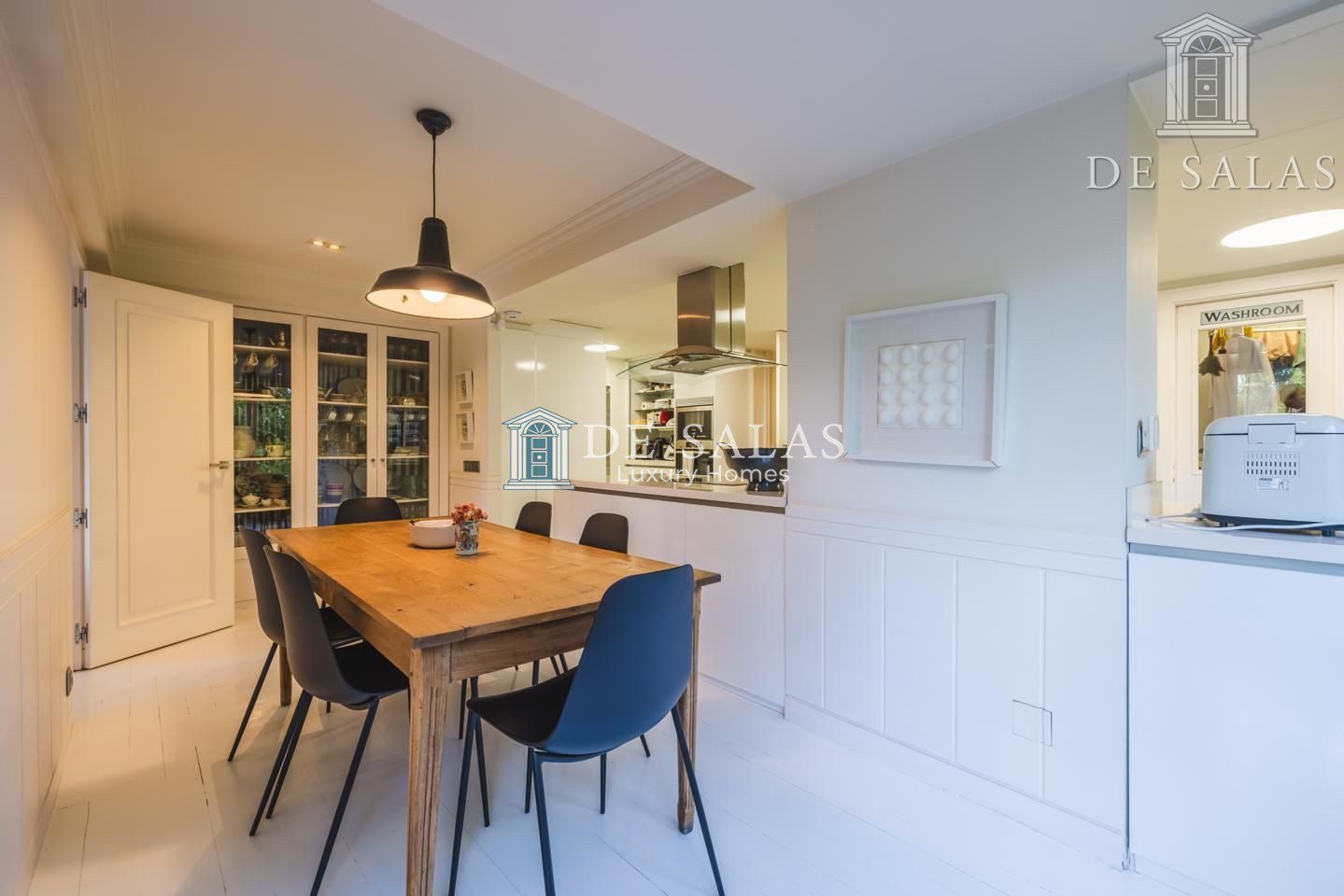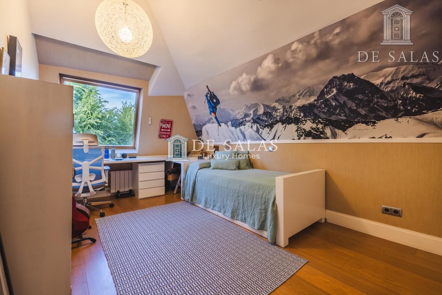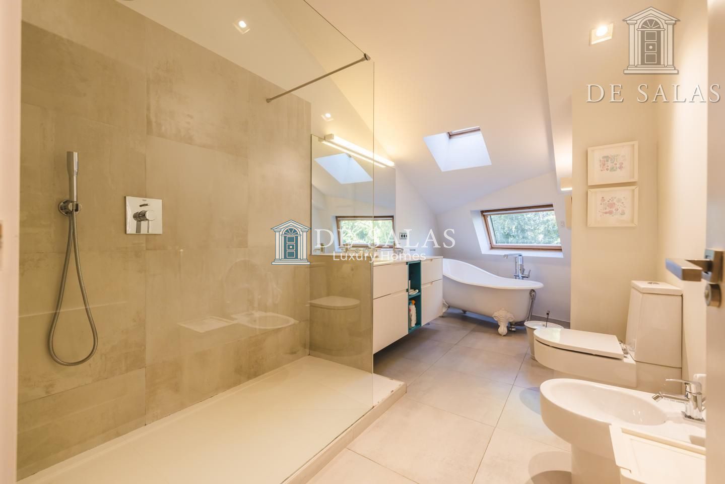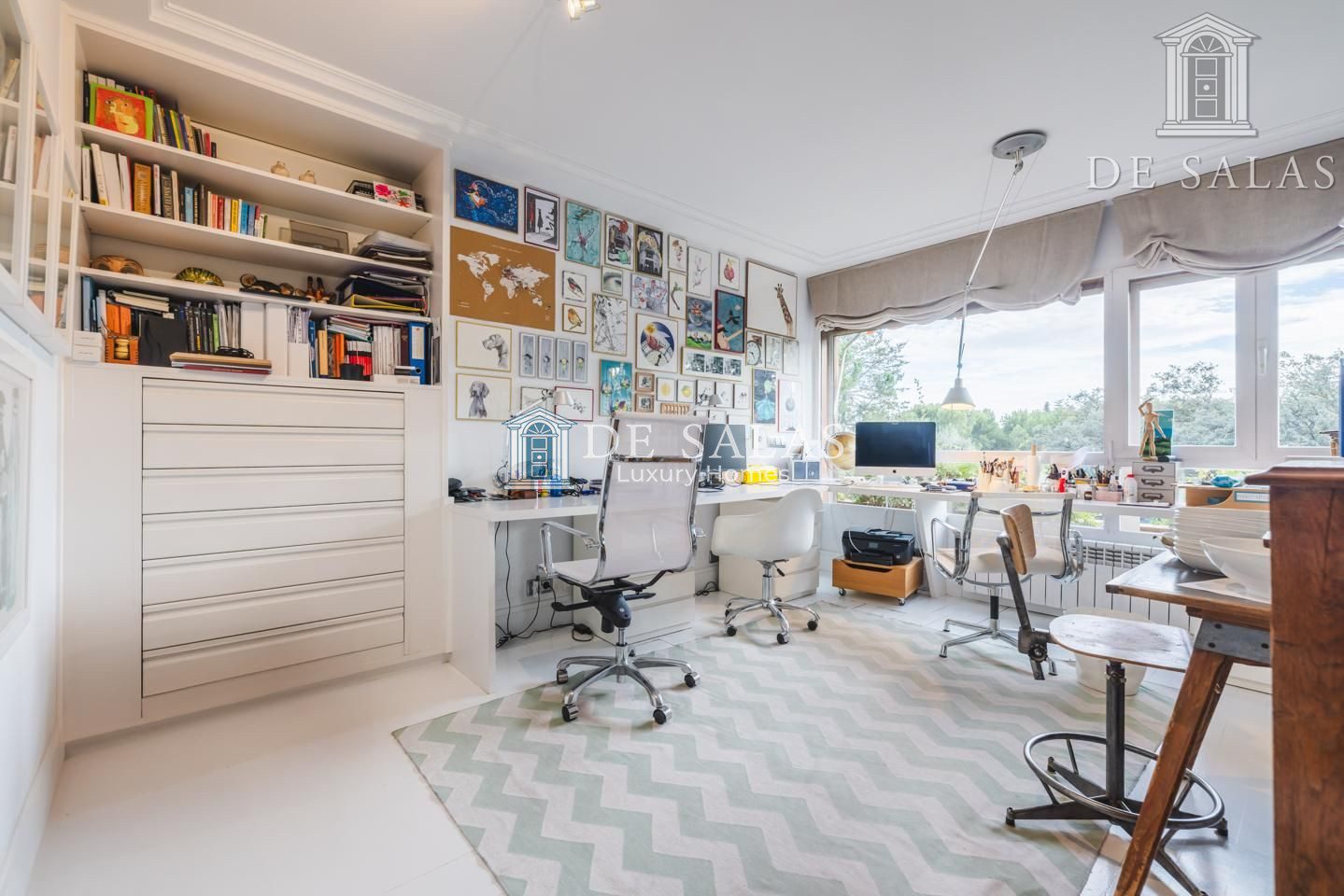 Representativo hall de entrada, que se abre a un amplio salón dividido en dos zonas, comunicadas con un comedor independiente. Amplia cocina de diseño actual con office, dispone de zona de servicio (dormitorio de servicio con baño completo). Existe una habitación de juegos-estar, un despacho señorial, un aseo de cortesía y una fabulosa terraza que se asoma sobre los jardines de la urbanización y vistas sobre La Moraleja.