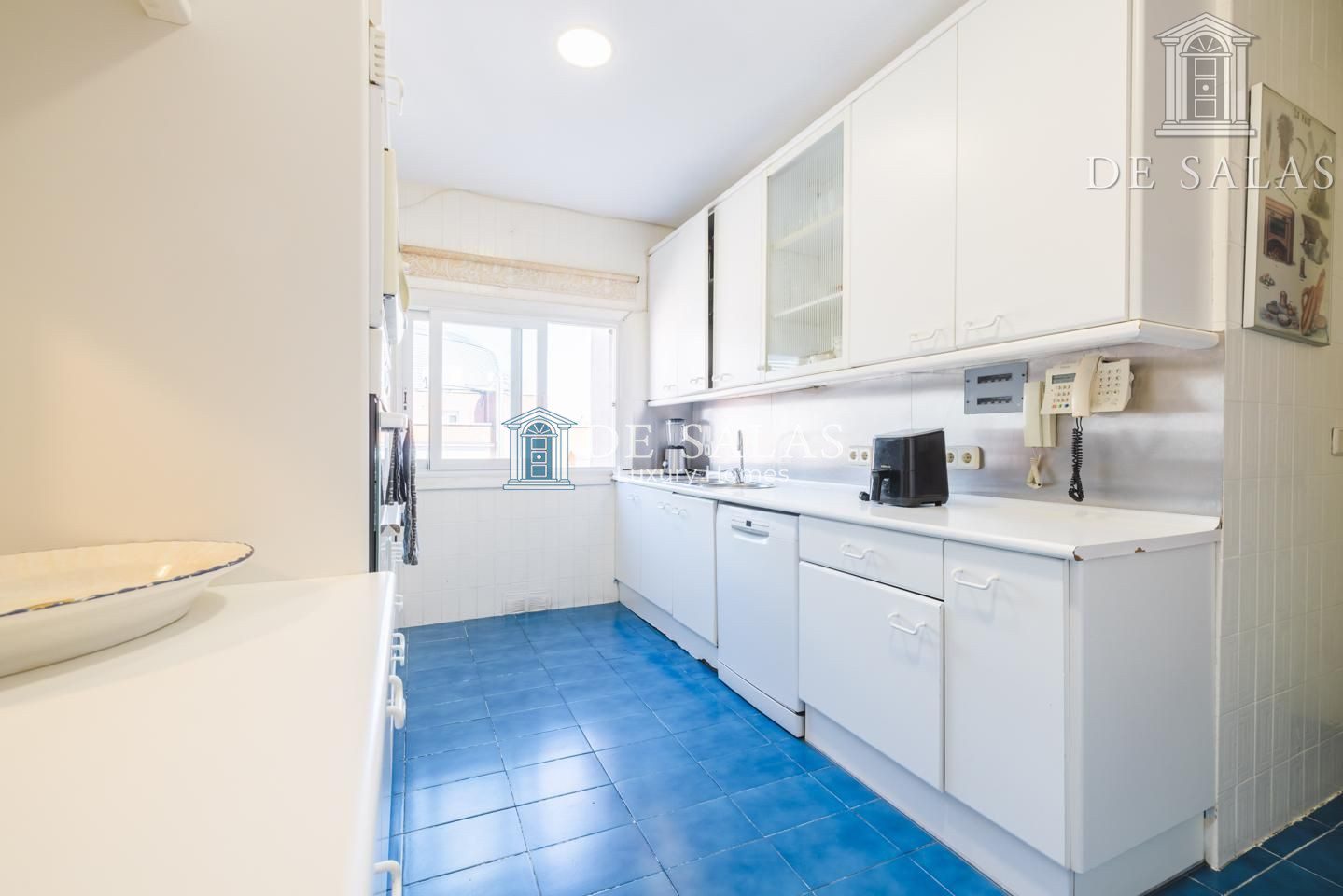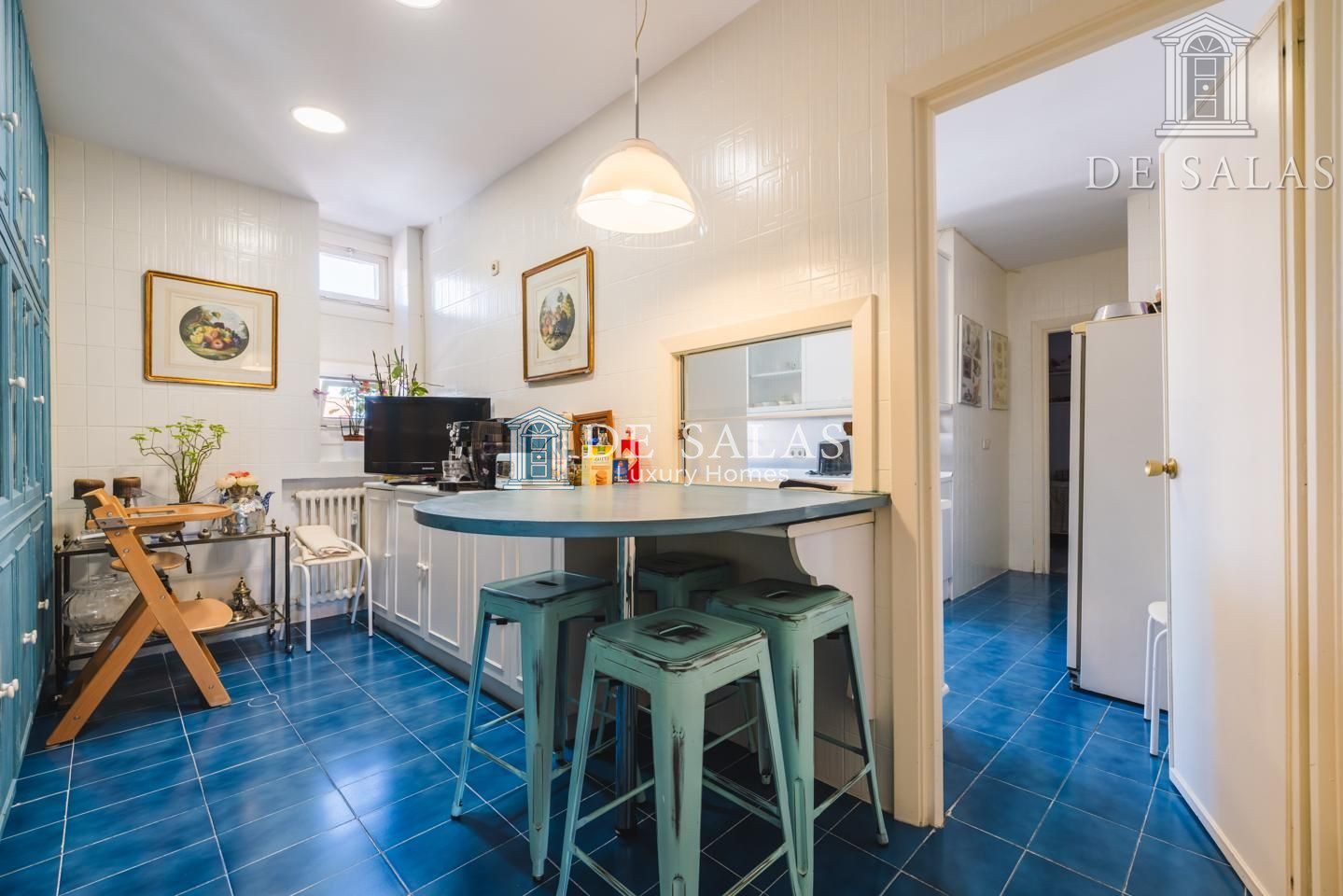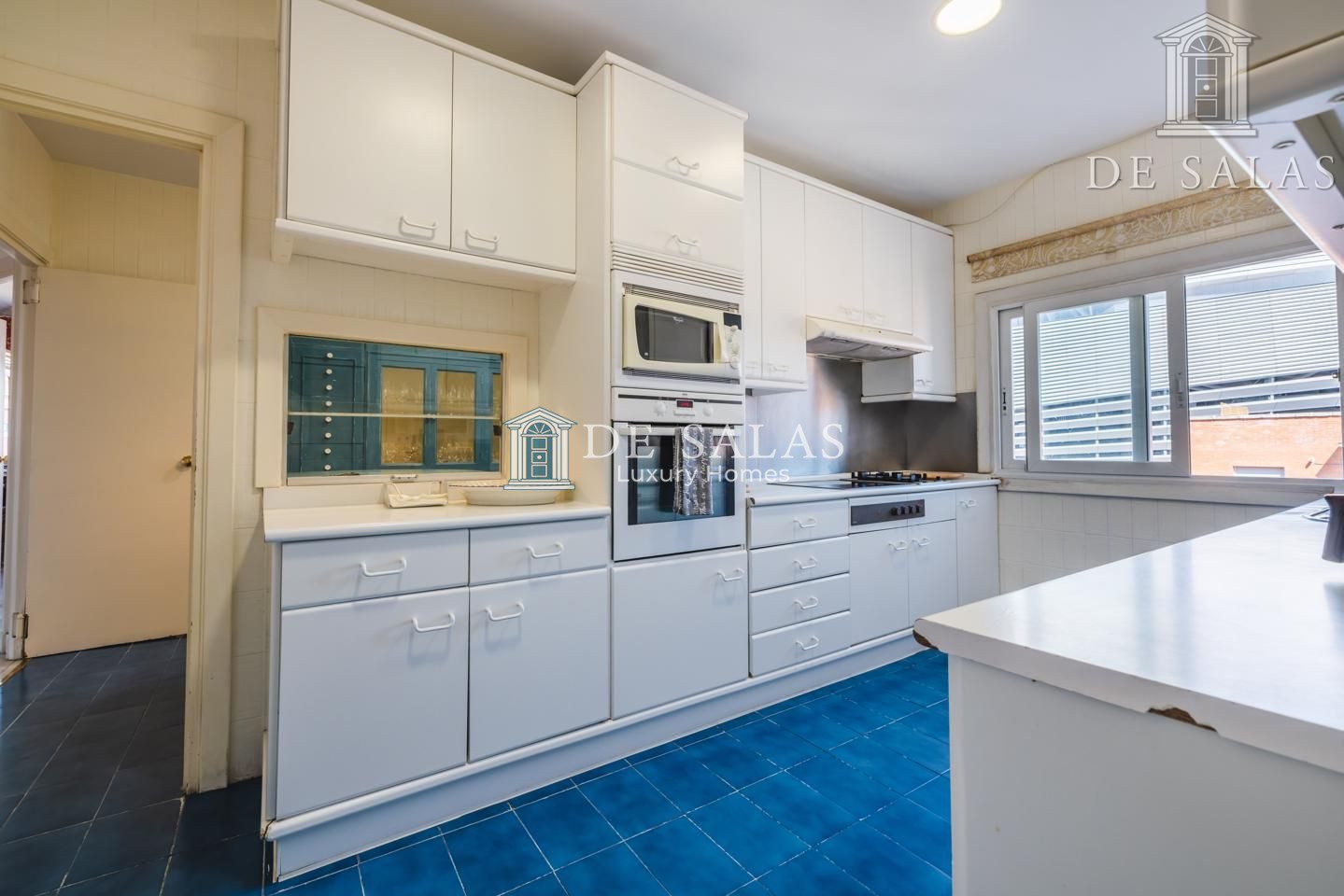 La cocina de más de 20m² completamente equipada y con gran capacidad de almacenaje, está dividida en 2 espacios, separando la zona office, de la zona de trabajo. Tiene la posibilidad de integrarlos y convertirlo en una gran espacio abierto y moderno. Dispone de área de servicio con su habitación, con cuarto de baño completo en suite, terraza tendedero y su correspondiente acceso.