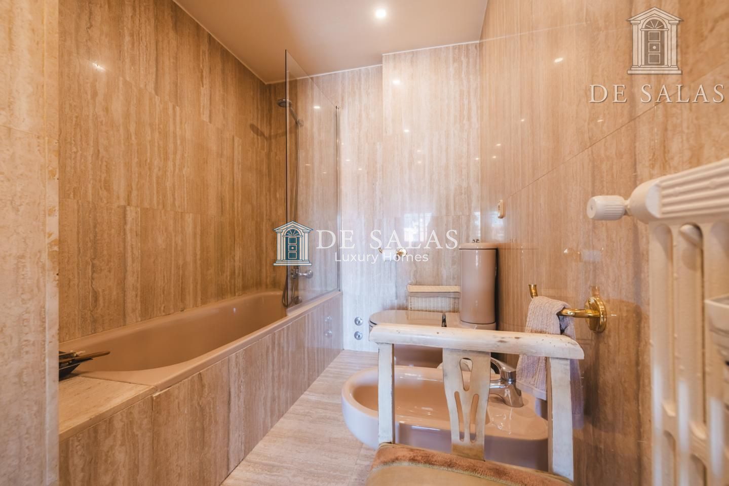Por un lado, una gran suite presidencial de casi 50m², con terraza independiente y con posibilidad de integración, dispone de armarios con gran capacidad de almacenaje. Un baño en suite de más de 10m², con cabina de ducha, bañera y wc independiente.