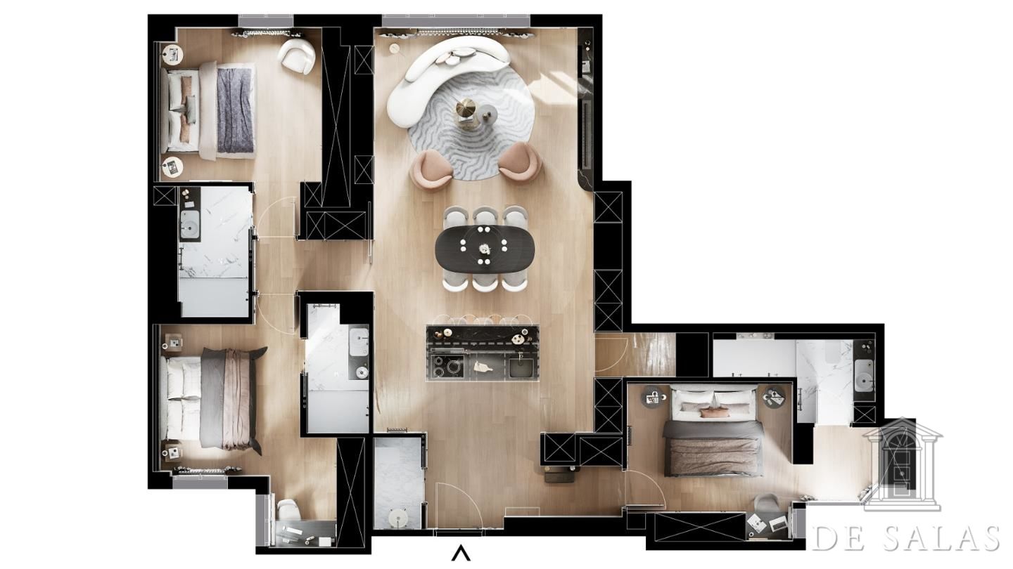 realizando la reforma integral del proyecto de este magnífico piso con 3 amplios dormitorios en suite, gran salón-cocina, aseo de cortesía y lavandería. Sin pasillo. Cuenta con trastero.