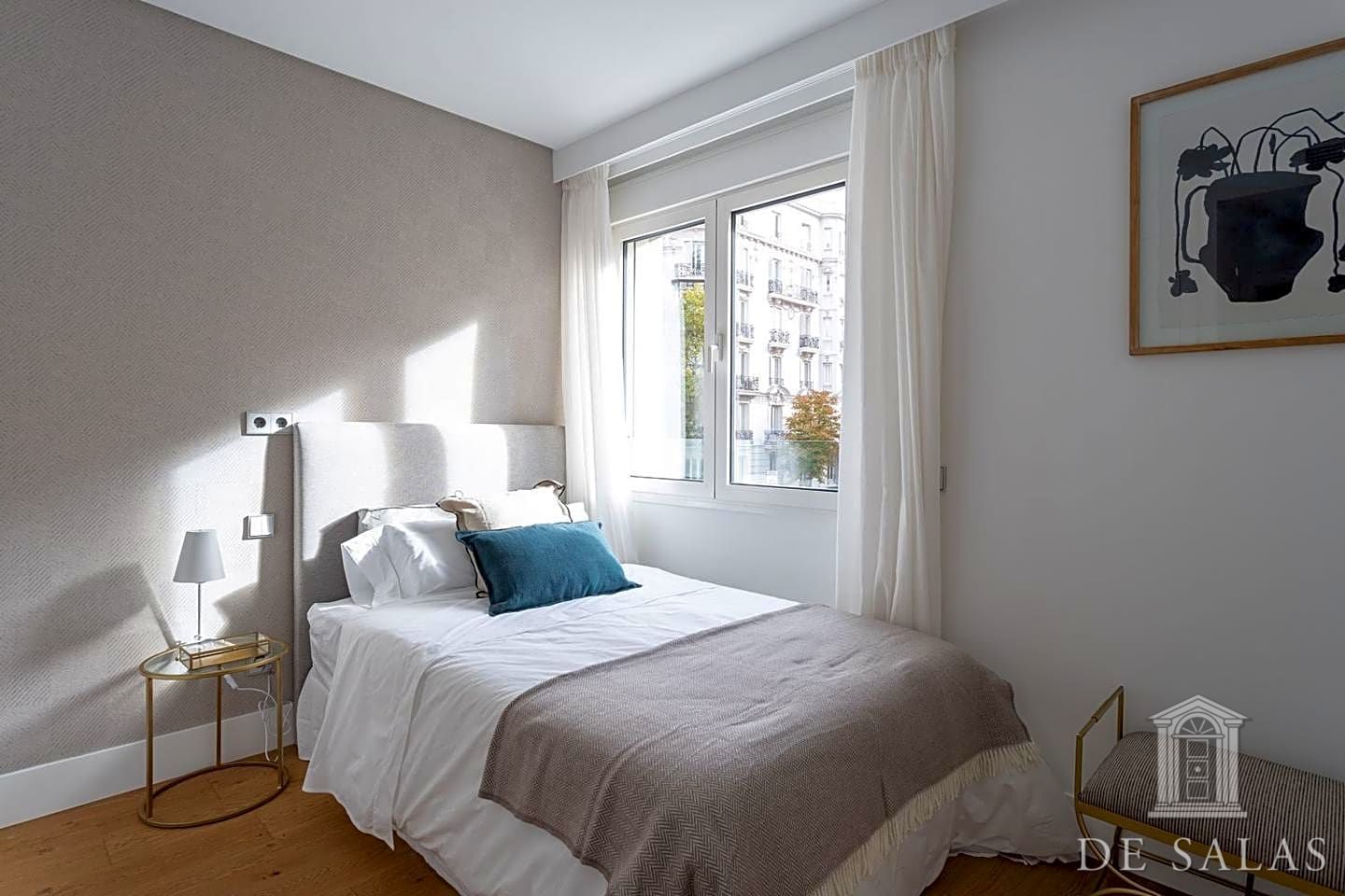 De Salas les presenta esta magnífica vivienda de lujo en Madrid. Edifício rehabilitado completamente. La propiedad se encuentra en la primera planta de un bonito edificio con servicio de portería, acceso universal y con muy buenas zonas comunes. Dispone de gimnasio, zona de bar, sala con Smart TV, sauna y un patio exterior comunitario, zonas verdes.