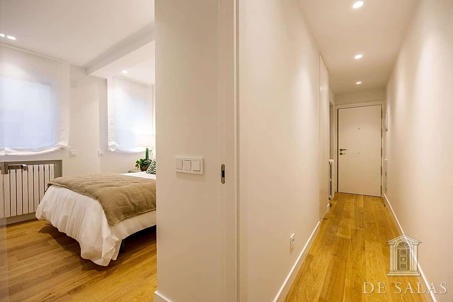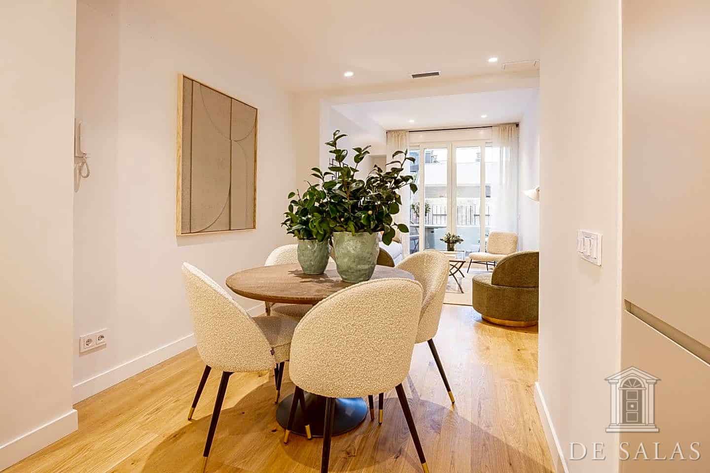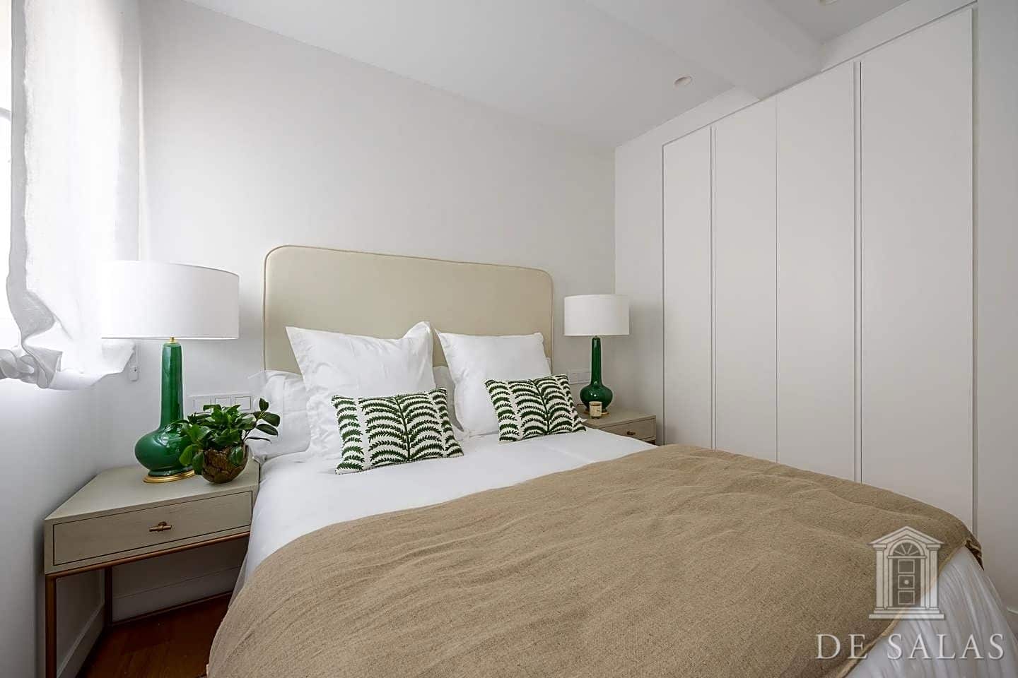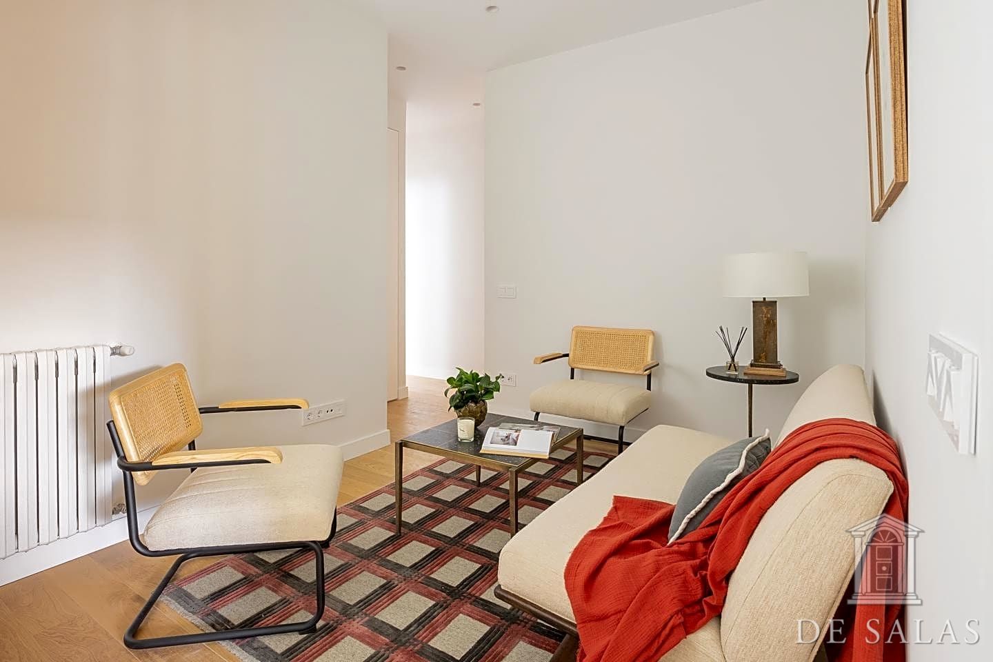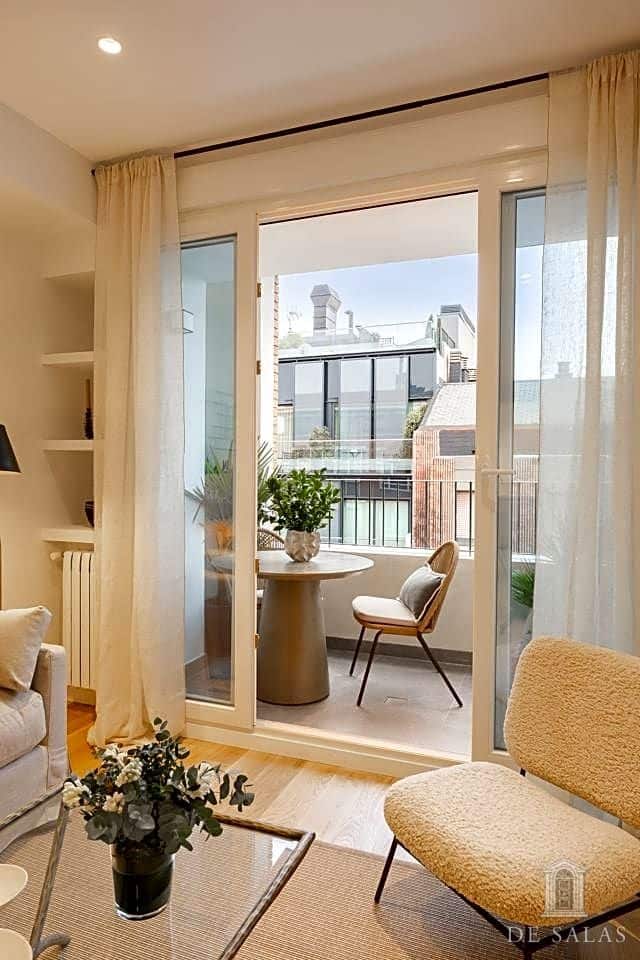 De Salas presenta está magnífica propiedad de lujo a estrenar en el barrio de Salamanca, en la zona más demanda de Recoletos. La vivienda cuenta con 105 m2 construidos y está situada en una 7º planta exterior con agradable y soleada terraza. La reforma se ha realizado con excelentes materiales y se vende completamente amueblada y decorada, para lo que se ha realizado un proyecto de interiorismo en el que se han aprovechado todos los espacios. Desde el hall se accede a un luminoso salón con dos ambientes con cocina integrada y equipada con todos los electrodomésticos, además cuenta con área de lavandería independiente. La zona de descanso es muy acogedora y se distribuye en dos dormitorios dobles con armarios empotrados, el principal con baño en suite, además de otro baño completo que da servicio al segundo dormitorio y un aseo de cortesía en la zona social.. La finca es moderna, con amplio portal y portero físico.