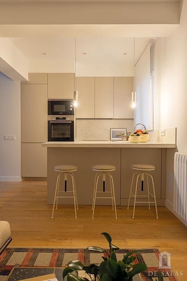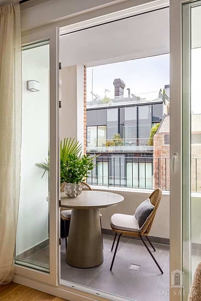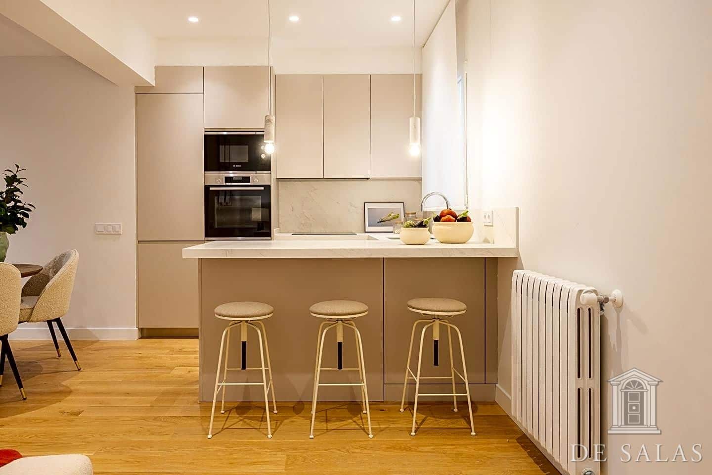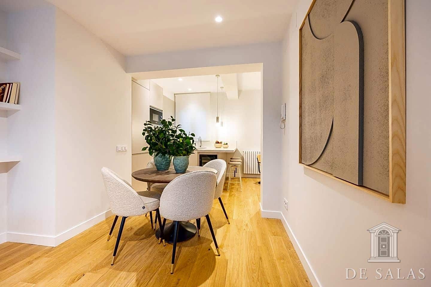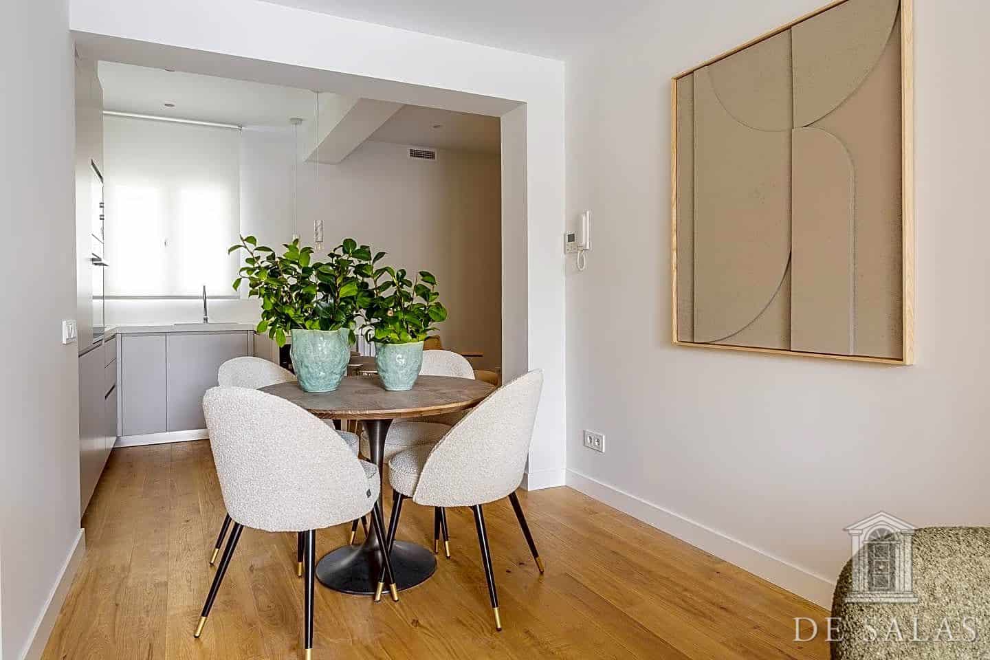De Salas presenta está magnífica propiedad de lujo a estrenar en el barrio de Salamanca, en la zona más demanda de Recoletos. La vivienda cuenta con 105 m2 construidos y está situada en una 7º planta exterior con agradable y soleada terraza. La reforma se ha realizado con excelentes materiales y se vende completamente amueblada y decorada, para lo que se ha realizado un proyecto de interiorismo en el que se han aprovechado todos los espacios. Desde el hall se accede a un luminoso salón con dos ambientes con cocina integrada y equipada con todos los electrodomésticos, además cuenta con área de lavandería independiente. La zona de descanso es muy acogedora y se distribuye en dos dormitorios dobles con armarios empotrados, el principal con baño en suite, además de otro baño completo que da servicio al segundo dormitorio y un aseo de cortesía en la zona social.. La finca es moderna, con amplio portal y portero físico.