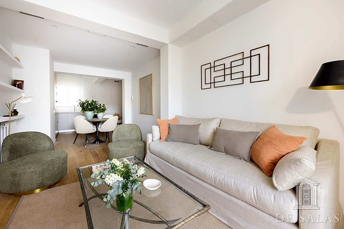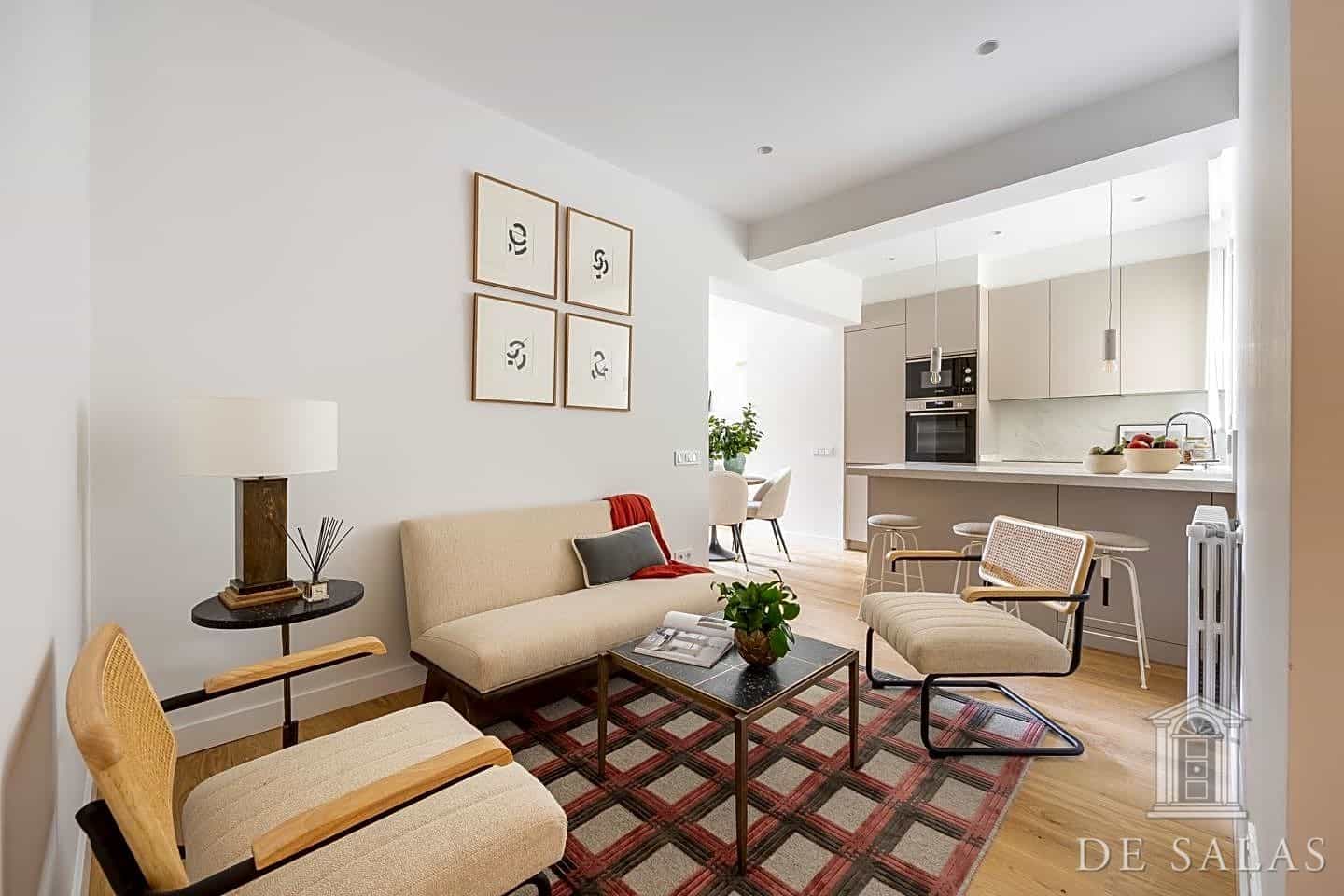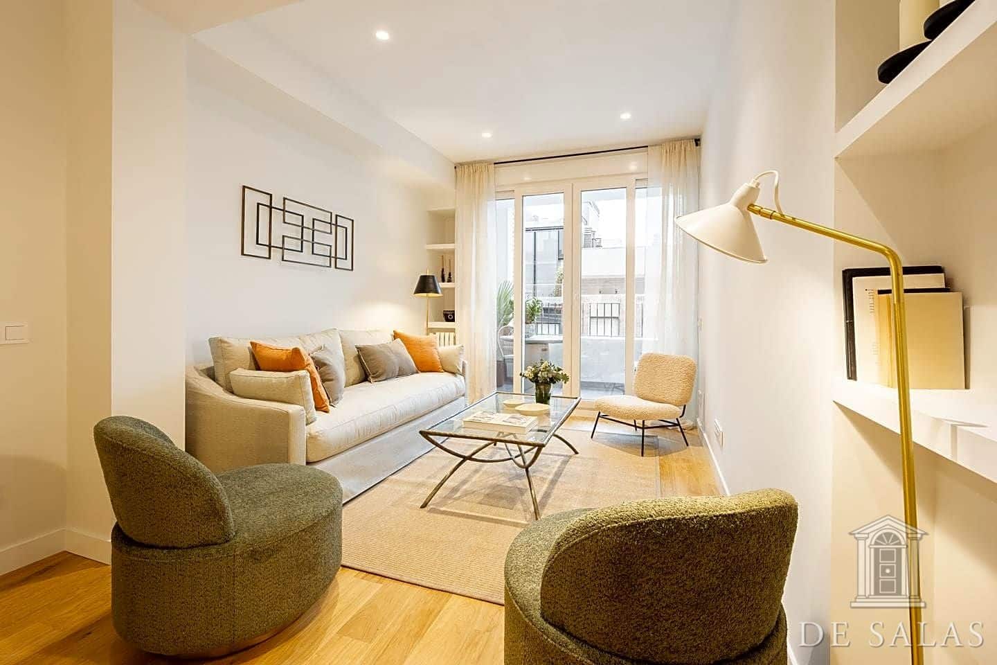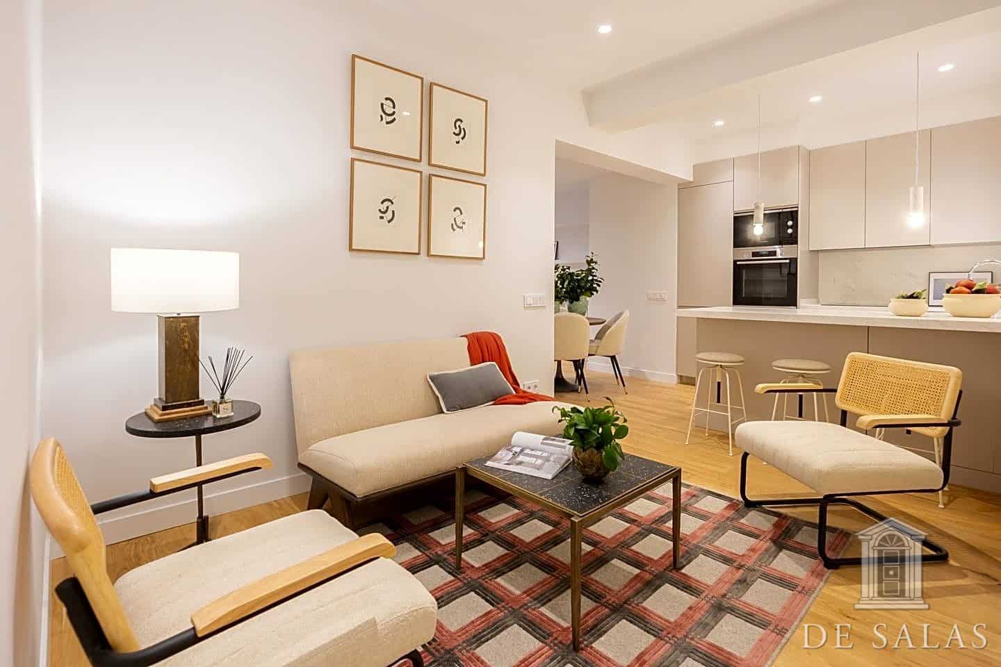 De Salas presenta está magnífica propiedad de lujo a estrenar en el barrio de Salamanca, en la zona más demanda de Recoletos. La vivienda cuenta con 105 m2 construidos y está situada en una 7º planta exterior con agradable y soleada terraza. La reforma se ha realizado con excelentes materiales y se vende completamente amueblada y decorada, para lo que se ha realizado un proyecto de interiorismo en el que se han aprovechado todos los espacios. Desde el hall se accede a un luminoso salón con dos ambientes con cocina integrada y equipada con todos los electrodomésticos, además cuenta con área de lavandería independiente. La zona de descanso es muy acogedora y se distribuye en dos dormitorios dobles con armarios empotrados, el principal con baño en suite, además de otro baño completo que da servicio al segundo dormitorio y un aseo de cortesía en la zona social.. La finca es moderna, con amplio portal y portero físico.