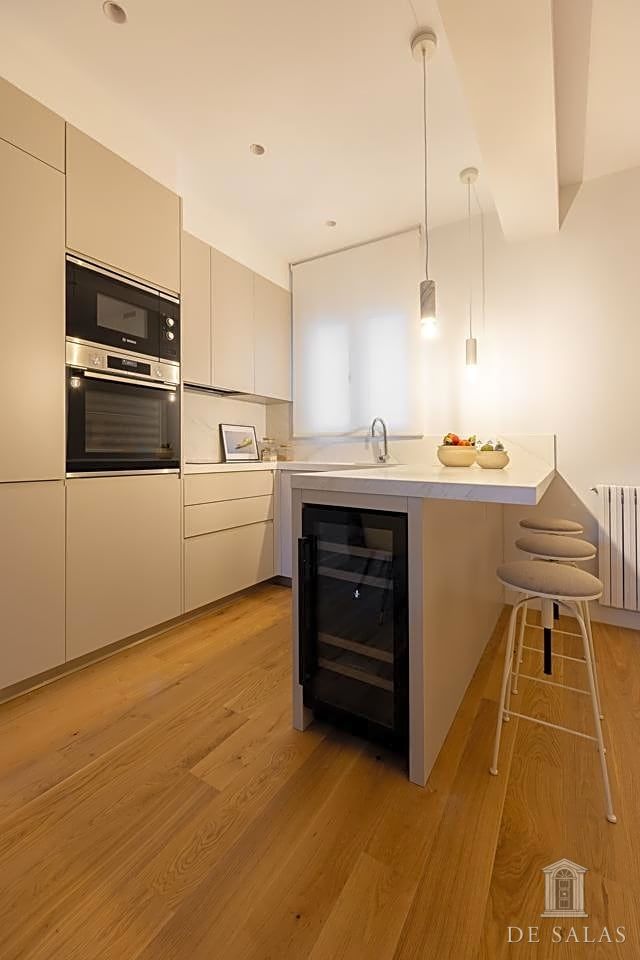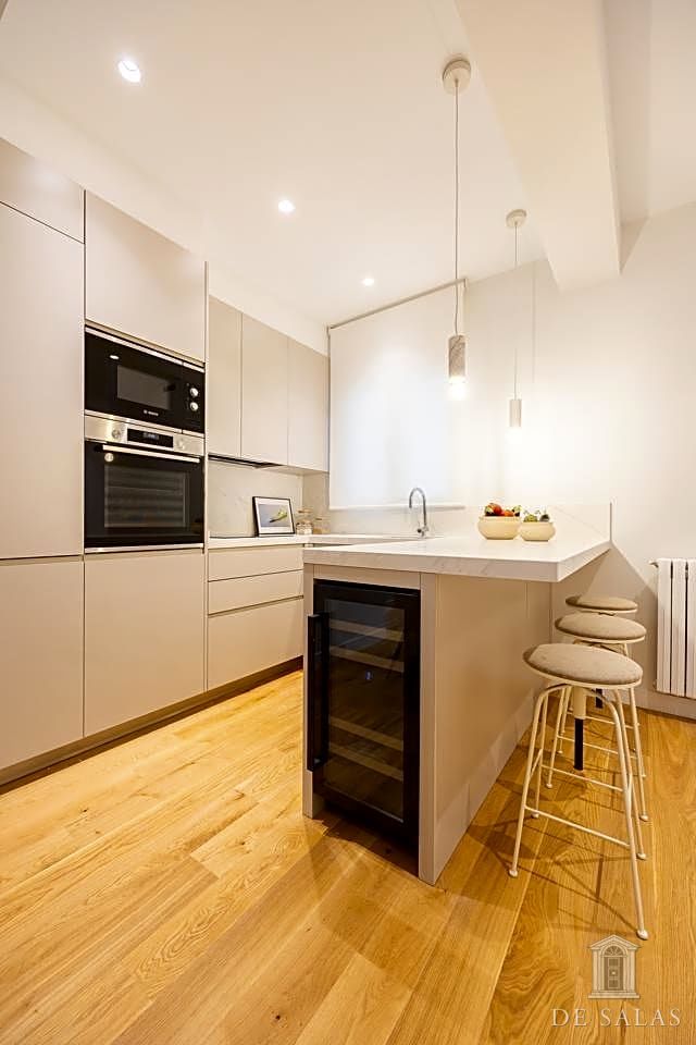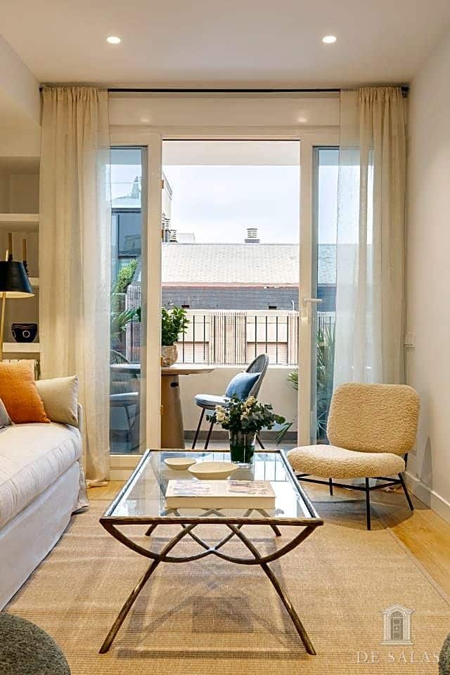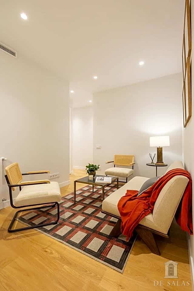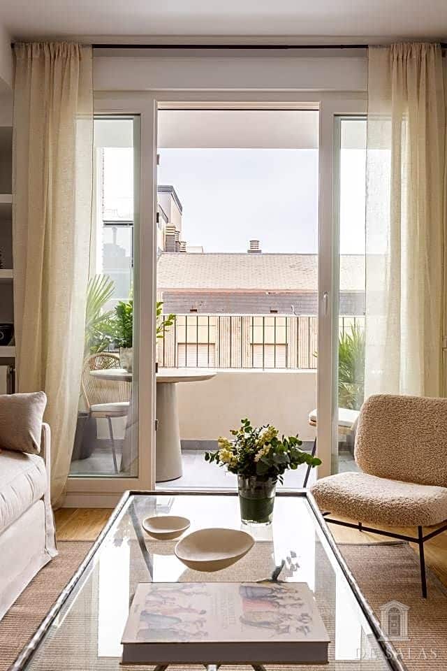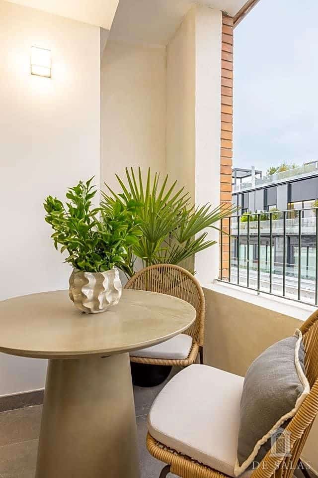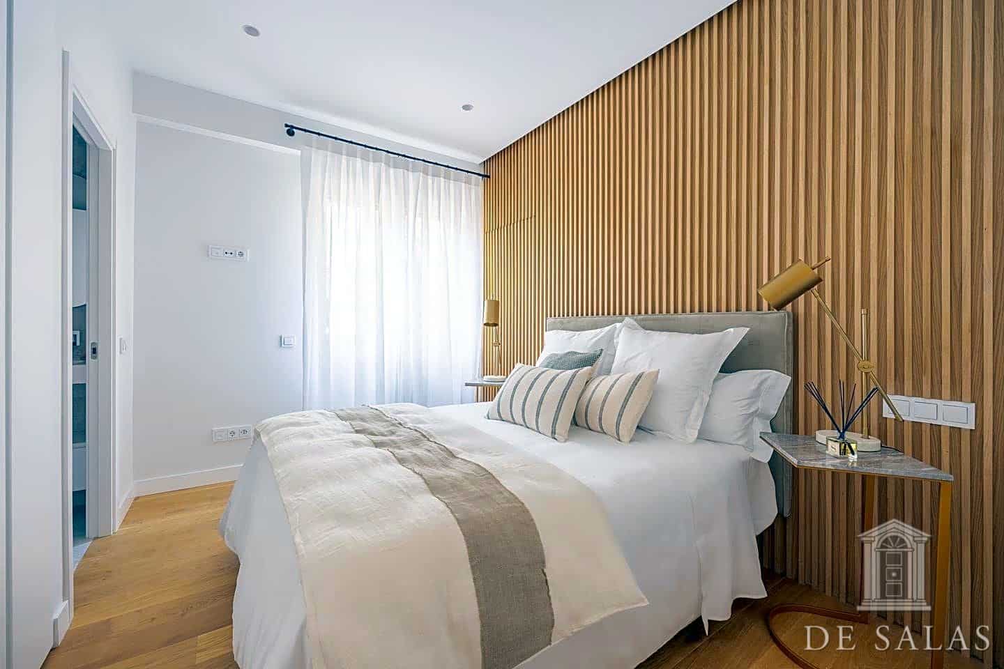 De Salas presenta está magnífica propiedad de lujo a estrenar en el barrio de Salamanca, en la zona más demanda de Recoletos. La vivienda cuenta con 105 m2 construidos y está situada en una 7º planta exterior con agradable y soleada terraza. La reforma se ha realizado con excelentes materiales y se vende completamente amueblada y decorada, para lo que se ha realizado un proyecto de interiorismo en el que se han aprovechado todos los espacios. Desde el hall se accede a un luminoso salón con dos ambientes con cocina integrada y equipada con todos los electrodomésticos, además cuenta con área de lavandería independiente. La zona de descanso es muy acogedora y se distribuye en dos dormitorios dobles con armarios empotrados, el principal con baño en suite, además de otro baño completo que da servicio al segundo dormitorio y un aseo de cortesía en la zona social.. La finca es moderna, con amplio portal y portero físico.