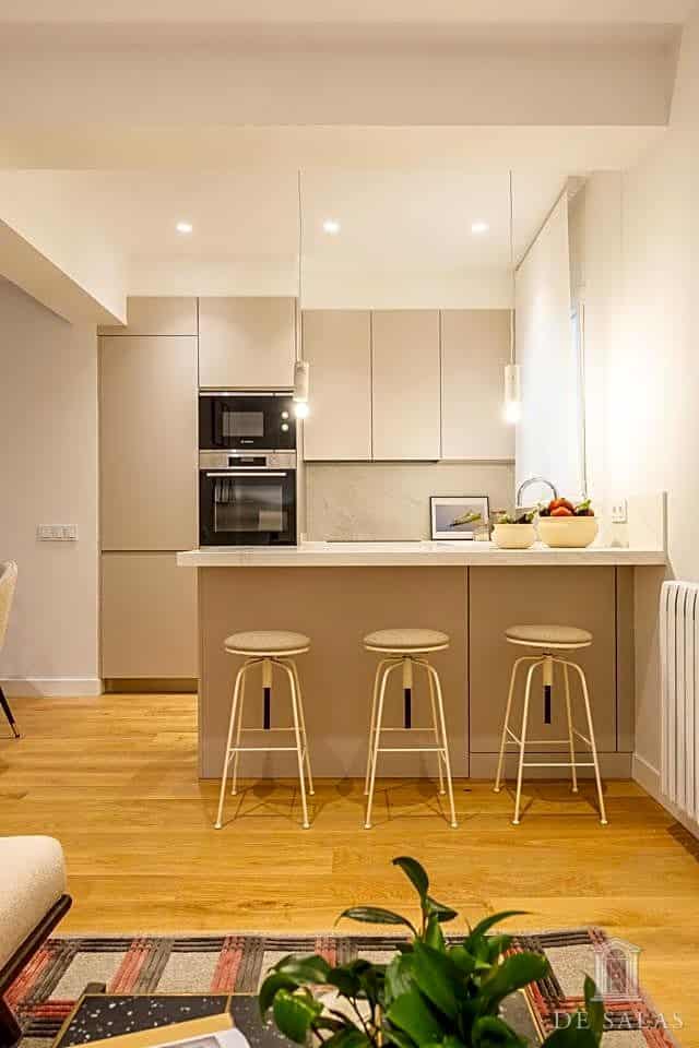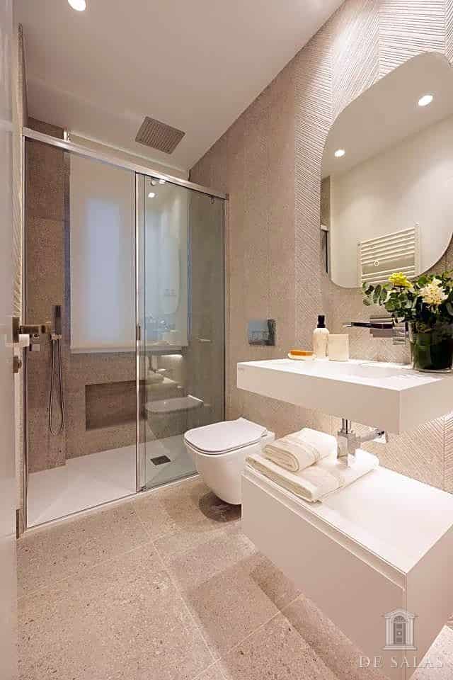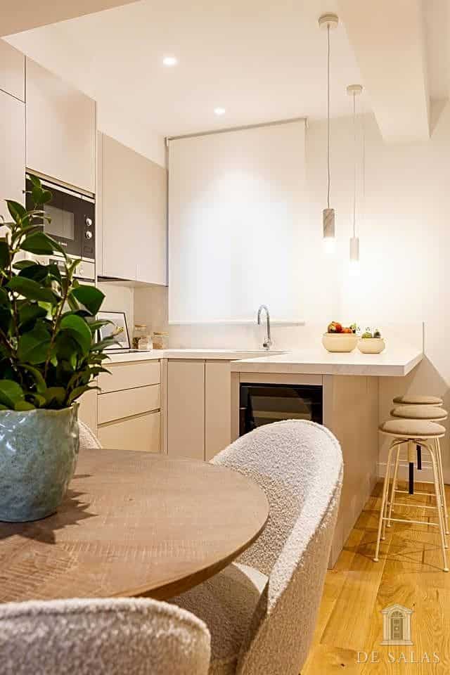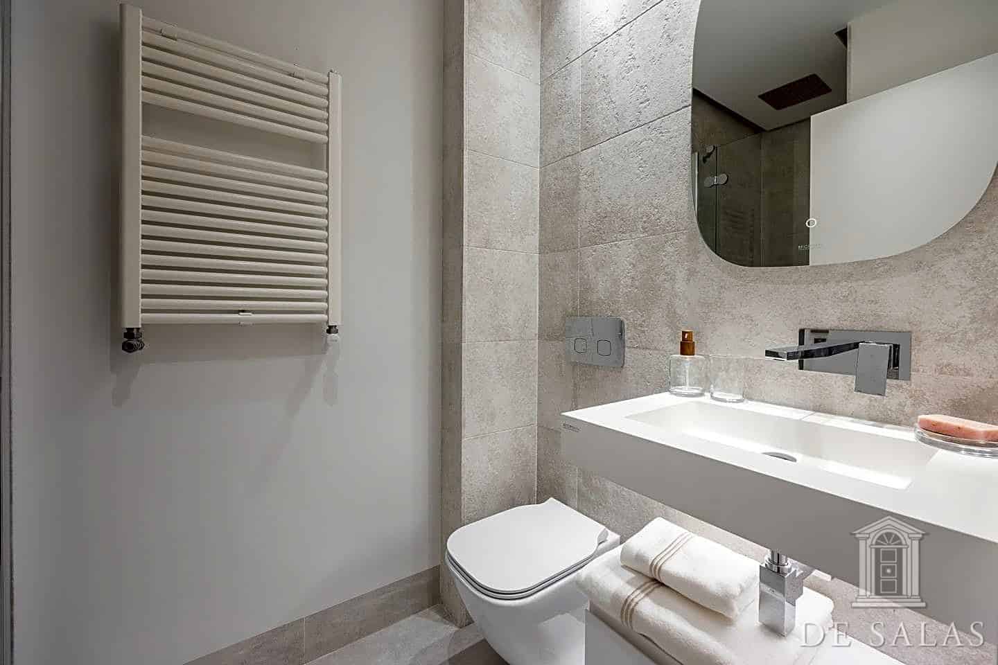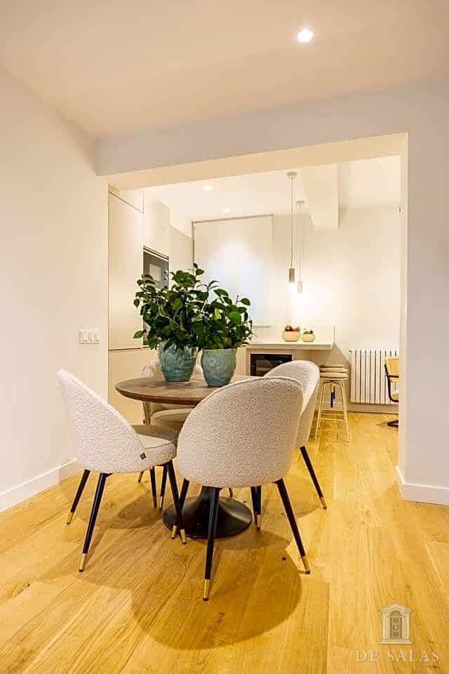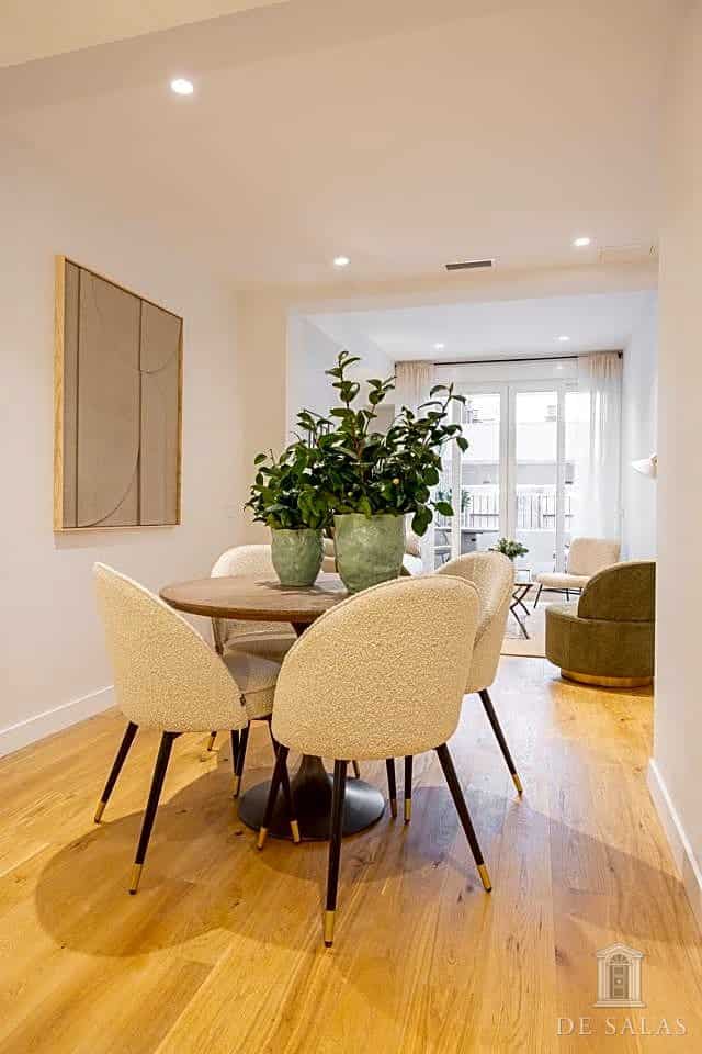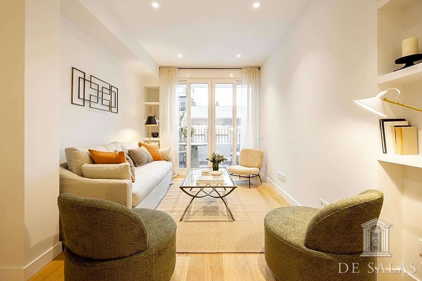 De Salas presenta está magnífica propiedad de lujo a estrenar en el barrio de Salamanca, en la zona más demanda de Recoletos. La vivienda cuenta con 105 m2 construidos y está situada en una 7º planta exterior con agradable y soleada terraza. La reforma se ha realizado con excelentes materiales y se vende completamente amueblada y decorada, para lo que se ha realizado un proyecto de interiorismo en el que se han aprovechado todos los espacios. Desde el hall se accede a un luminoso salón con dos ambientes con cocina integrada y equipada con todos los electrodomésticos, además cuenta con área de lavandería independiente. La zona de descanso es muy acogedora y se distribuye en dos dormitorios dobles con armarios empotrados, el principal con baño en suite, además de otro baño completo que da servicio al segundo dormitorio y un aseo de cortesía en la zona social.. La finca es moderna, con amplio portal y portero físico.