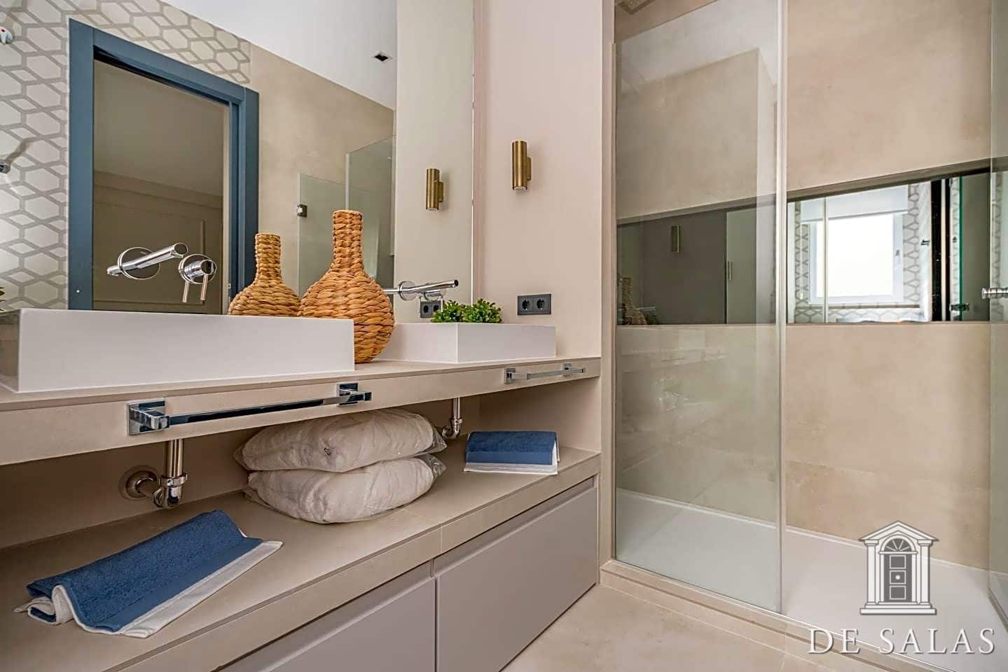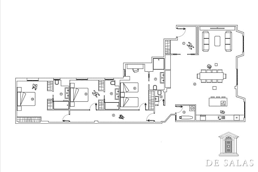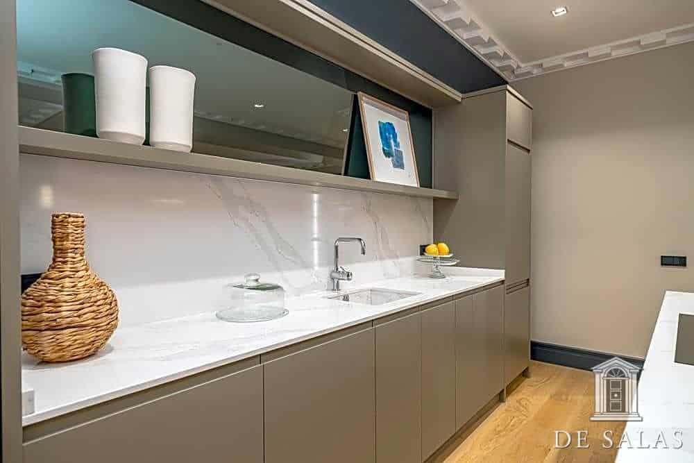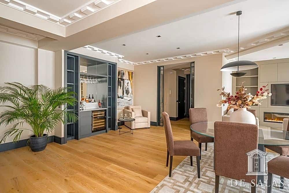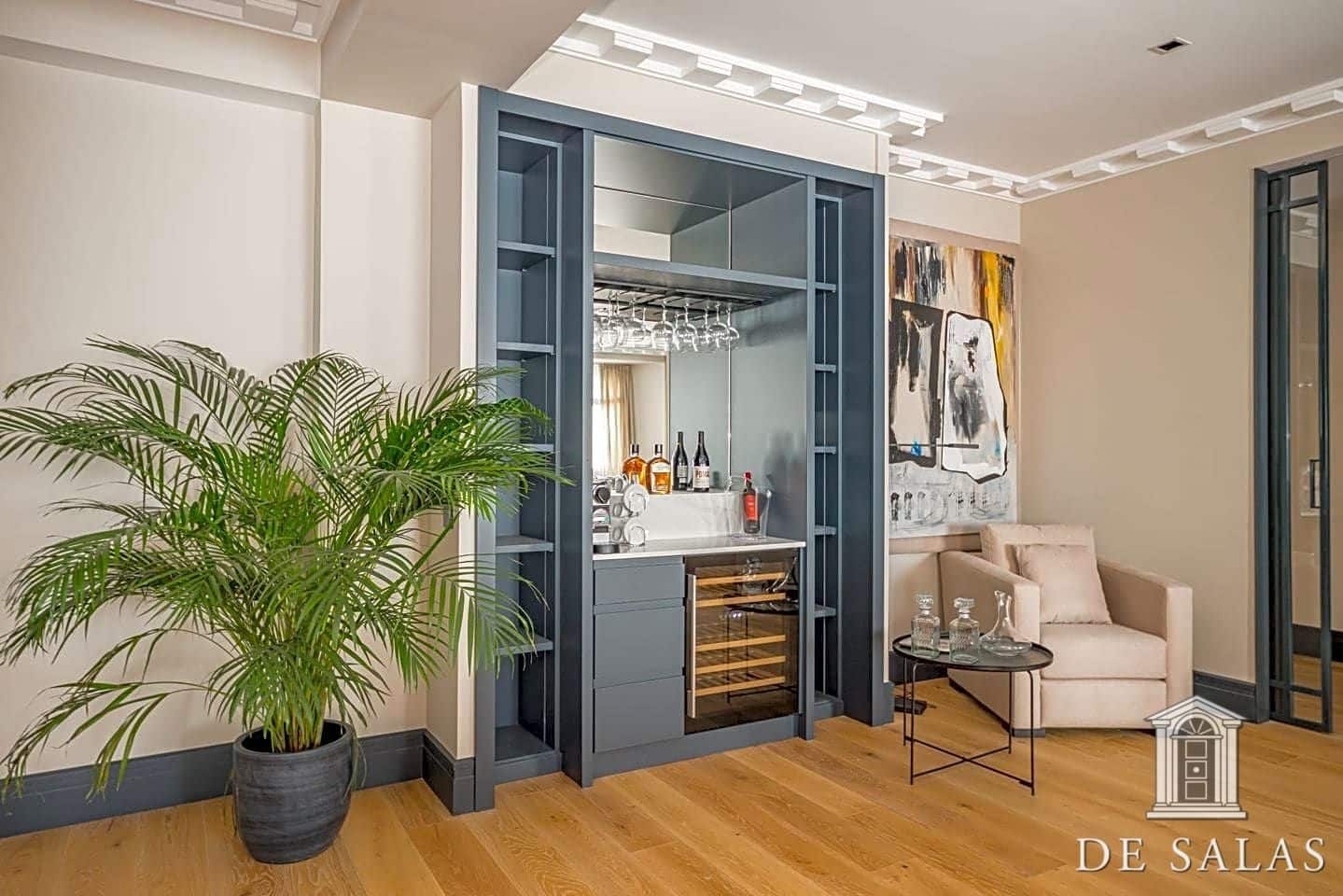 De Salas presenta esta excelente propiedad de lujo en Recoletos, junto a la calle Serrano. La vivienda tiene 225 m2 construidos. Desde el hall se accede a un amplio salón exterior en tres ambientes con gran cocina integrada con bonita isla y lavandería independiente. La zona de descanso se distribuye en tres amplios dormitorios en suite. La vivienda se ha reformado con altas calidades, cuenta con sistema de aerotermia y se entrega completamente amueblada y decorada con un cuidado estudio de interiorismo en tonos neutros. Cuenta además con aseo de cortesía. La finca tiene portero físico.