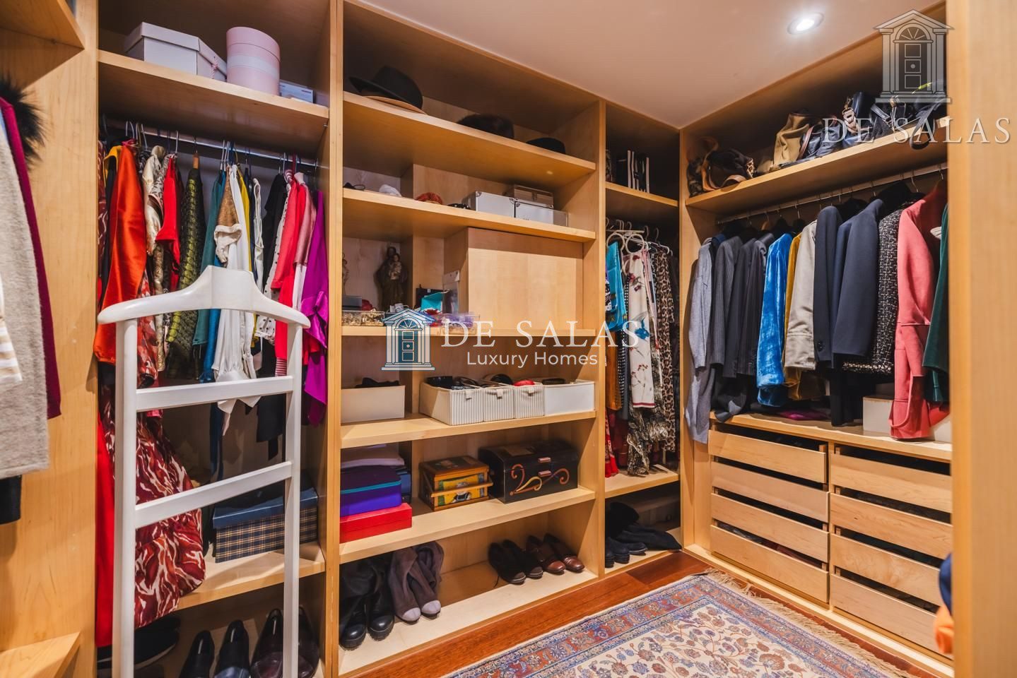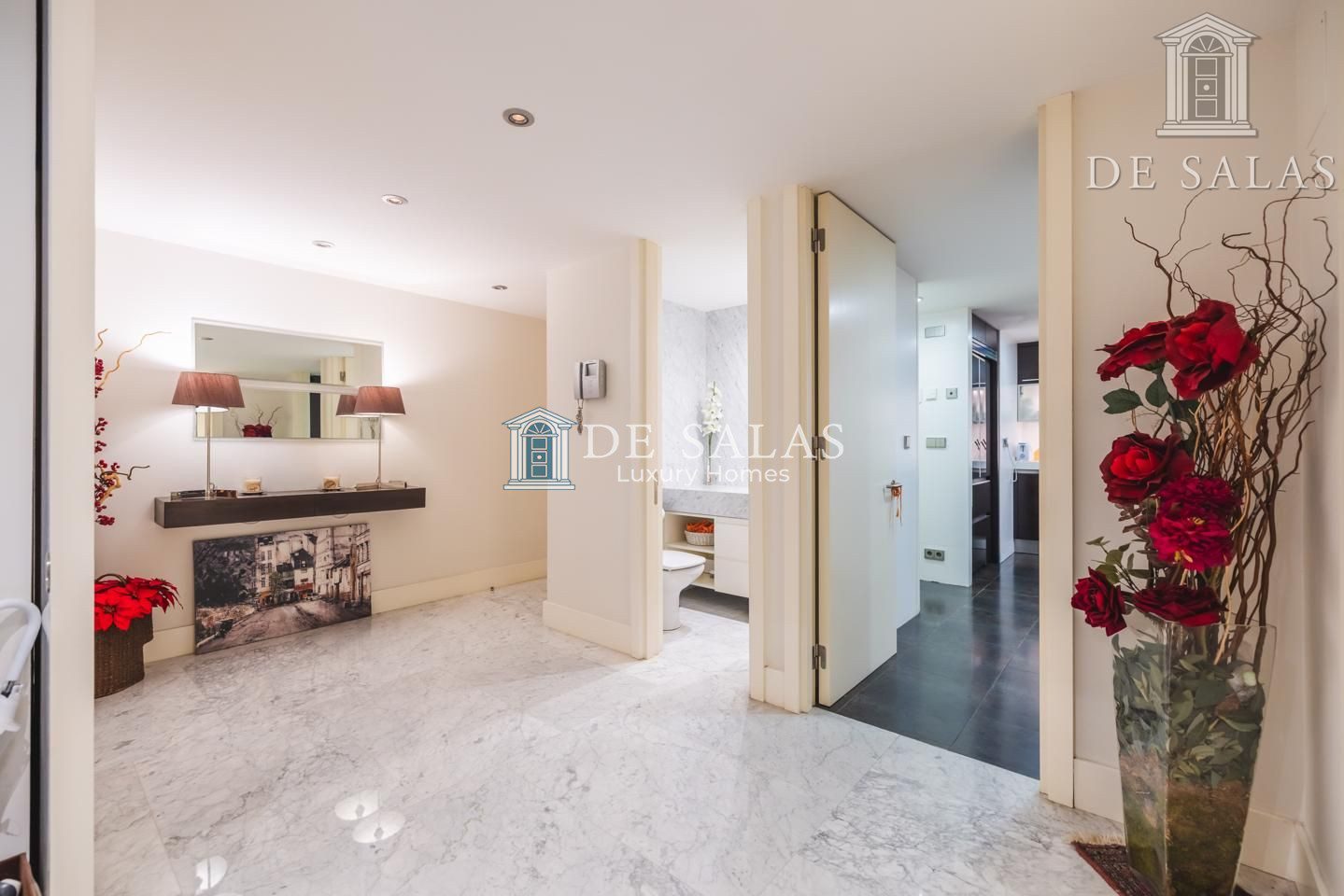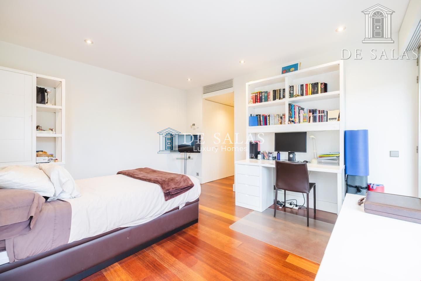La zona de noche se encuentra completamente separada por una puerta que permite el descanso en cualquier momento. El dormitorio principal, de grandes dimensiones, cuenta con numerosos armario empotrados, además de un closet-vestidor y una zona de despacho tras una preciosa librería confeccionada a medida. El cuarto de baño en suite, de elegante mármol, tiene un amplio mueble lavabo de 2 senos, bañera y ducha, además del inodoro y bidé.