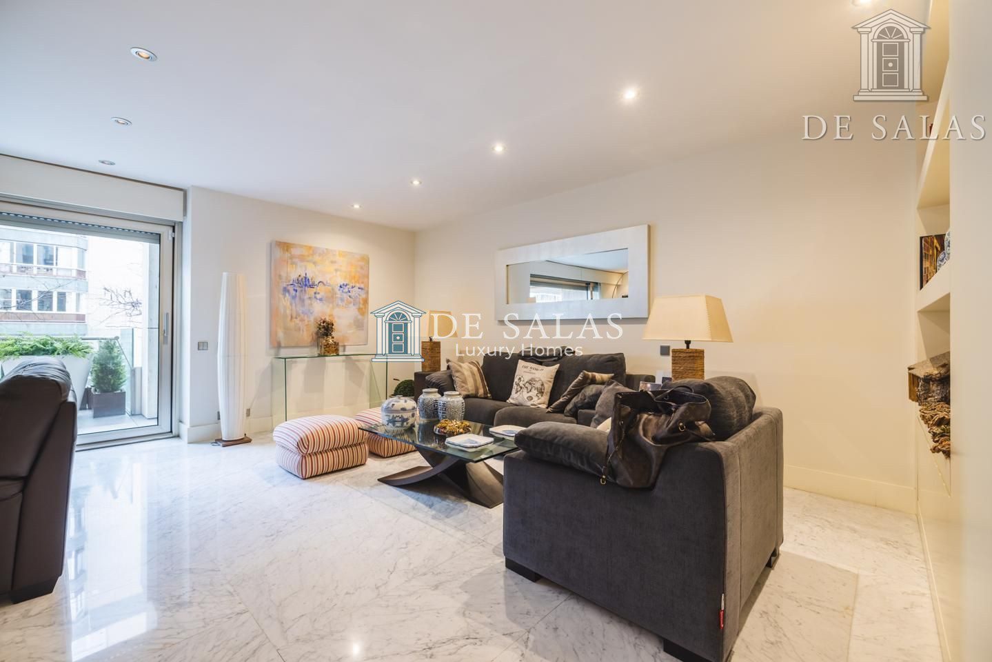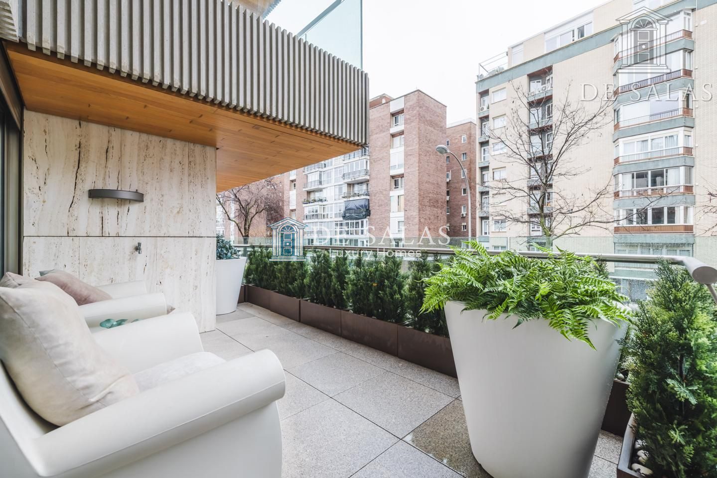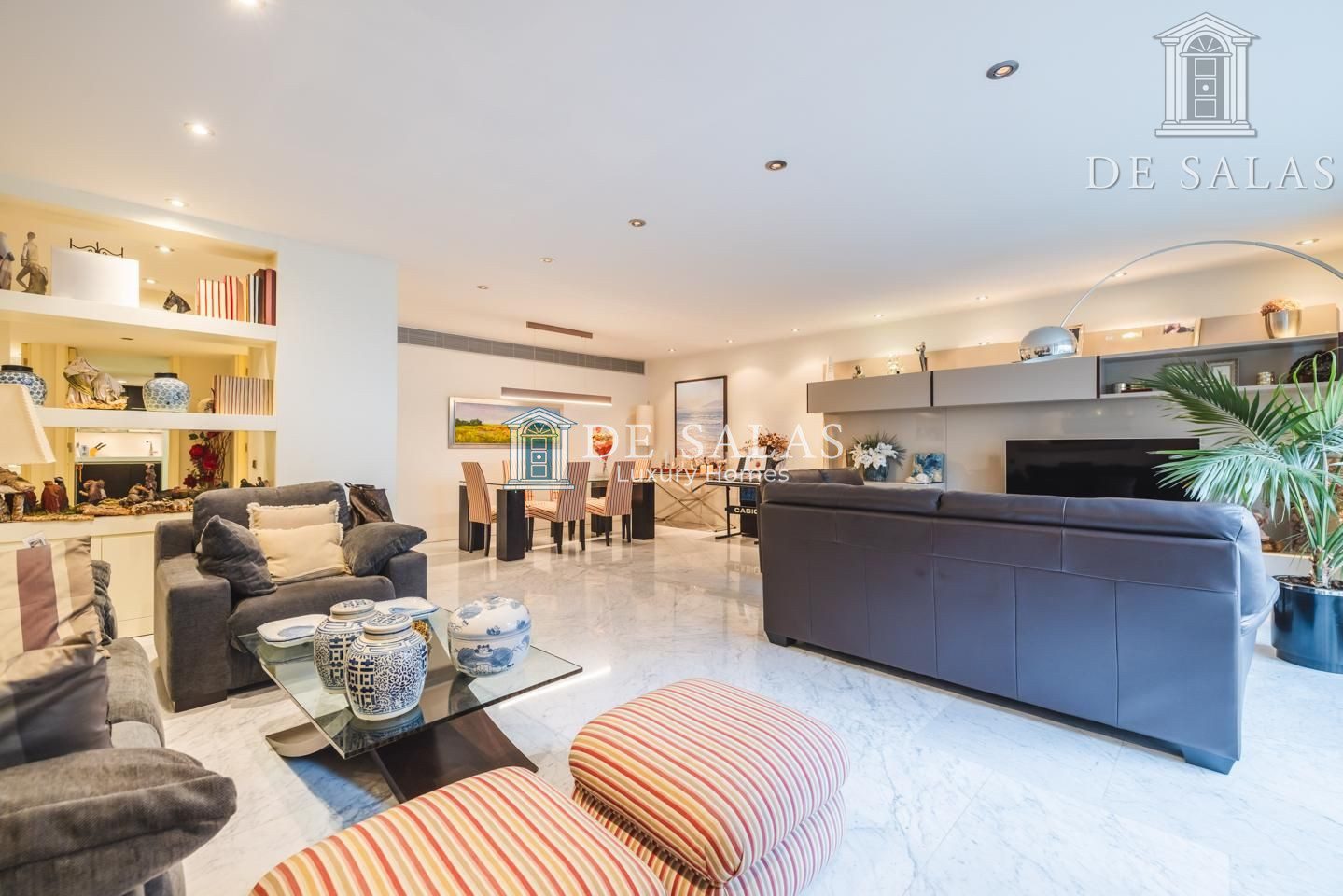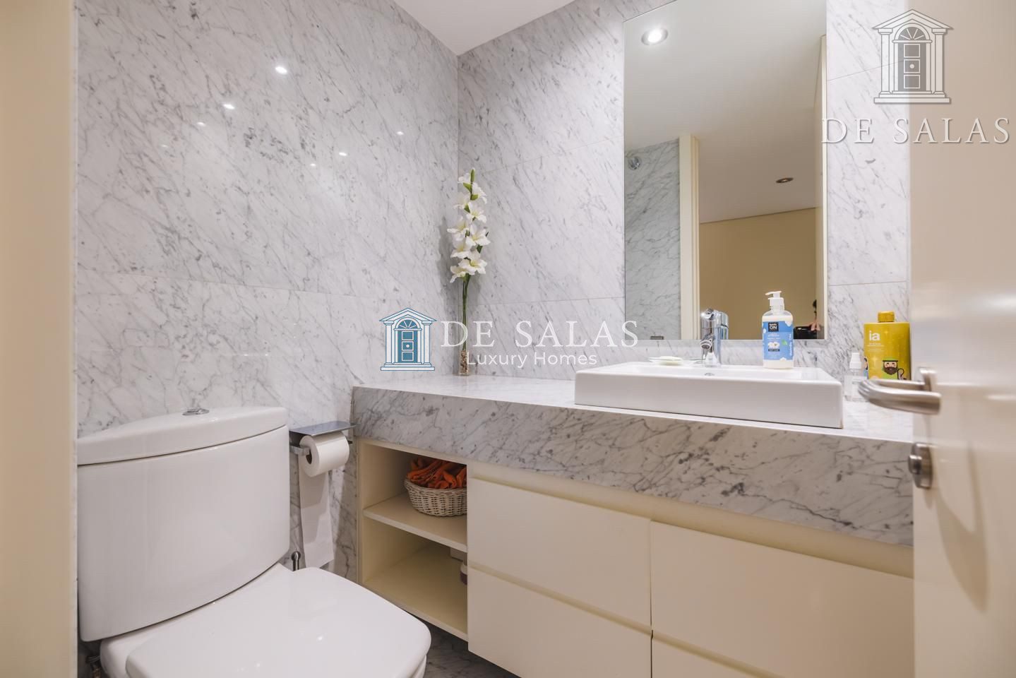 La zona de noche se encuentra completamente separada por una puerta que permite el descanso en cualquier momento. El dormitorio principal, de grandes dimensiones, cuenta con numerosos armario empotrados, además de un closet-vestidor y una zona de despacho tras una preciosa librería confeccionada a medida. El cuarto de baño en suite, de elegante mármol, tiene un amplio mueble lavabo de 2 senos, bañera y ducha, además del inodoro y bidé.